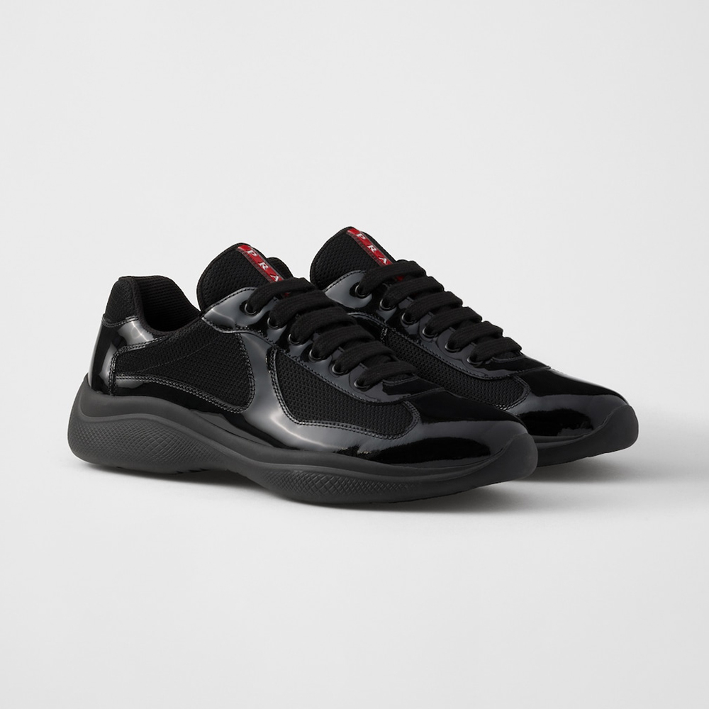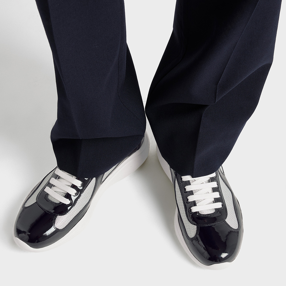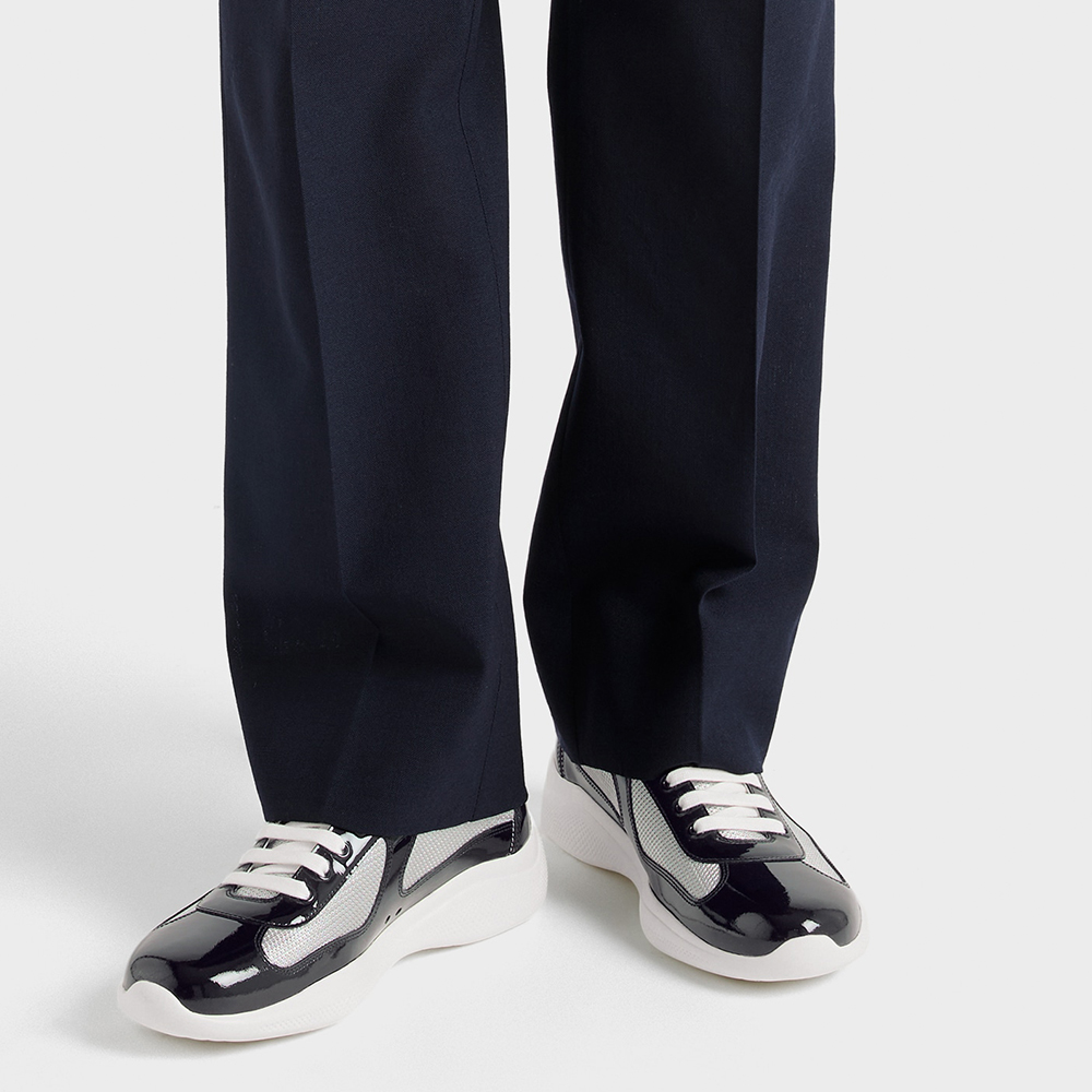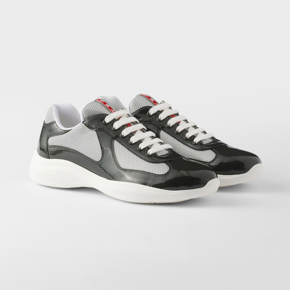 NIGO PRADA Black silver Patent Leather And Technical Fabric Prada America s Cup Sneakers #nigo334570
