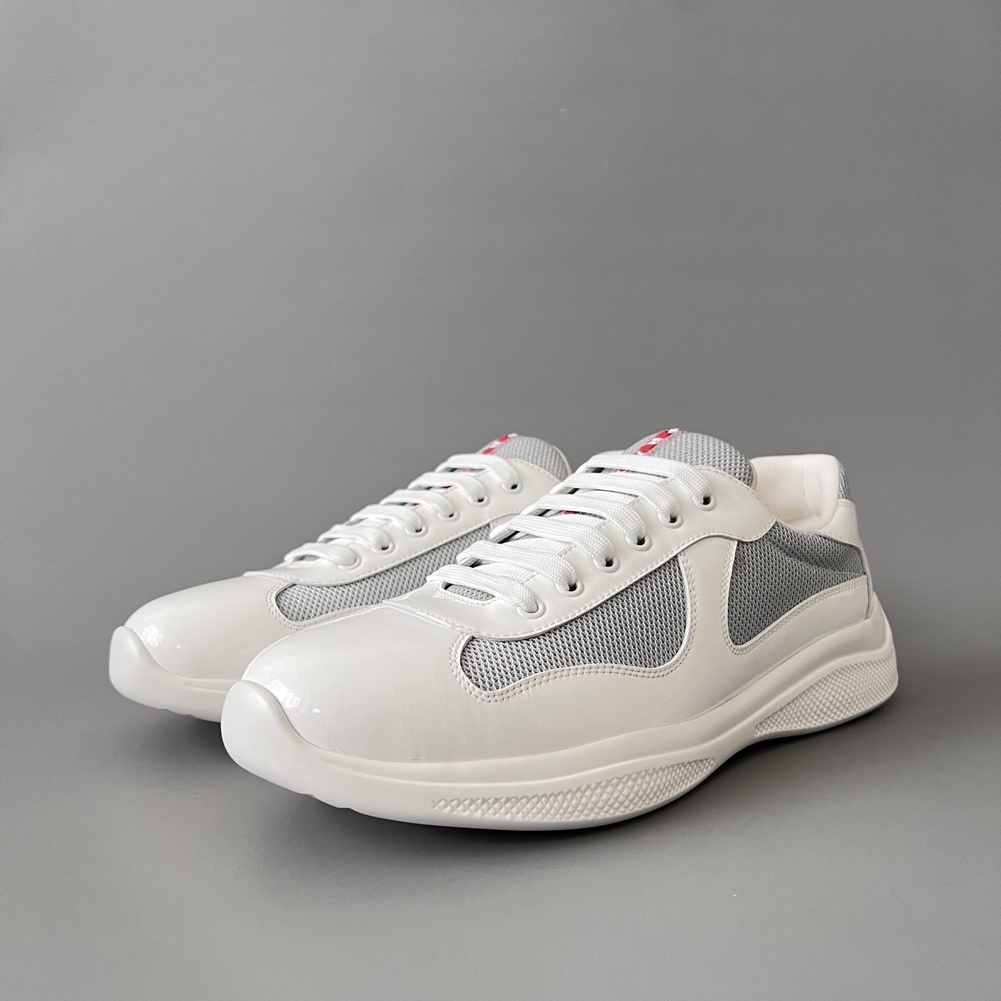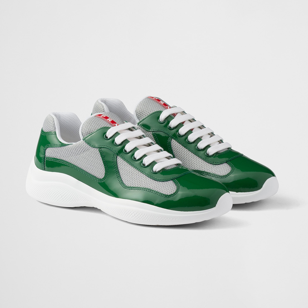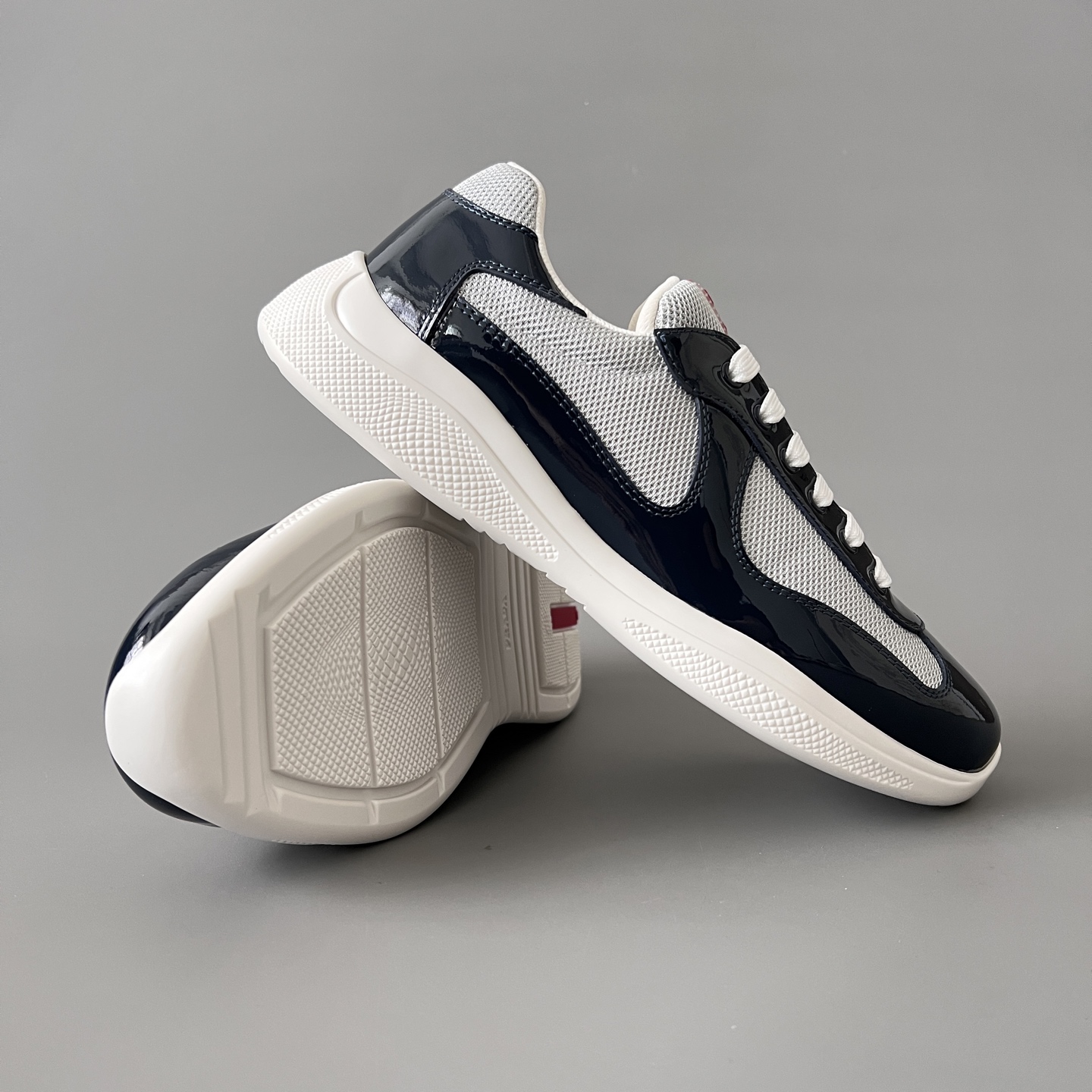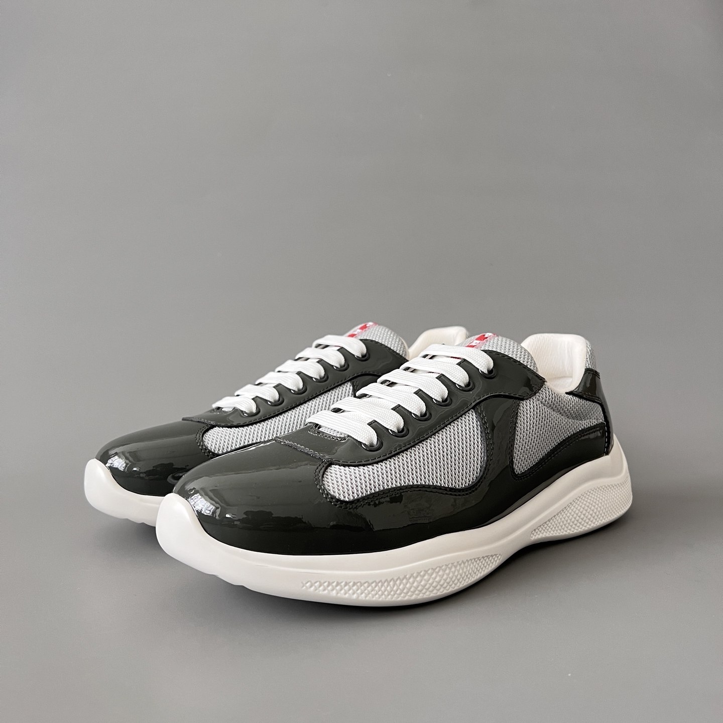 NIGO PRADA Black silver Patent Leather And Technical Fabric Prada America s Cup Sneakers #nigo334570