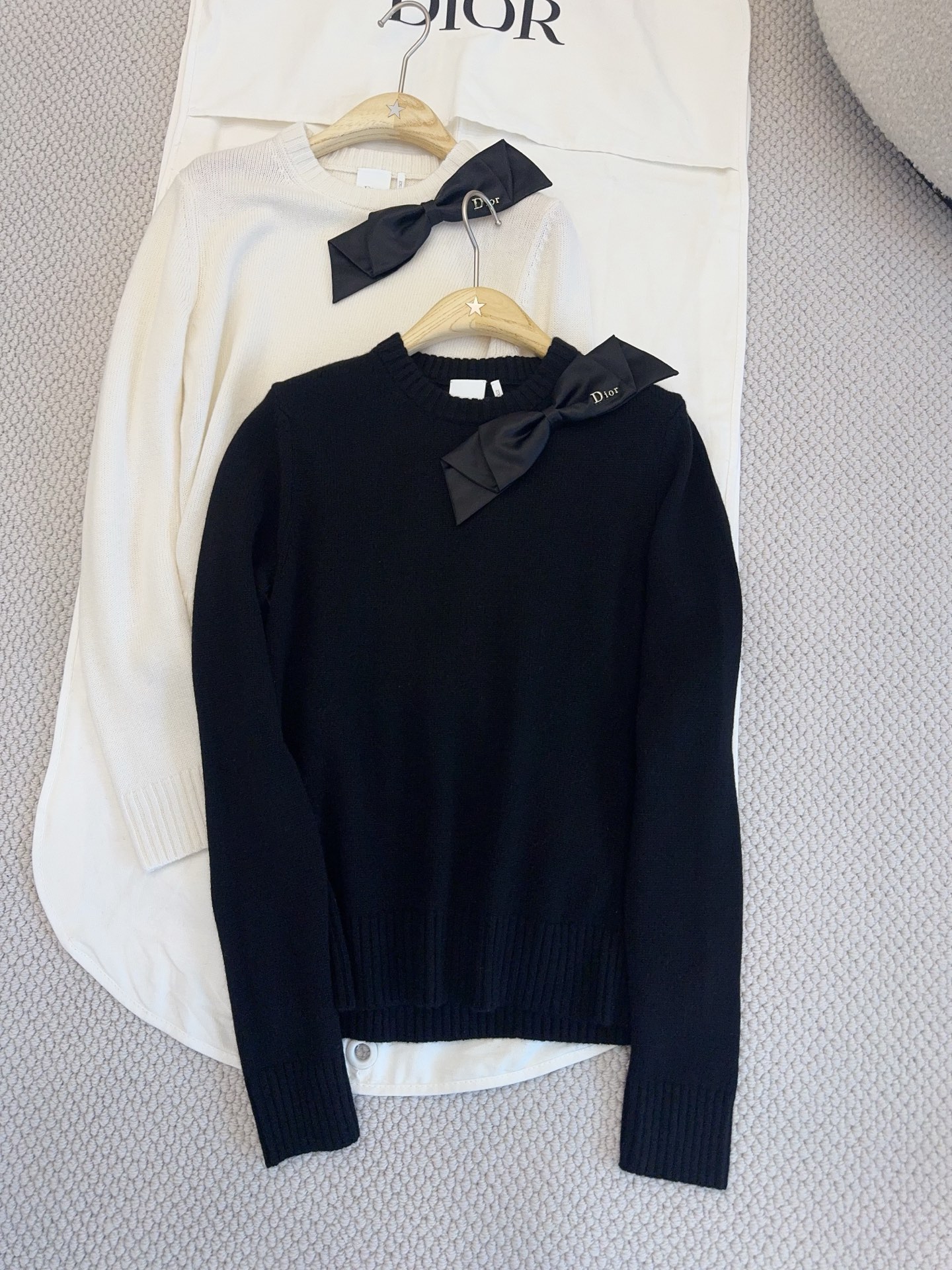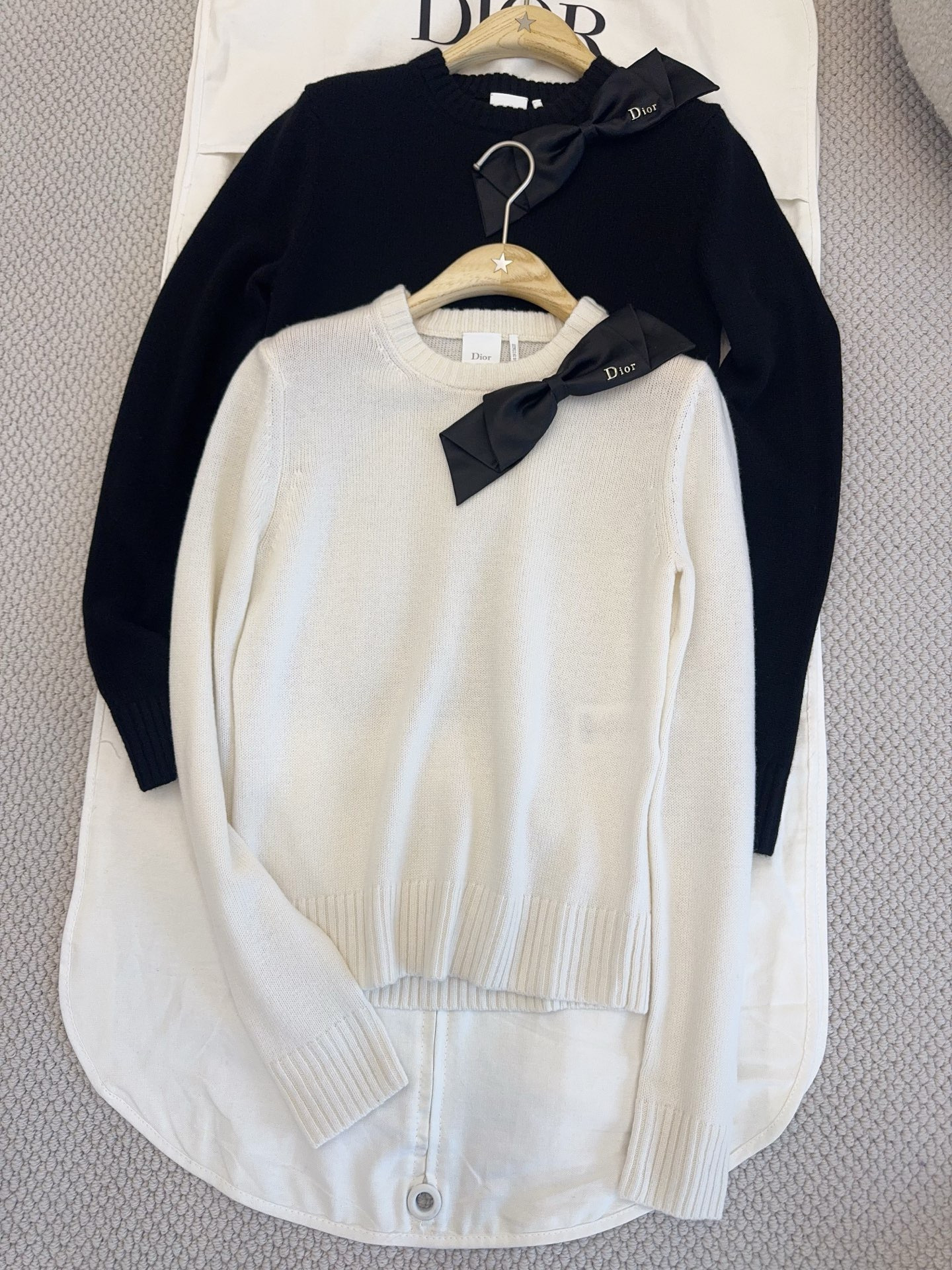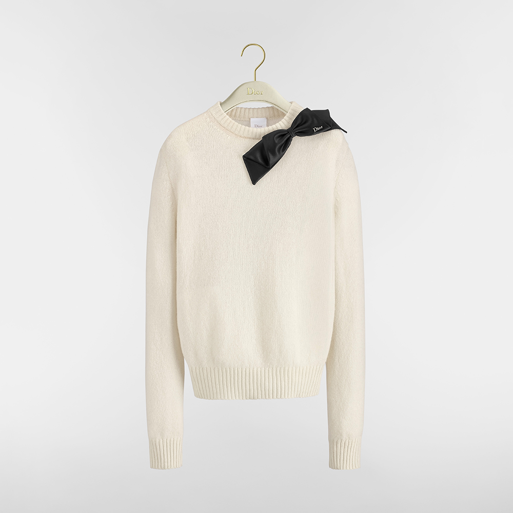 DIOR Embroidered Sweater White Alpaca Cashmere and Silk Knit with Multicolor Butterflies Iris Motif #335853