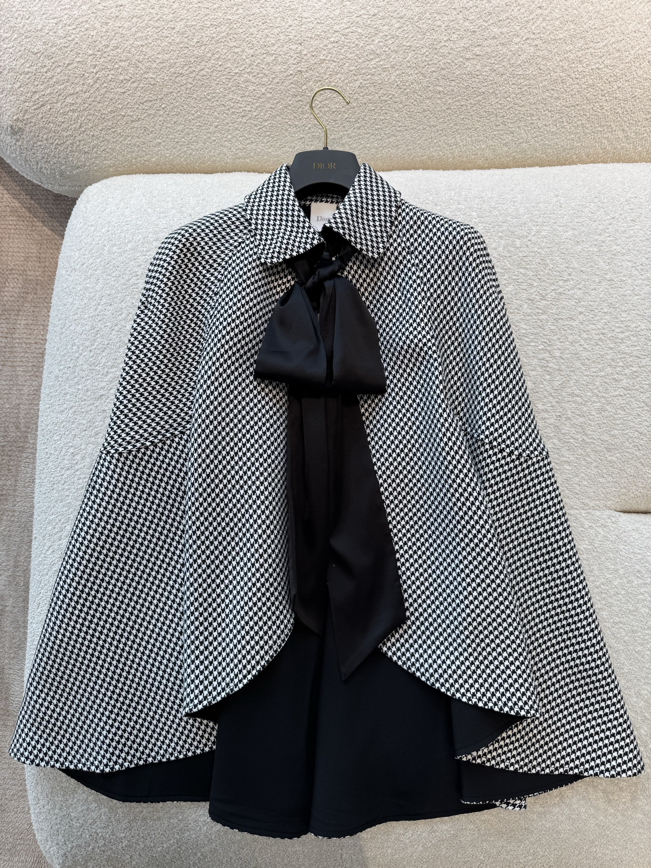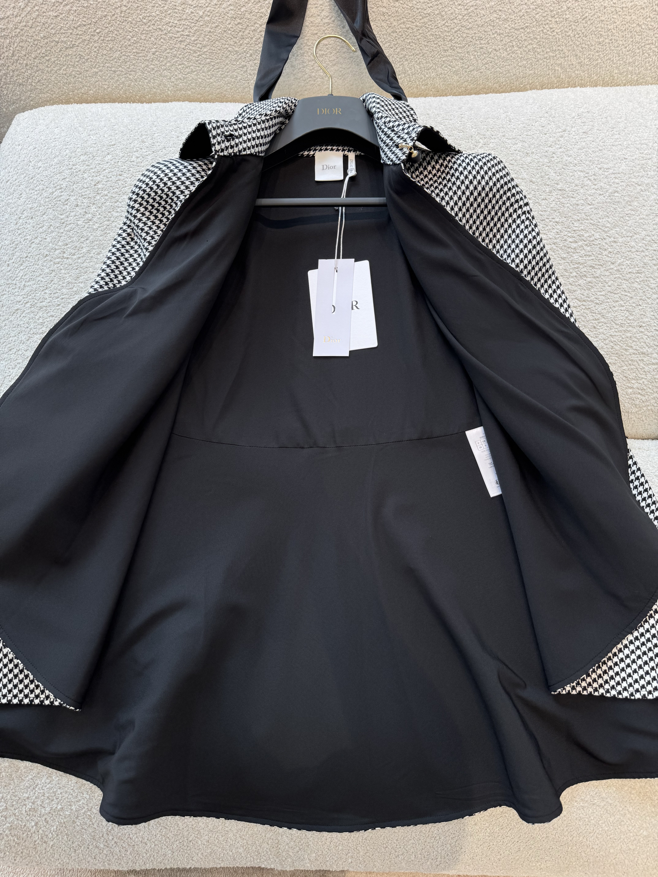 DIOR Macrocannage Regular Fit Jacket Mid-Length Macrocannage Flared Skirt Black White Cotton-Blend Tweed Knit #334340