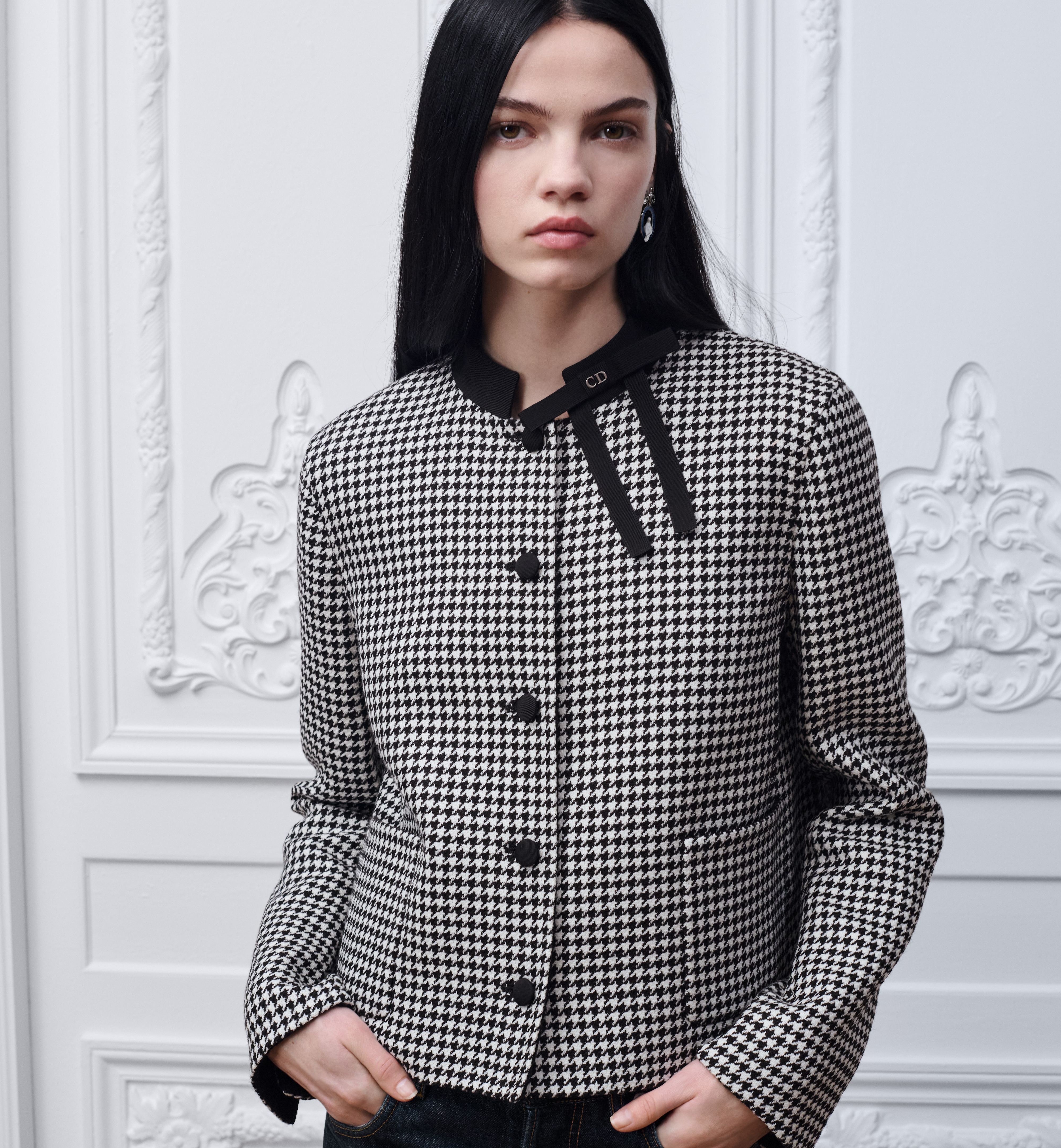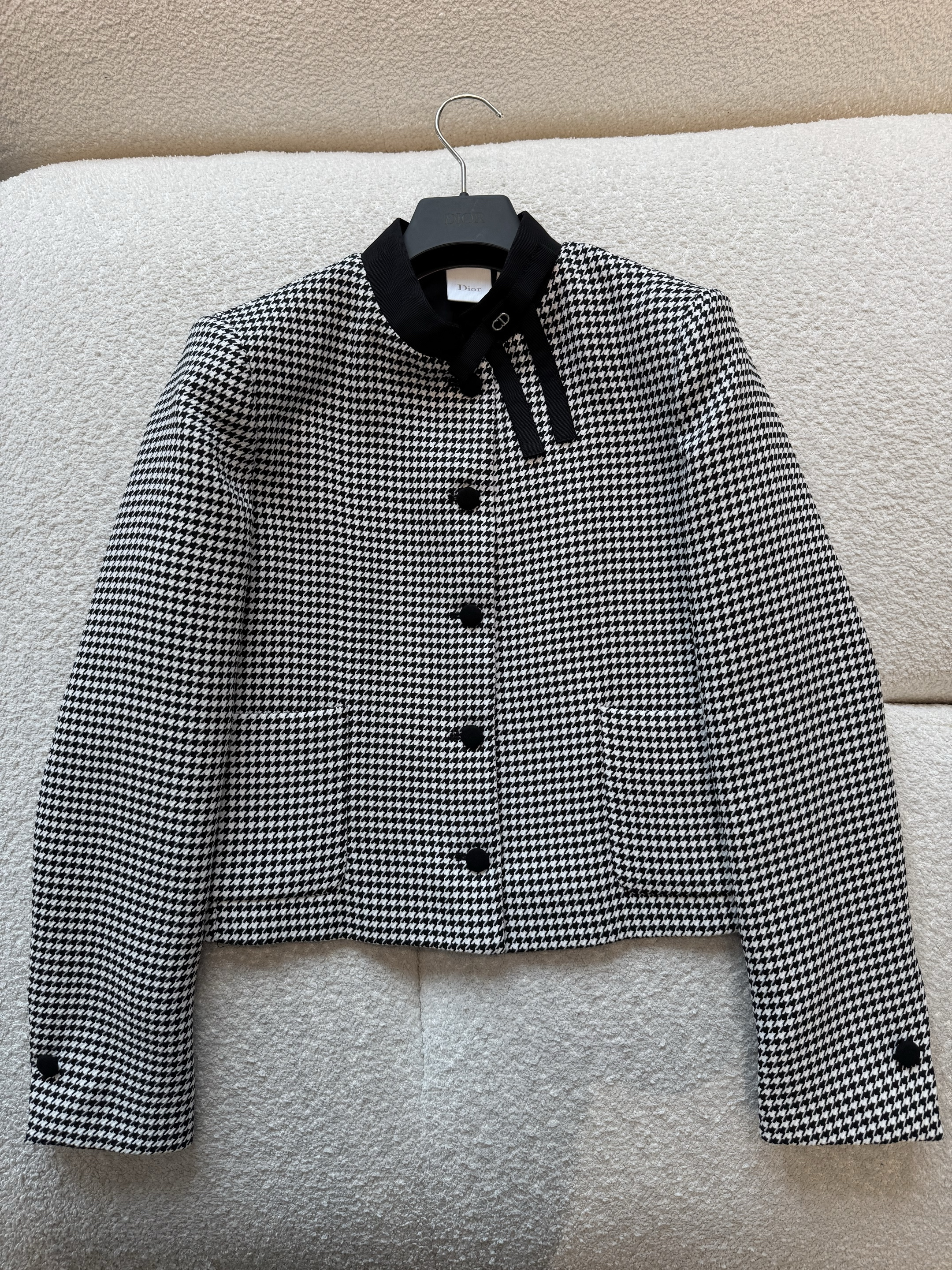 DIOR 30 Montaigne Bar Jacket Black and White Single Breasted Houndstooth Wool #326752