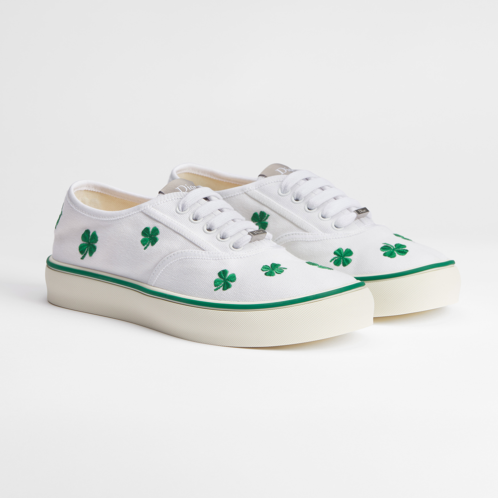 DIOR Fitted T-Shirt White Cotton Jersey with Green Dior Clover Motif #375760
