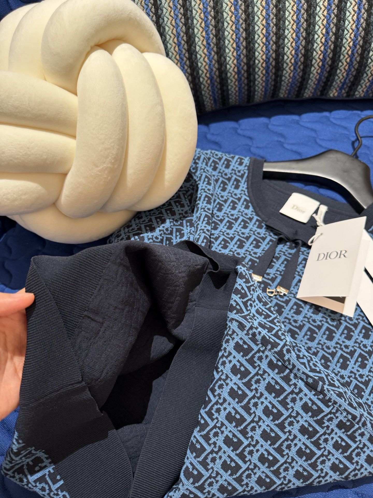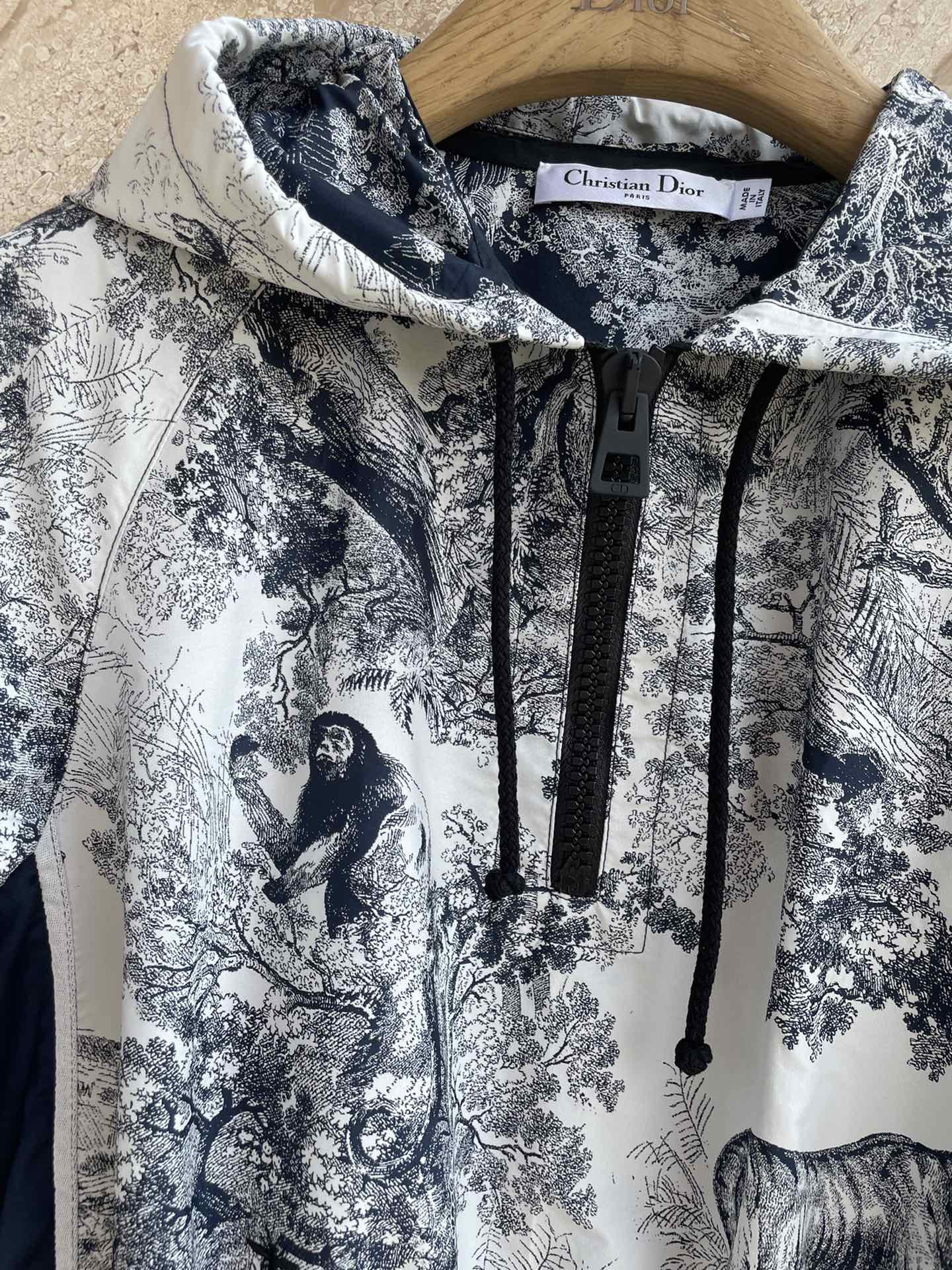 DIOR Hooded Jacket Blue Jacquard Technical Taffeta with Dior Oblique Motif #326749