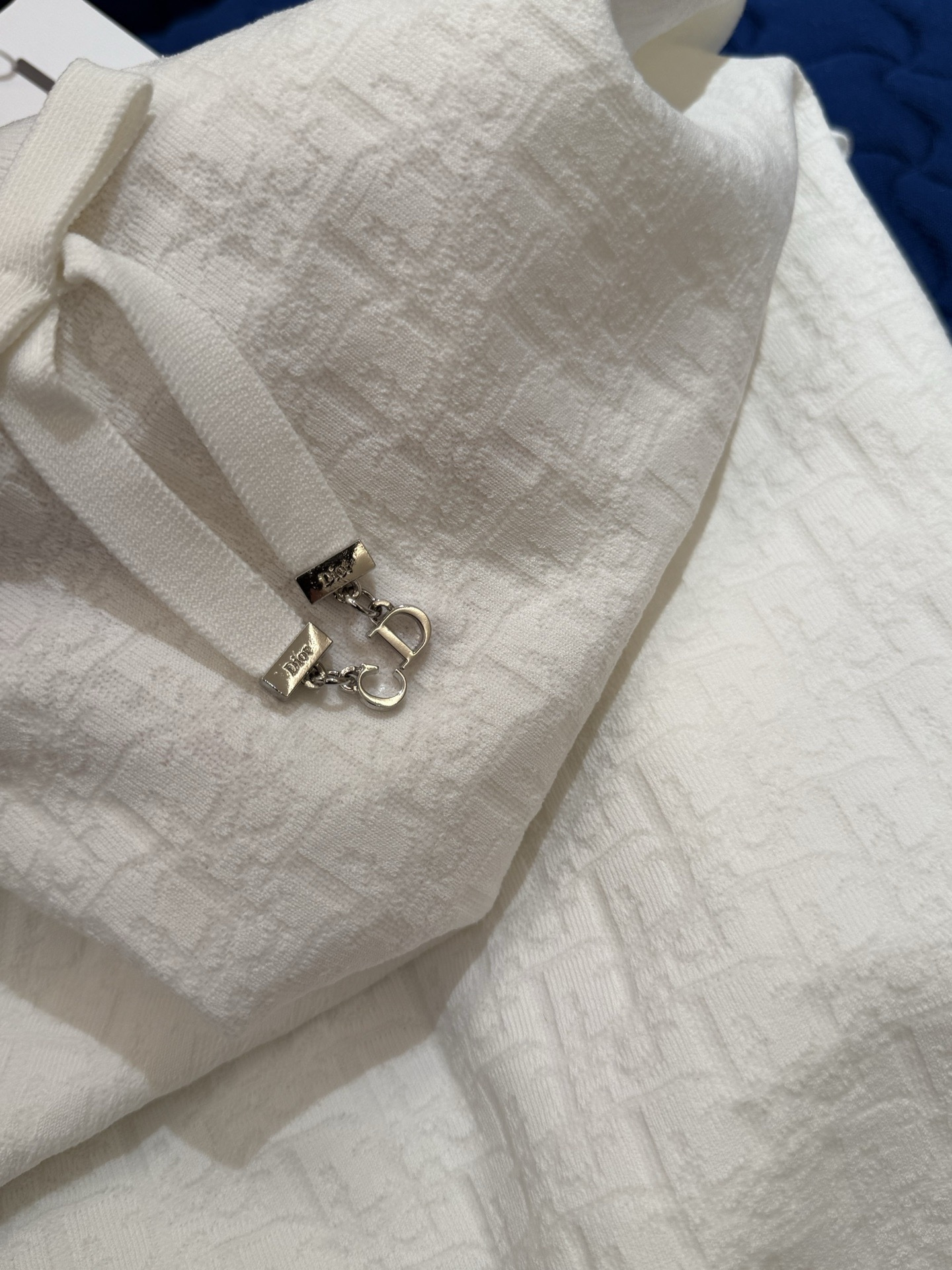 DIOR Cannage Hooded Sweatshirt Beige Cotton and Wool Blend Knit#336735