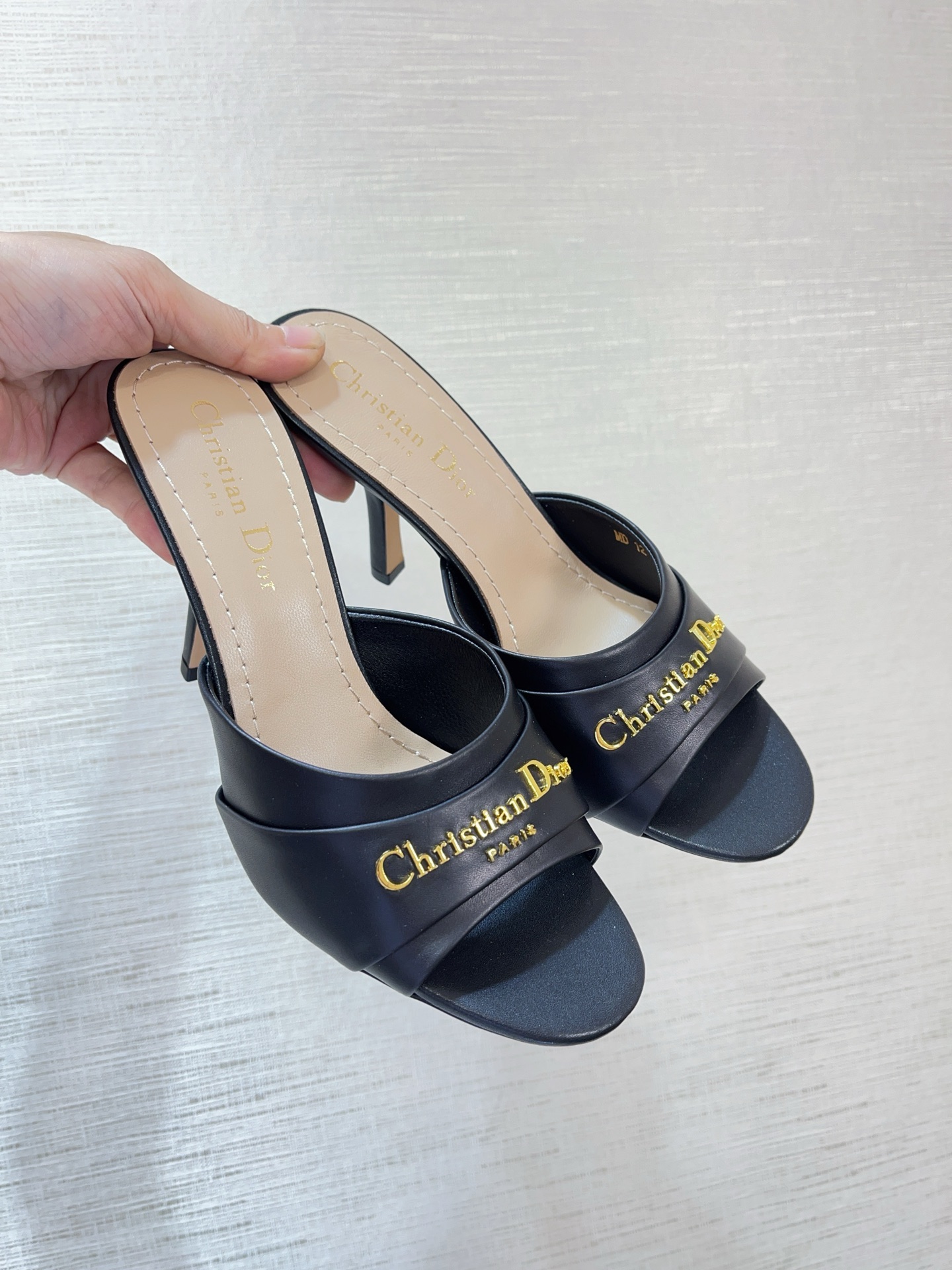 NIGO My Dior Heeled Slide Women's Summer Gold Letter Print Solid Color Leather 10cm High Heel Sandals Shoes #nigo77216