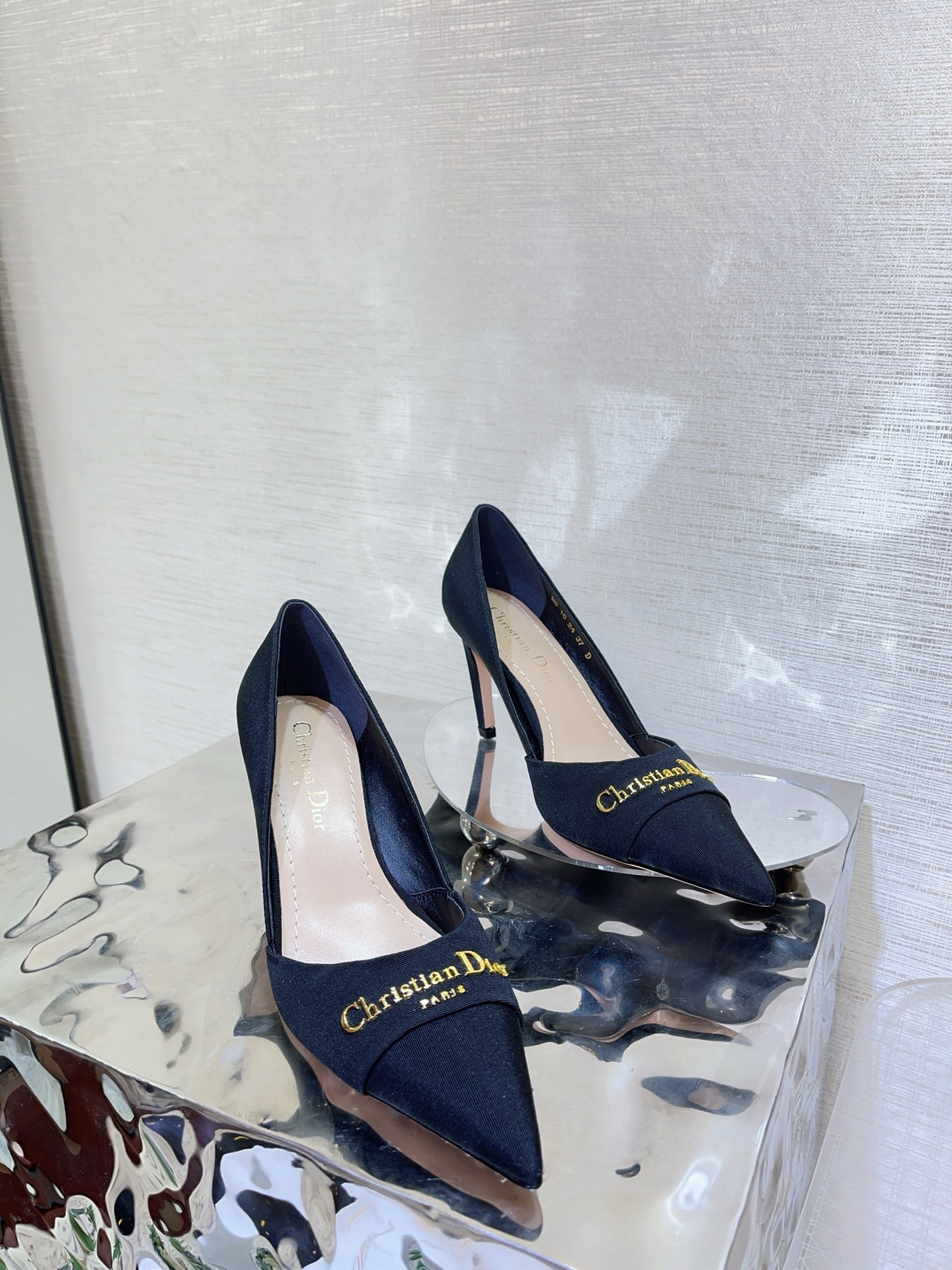 NIGO Escarpin My Dior Women's Summer Gold Letter Print Solid Color Cowhide Pointed Toe 8cm High Heel Shoes #nigo77215