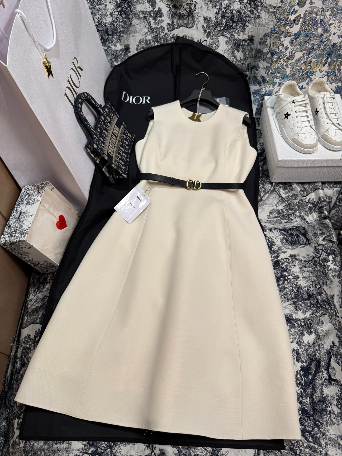NIGO Dior Women's Spring/Summer Solid Color Round Neck Sleeveless Waist-cinched Dress #nigo77256