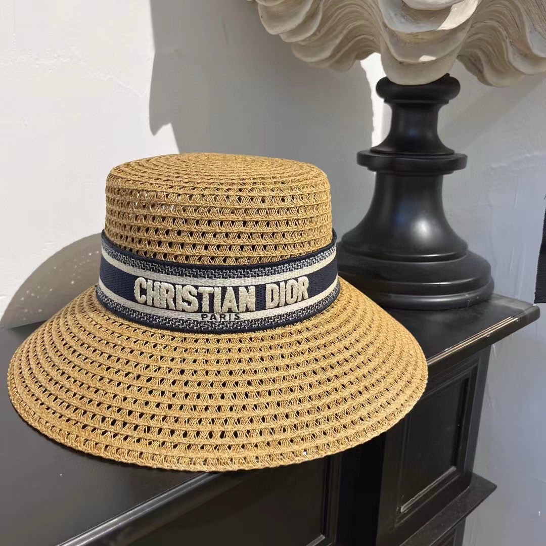 NIGO Dior Women's Solid Colour Straw Letter Embroidery Trimmed Strap Fisherman's Hat D-Bobby Wide Brim Hat #nigo76871