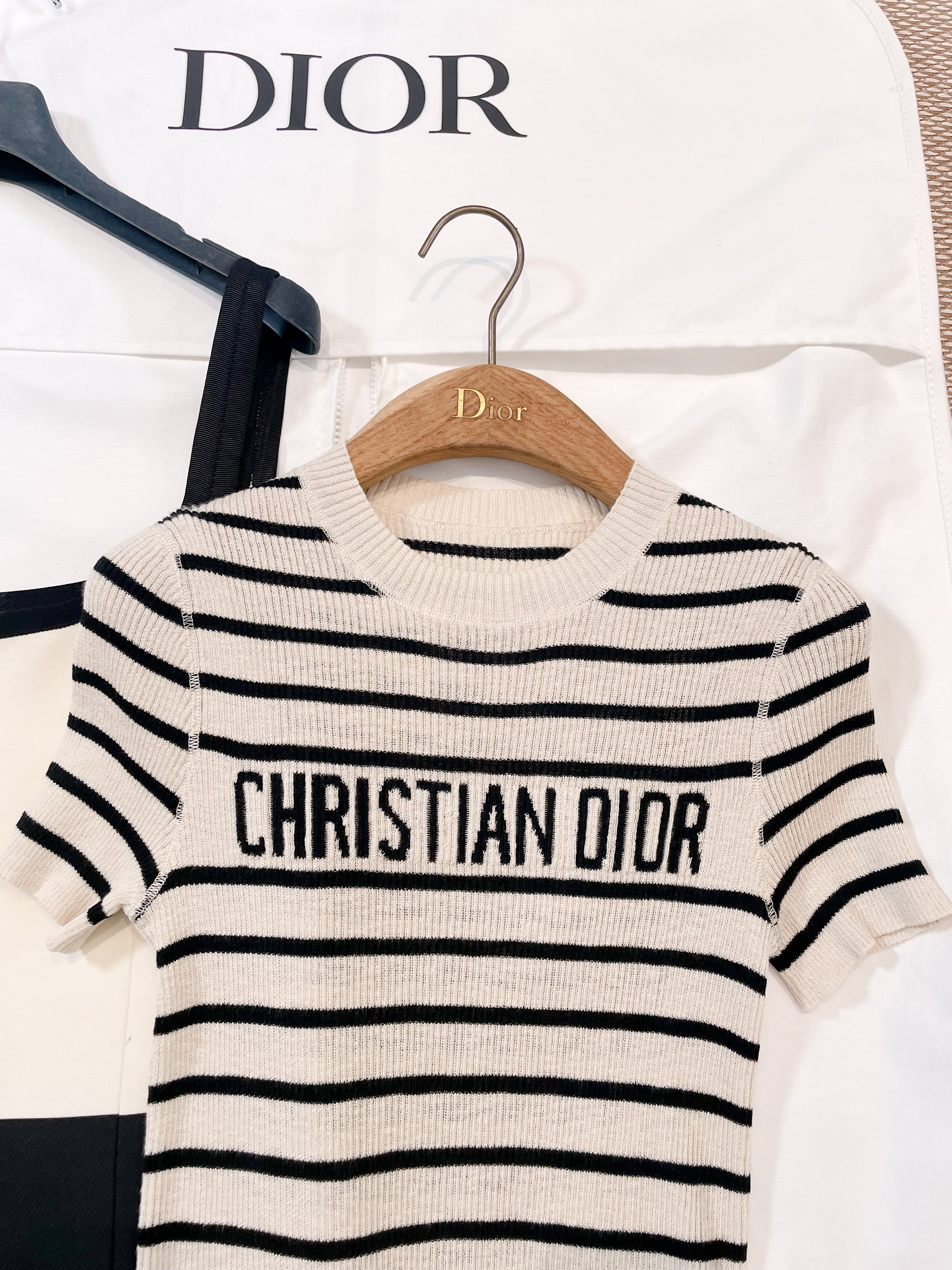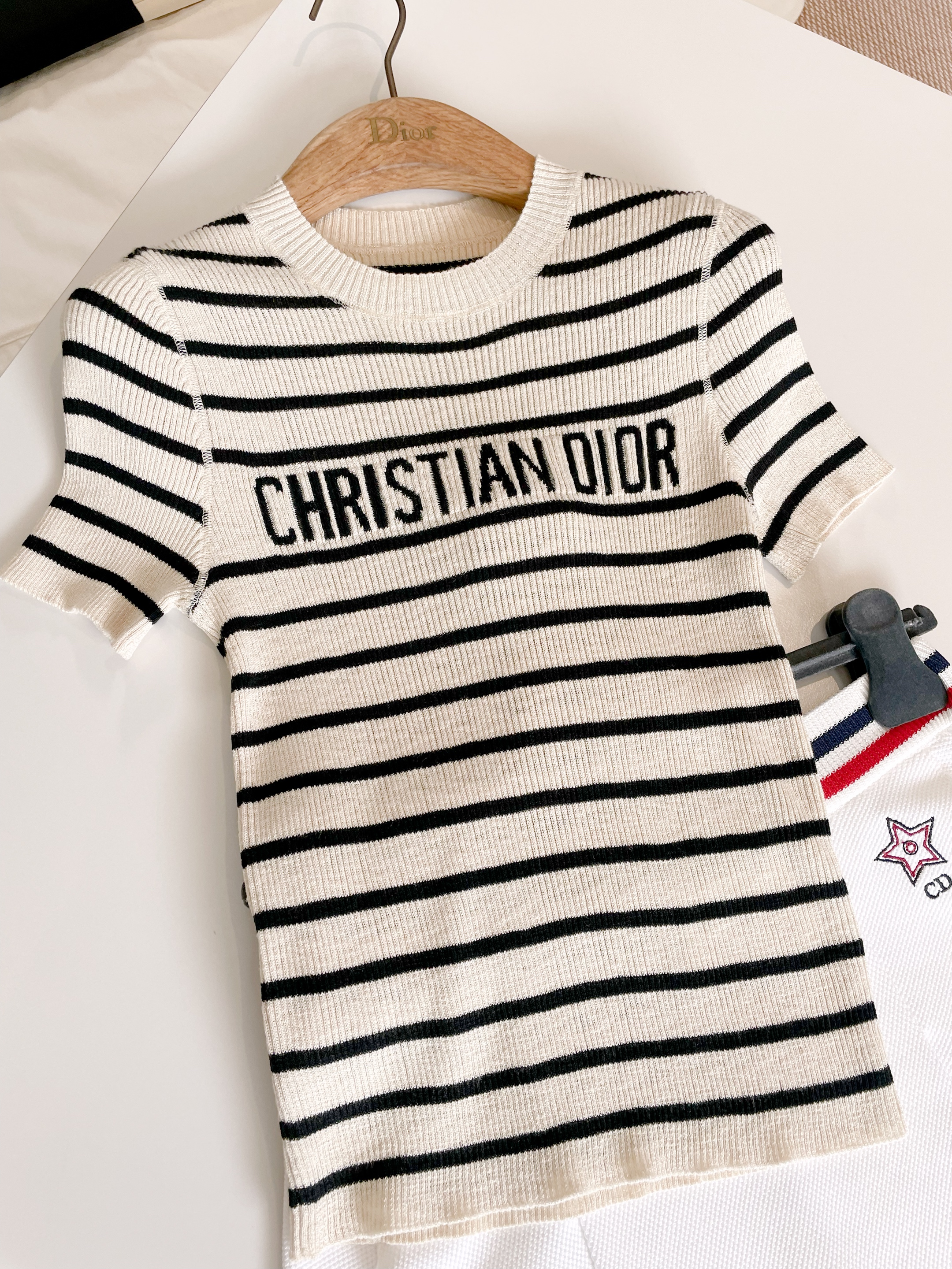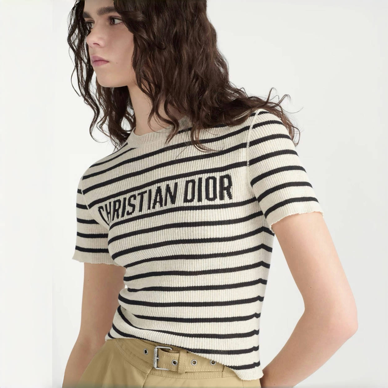 NIGO DIOR Women's Summer Black And White Striped Appliquéd Letters Knit Round Neck Short Sleeve T-shirt #nigo76543