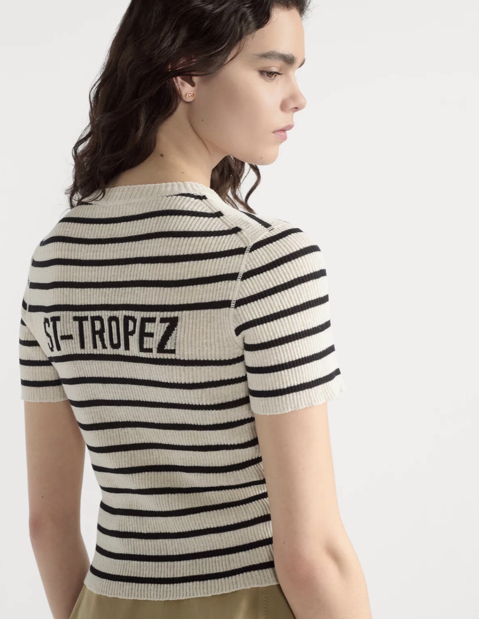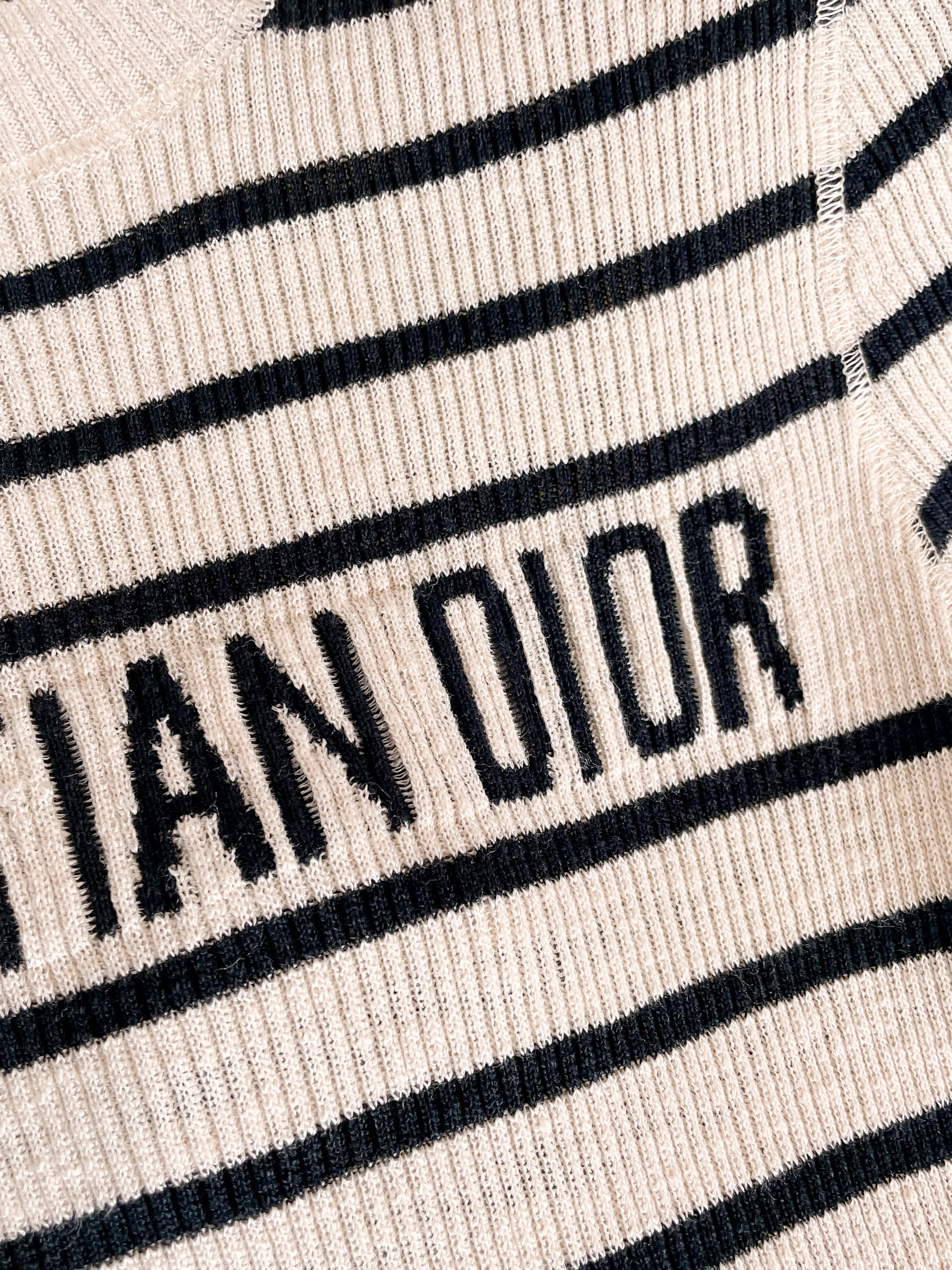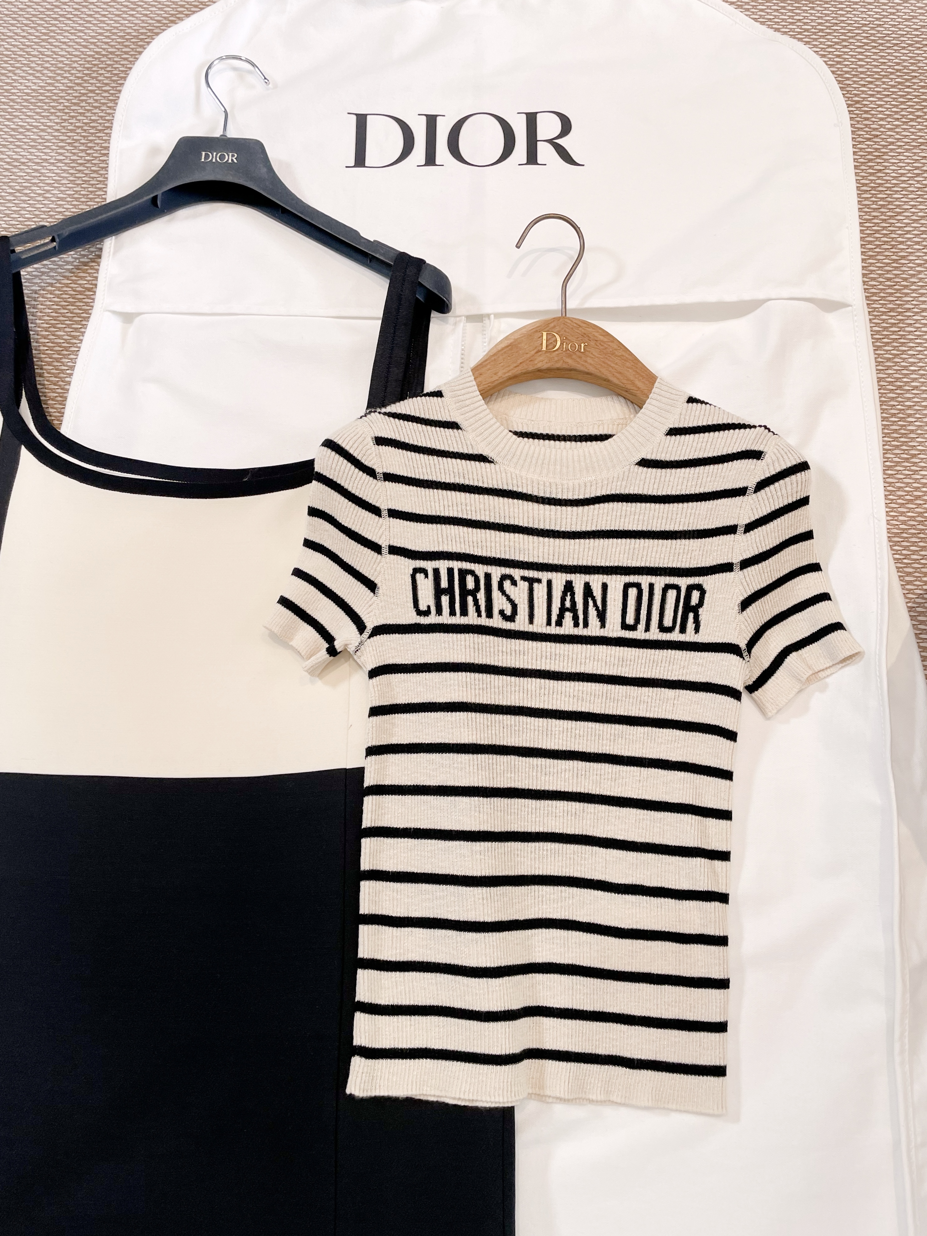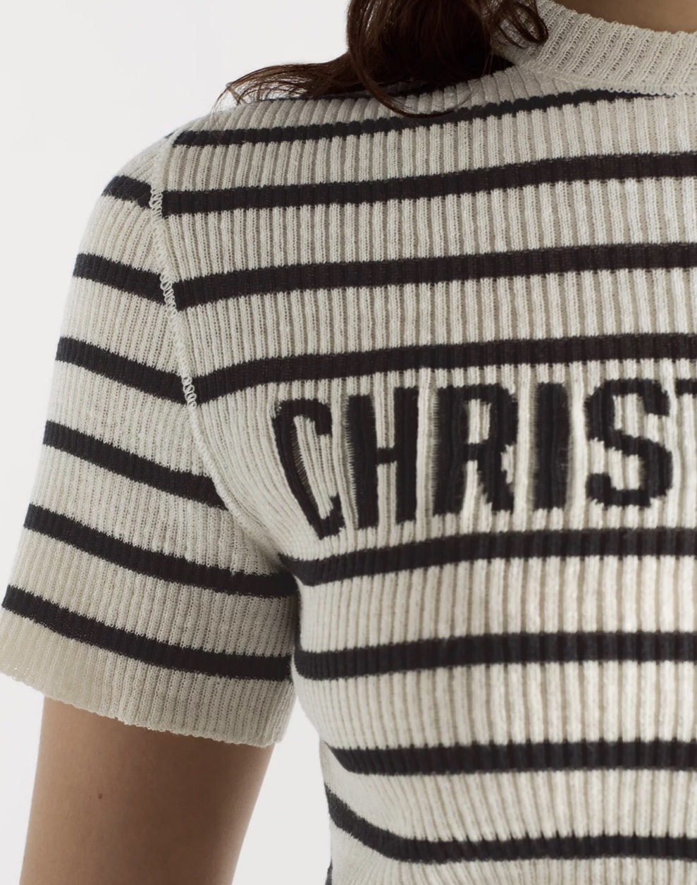 NIGO DIOR Women's Summer Black And White Striped Appliquéd Letters Knit Round Neck Short Sleeve T-shirt #nigo76543