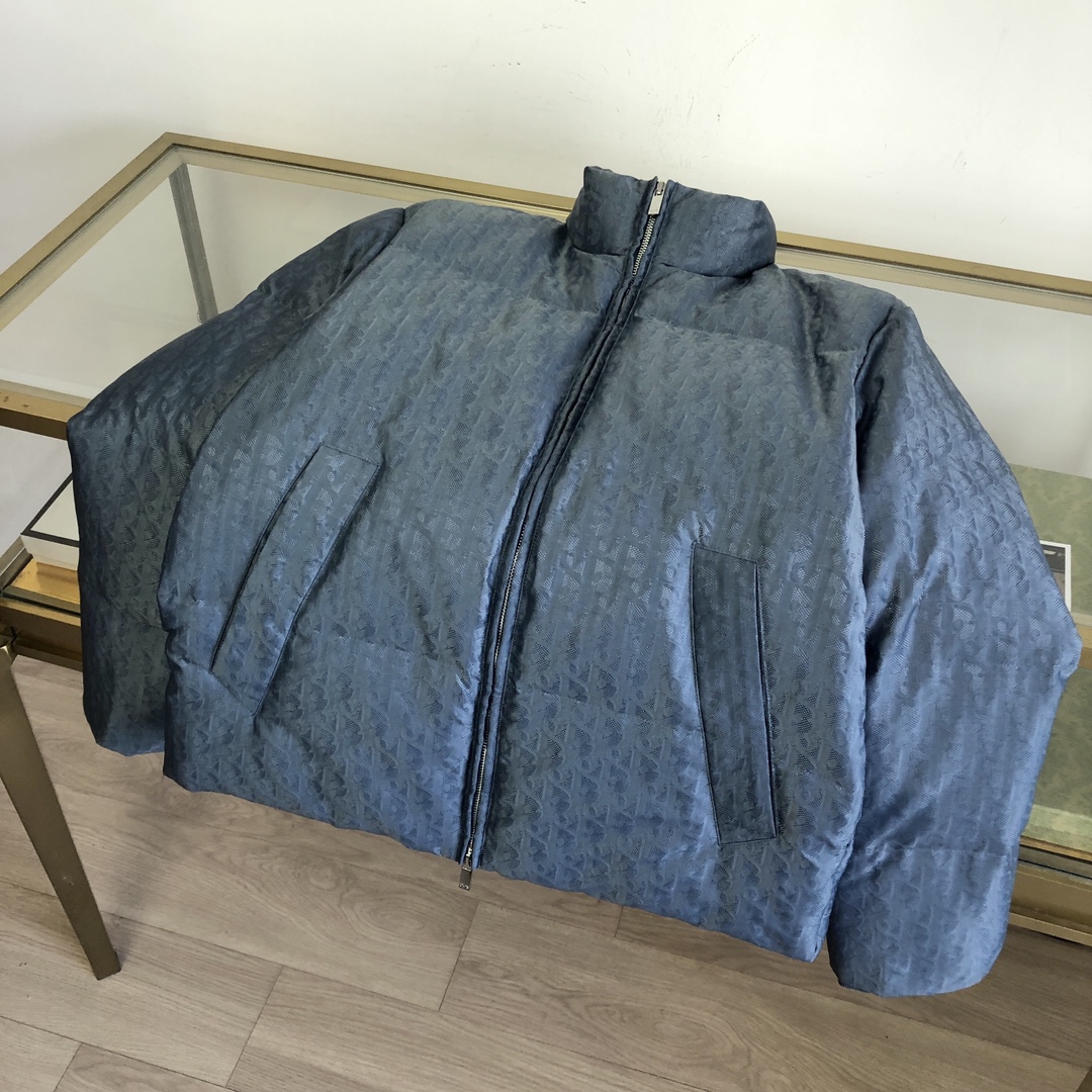 Nigo Dior Men's Fall And Winter Blue Dark Logo Print Lapel Single Breasted Long Sleeved Puffer Down Jacket #nigo74511