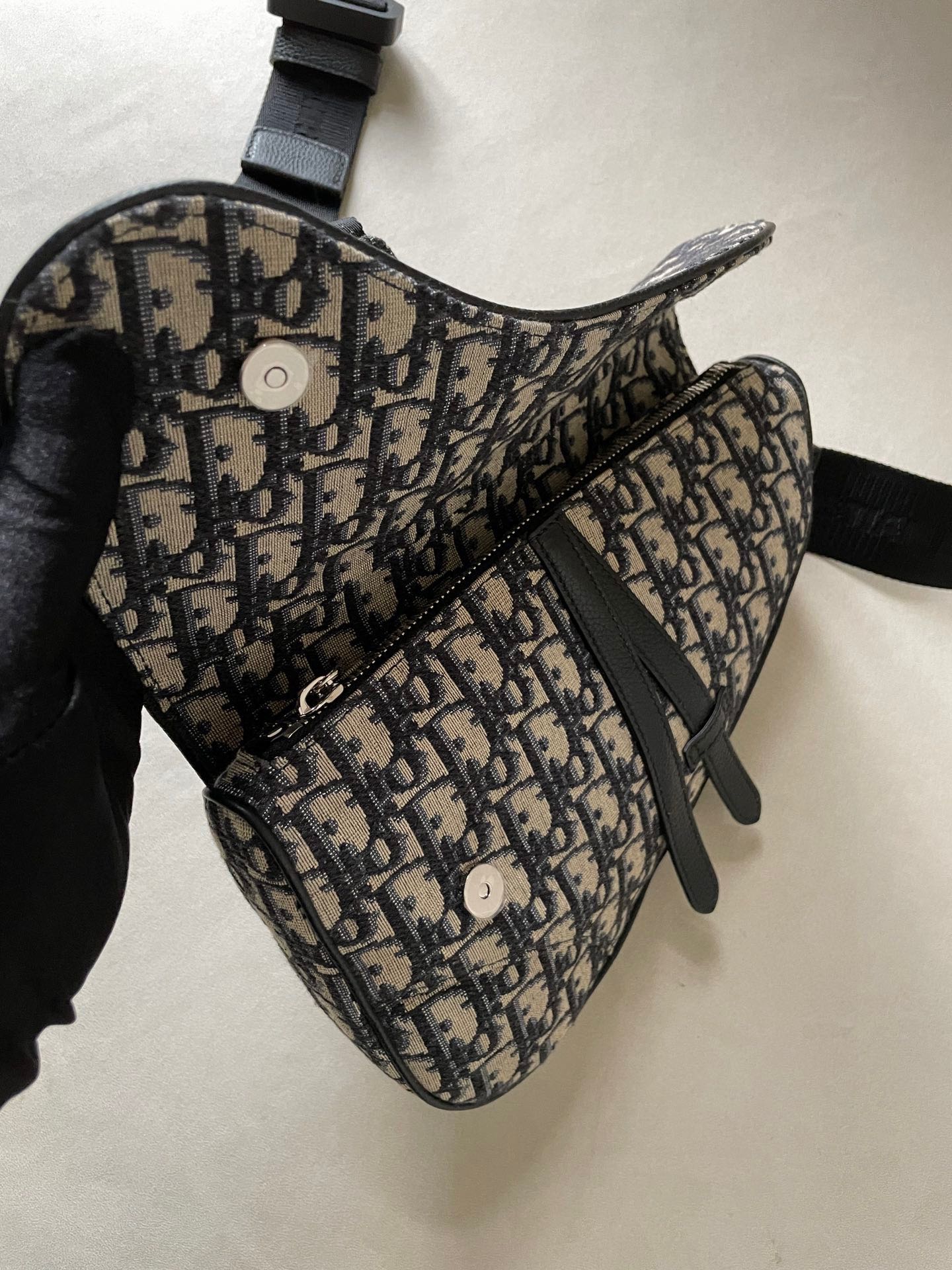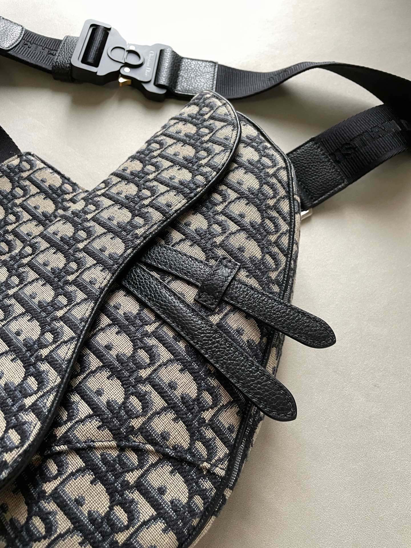 NIGO Dior Men's Black Embossed Pattern Magnetic Flap Leather Quilted Canvas Crossbody Bag Bags #nigo74515