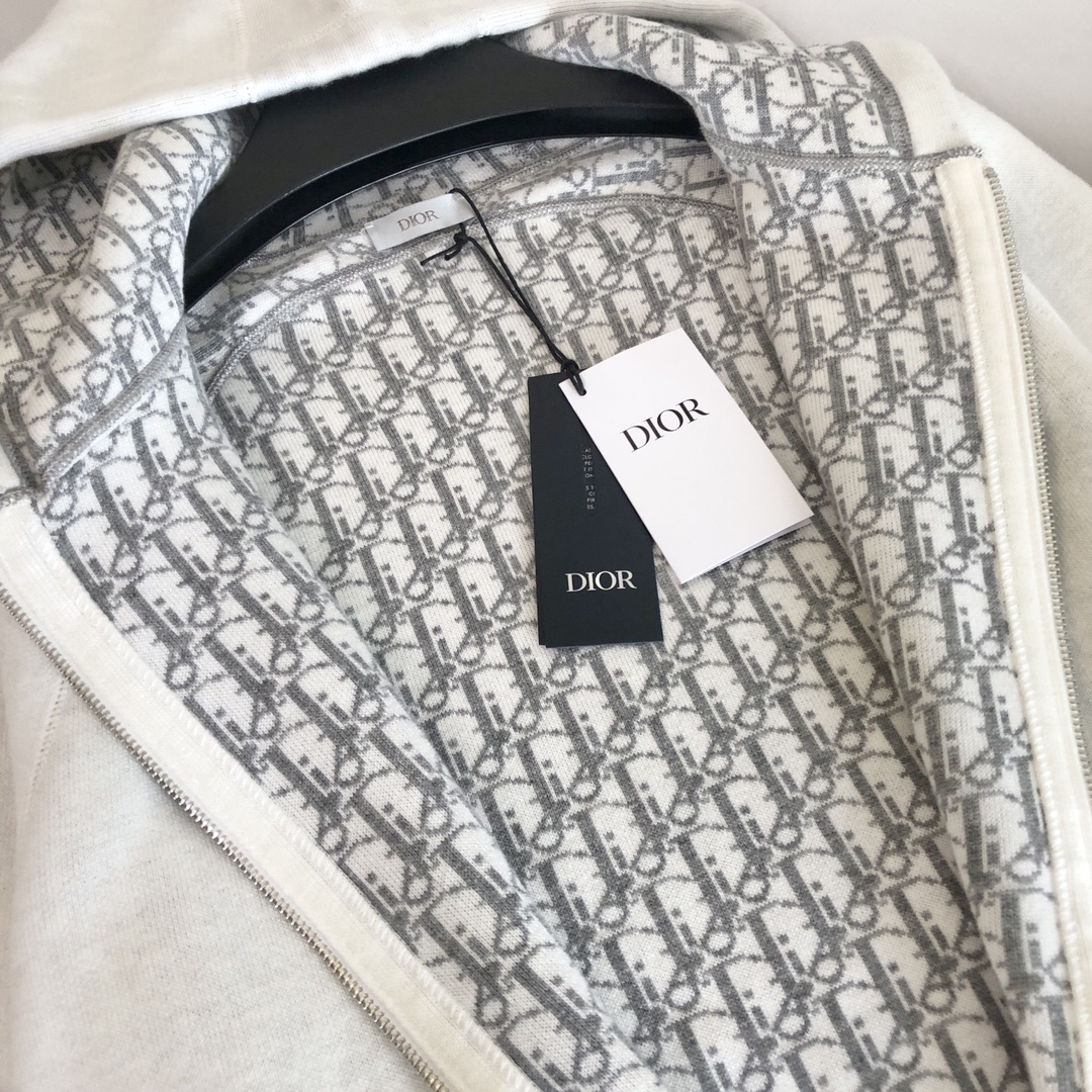 NIGO Dior Men's Autumn/Winter Monogrammed Lined Solid Color Wool Blend Hooded Zip-Up Jacket #nigo72348