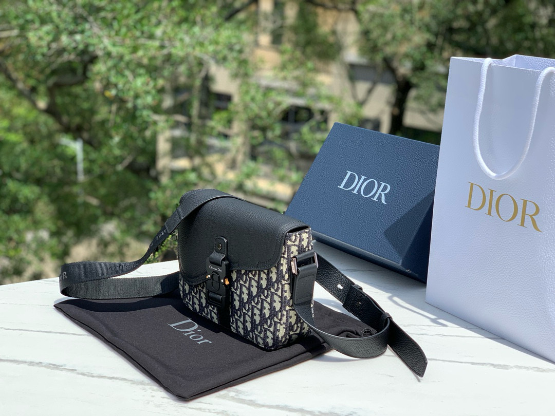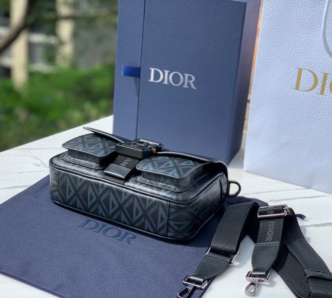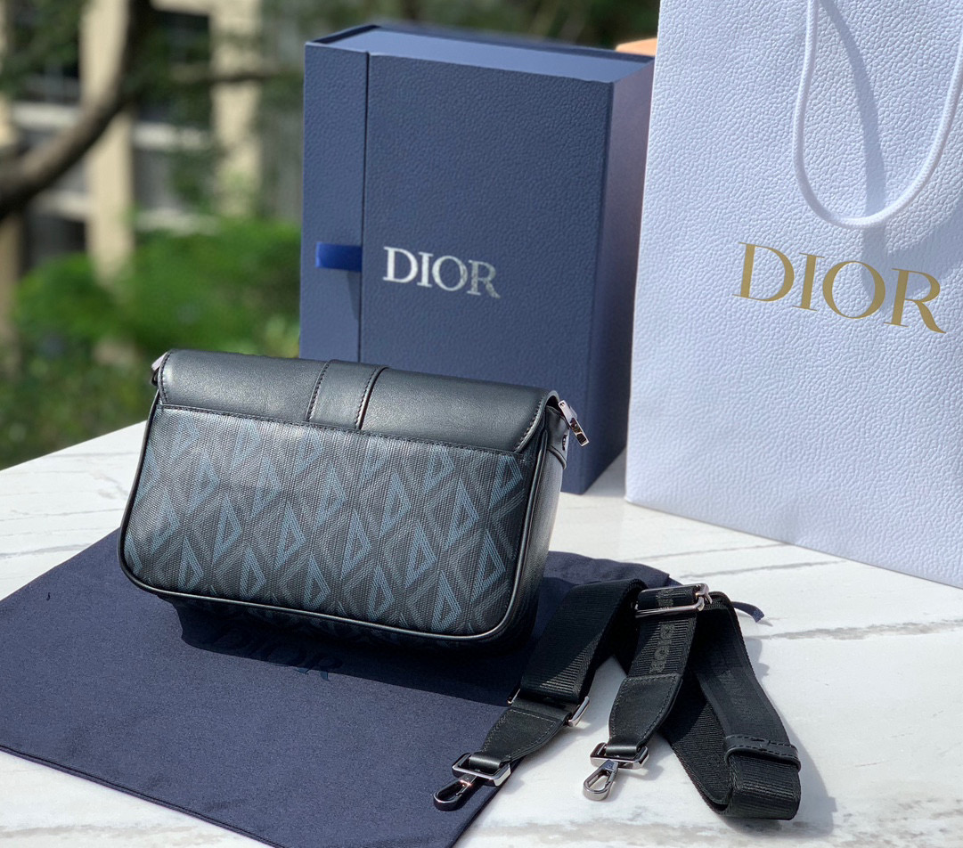 NIGO Dior Men's Black CD Diamond Printed Smooth Cowhide Leather Crossbody Shoulder Bag #nigo99337