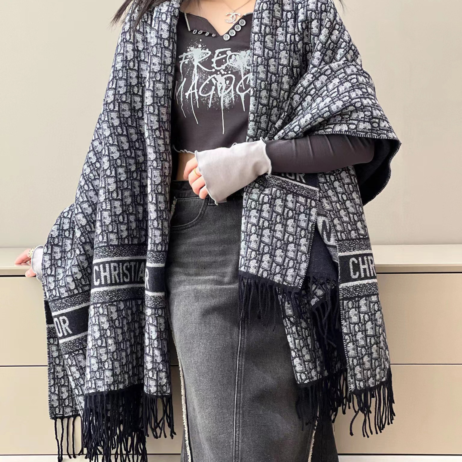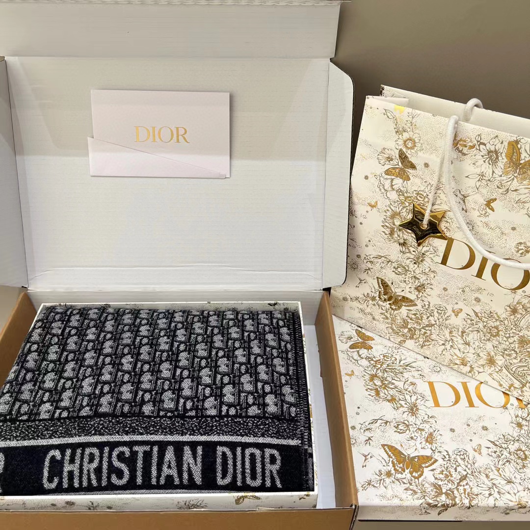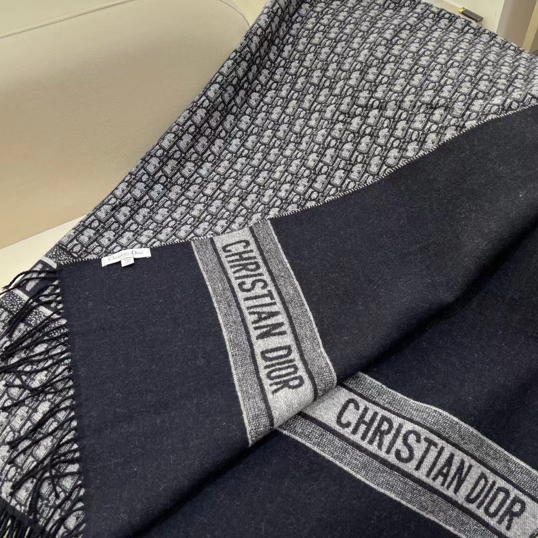 Dior Navy Letter Jacquard Large Leather Blanket Wool Scarf #nigo56466