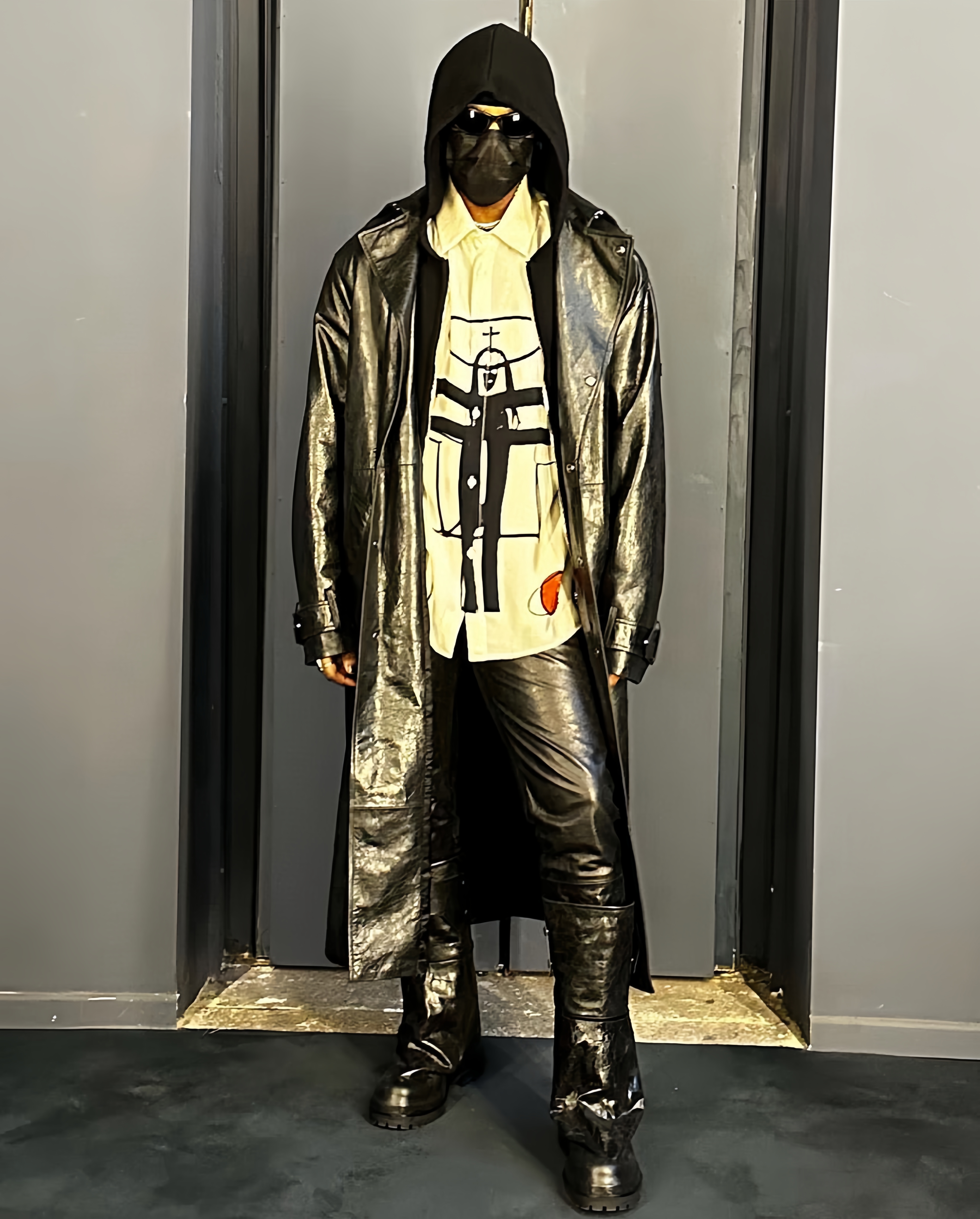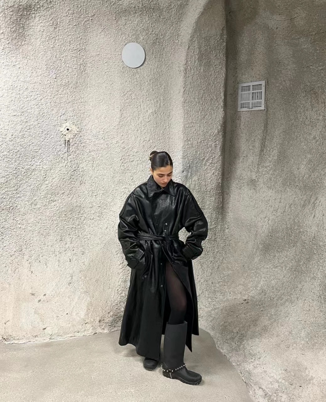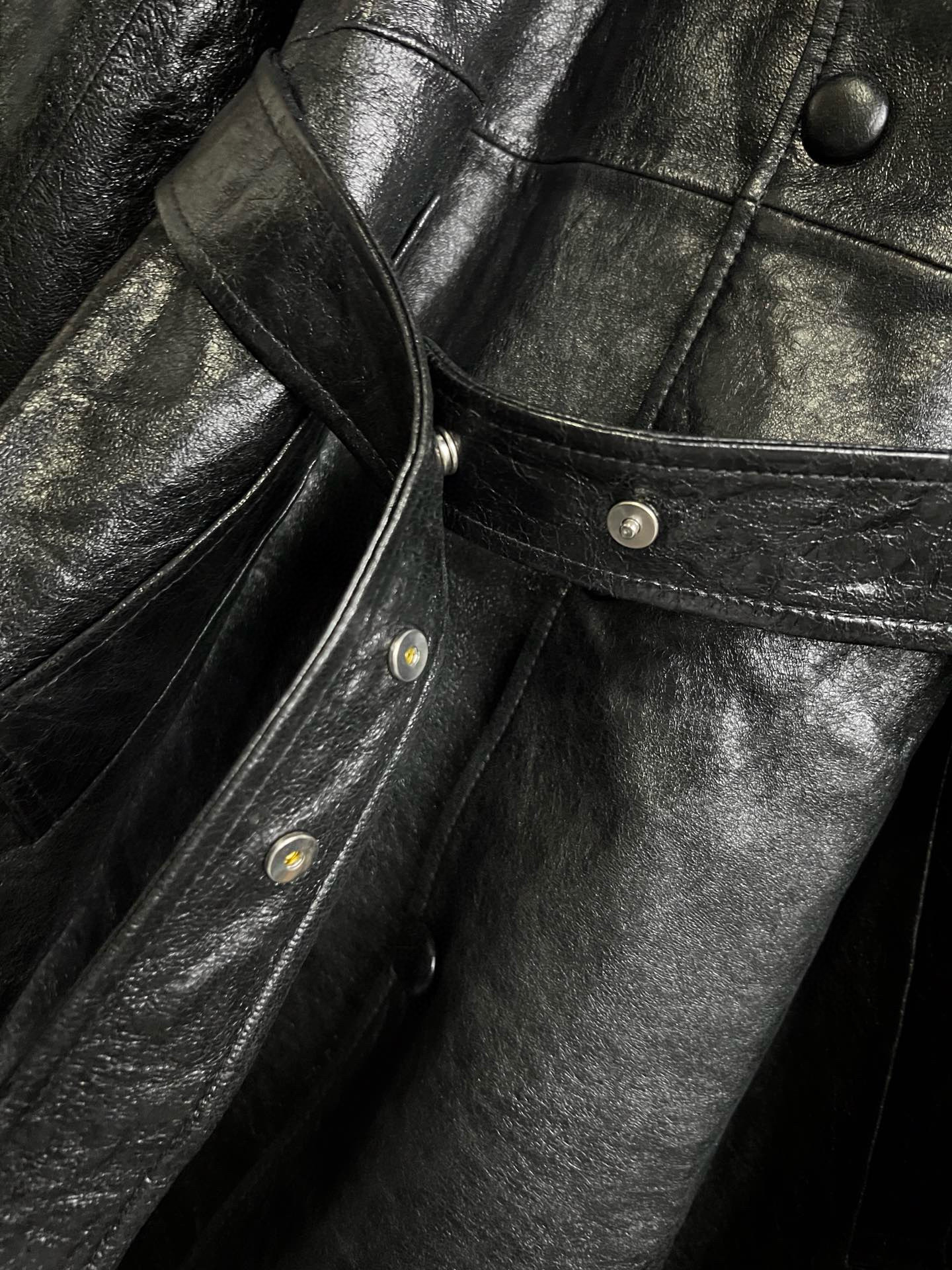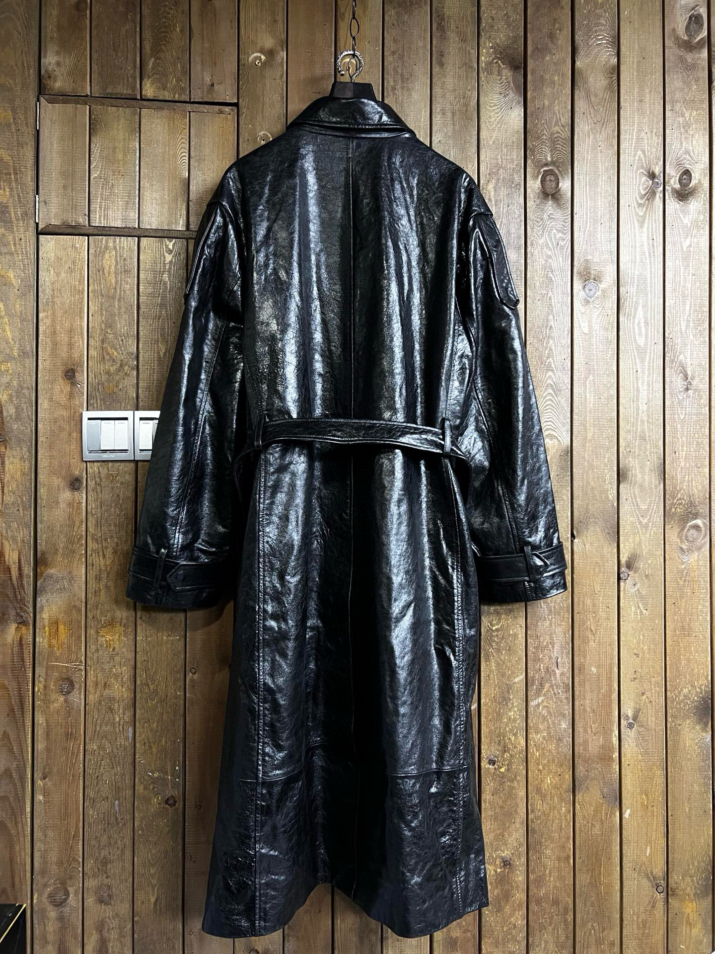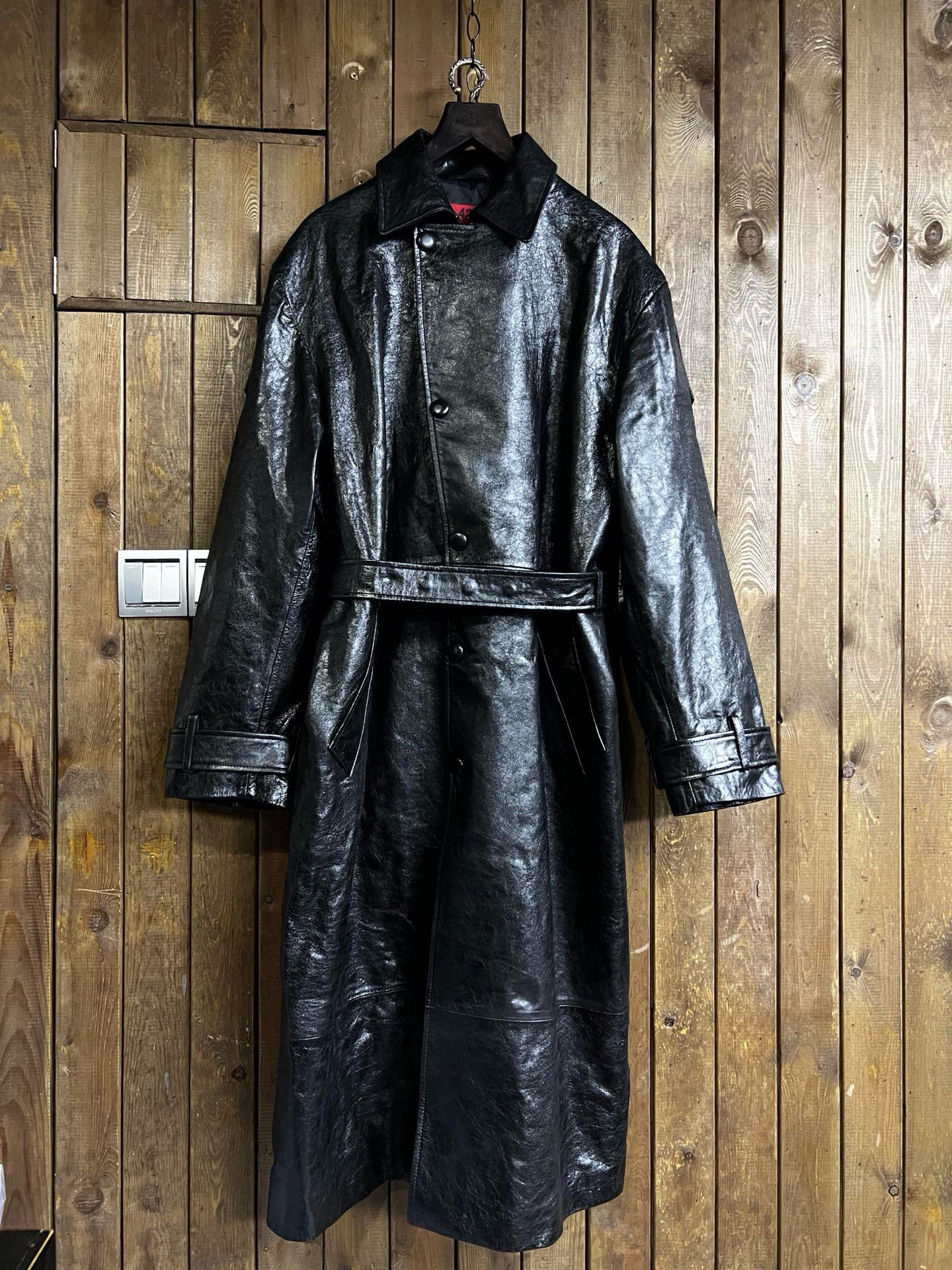 NIGO 424 Men's Autumn and Winter Leather Belted Single Breasted Pants Long Sleeve Coat Jacket #nigo99317