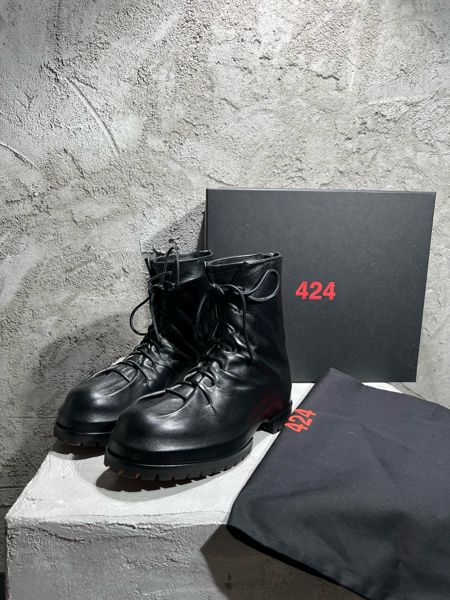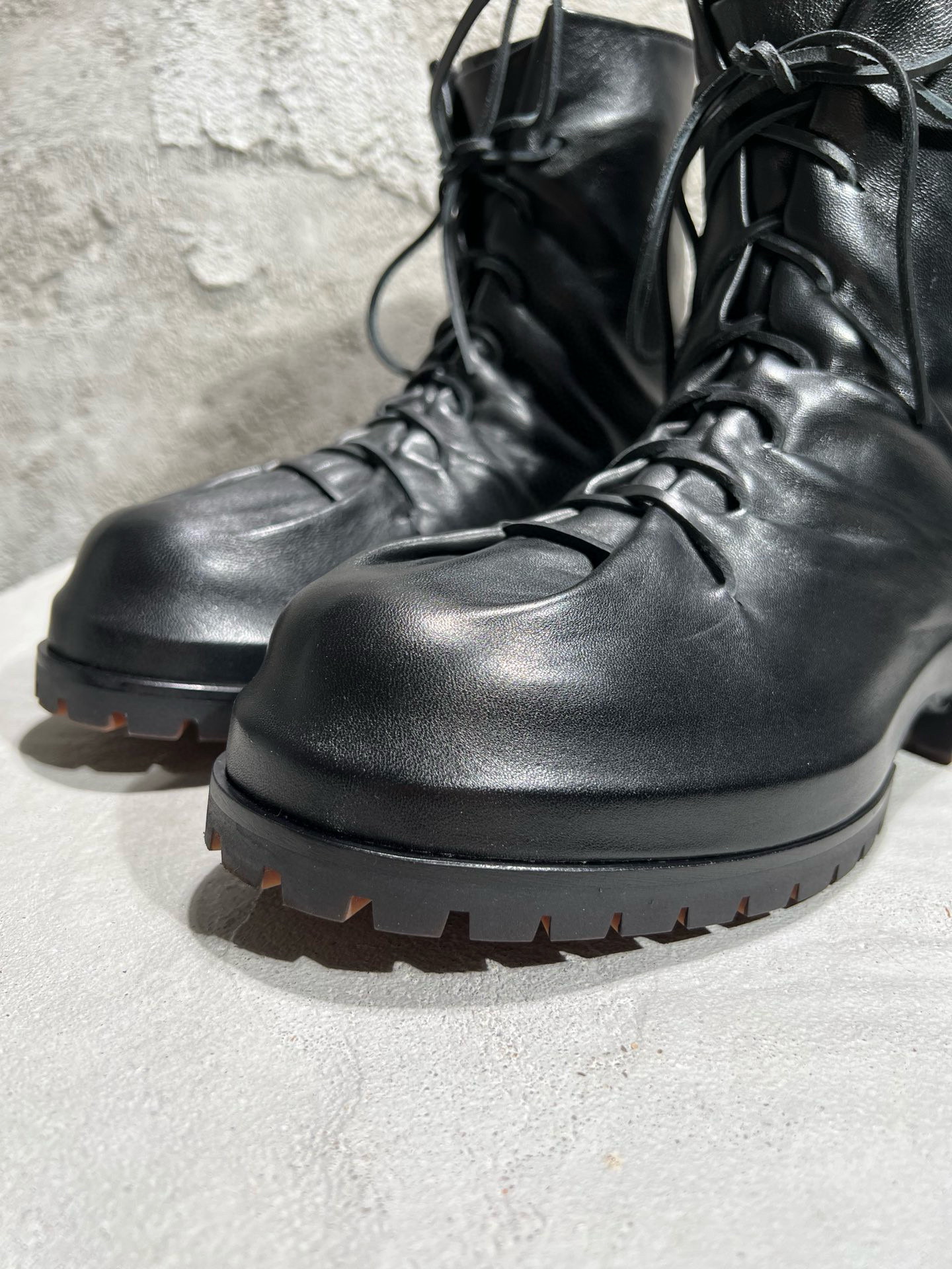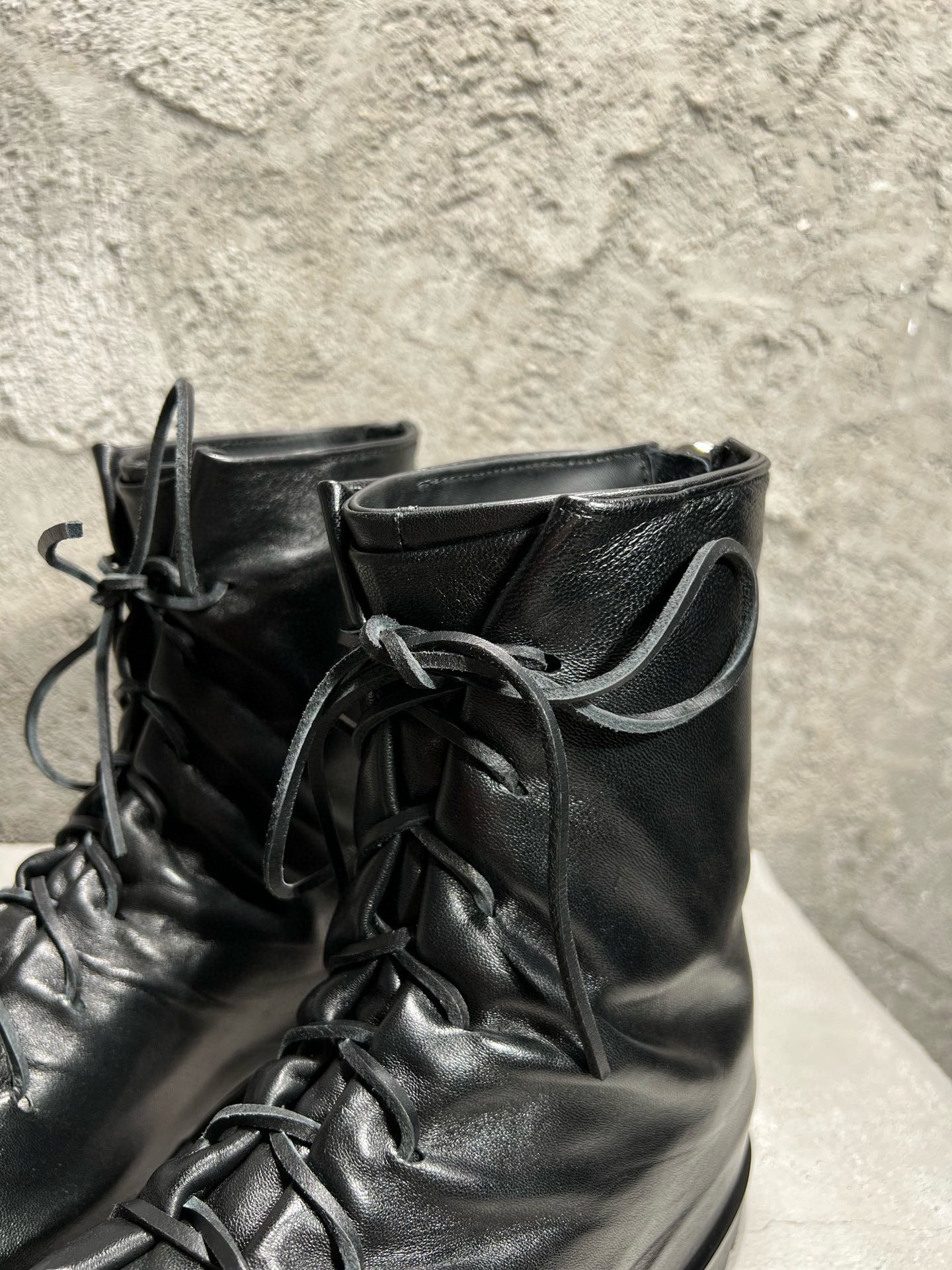 NIGO 424 Men's Head Sheepskin Round Toe Lace Up Mid Calf Boots Pleated Dark Style Chunky Heel Thick Bottom Height Increasing Martin Boots Shoes #nigo71713