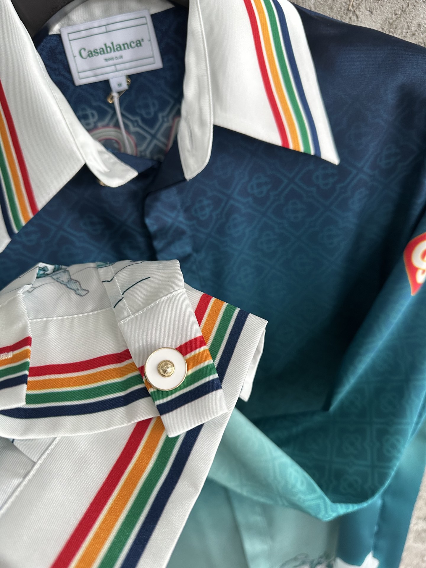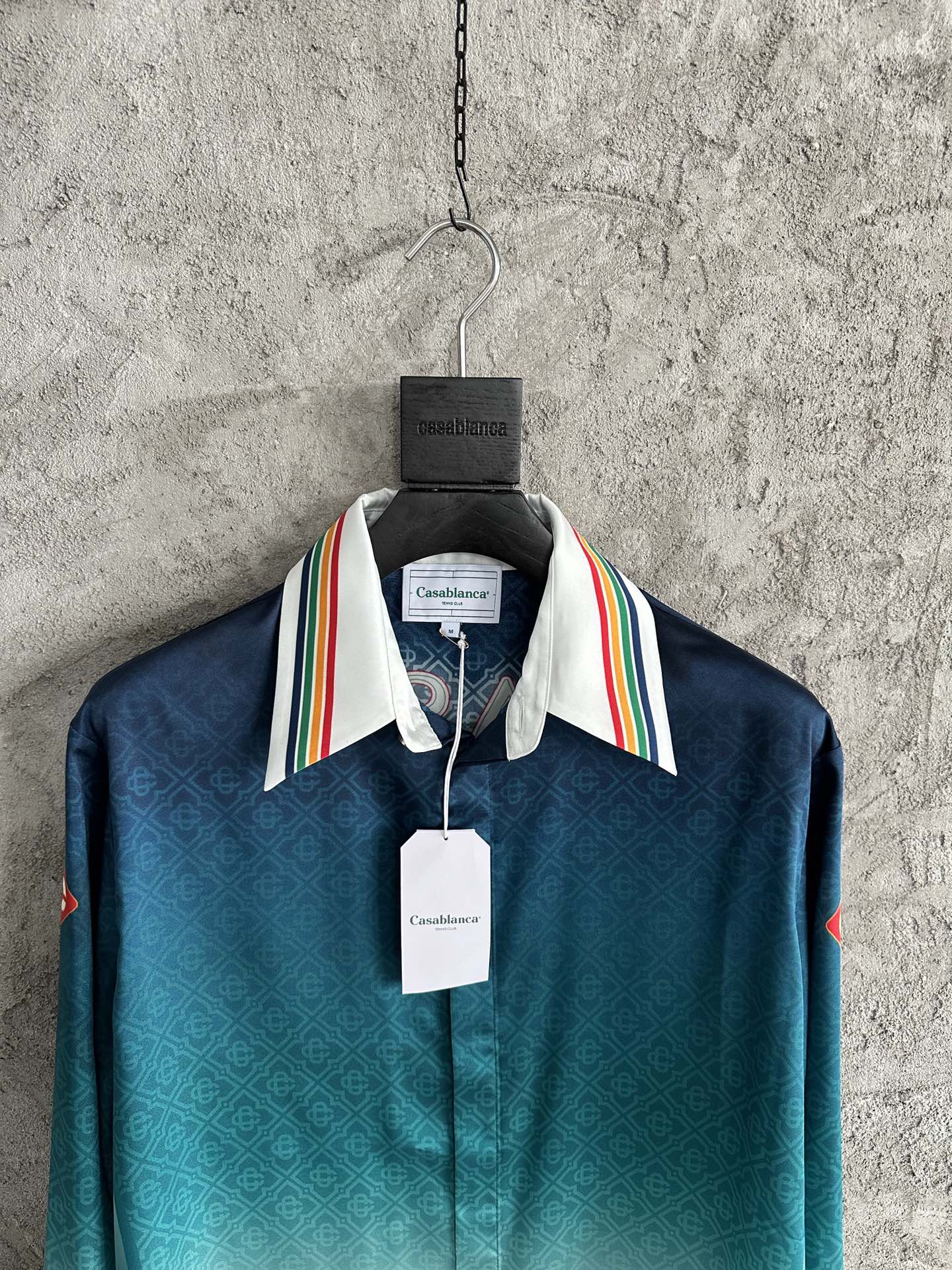 NIGO Casablanca Men's Summer Gradient Pattern Printed Lapel Loose Single Breasted Long Sleeve Shirt #nigo73424
