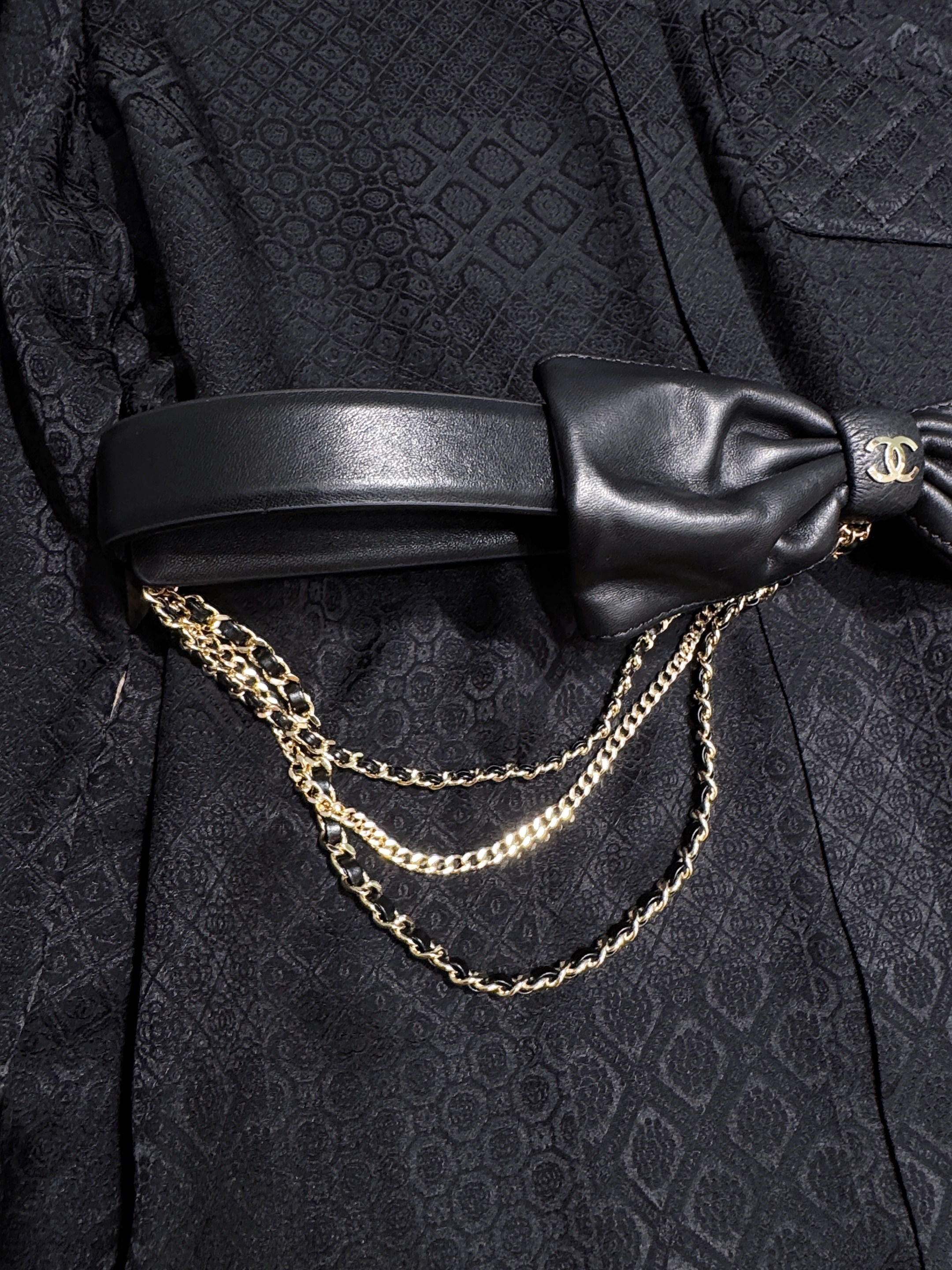 NIGO Chanel Women's Fashion Classic Solid Color Leather Bow Hand Woven Metal Chain Belt Accessories #nigo78923