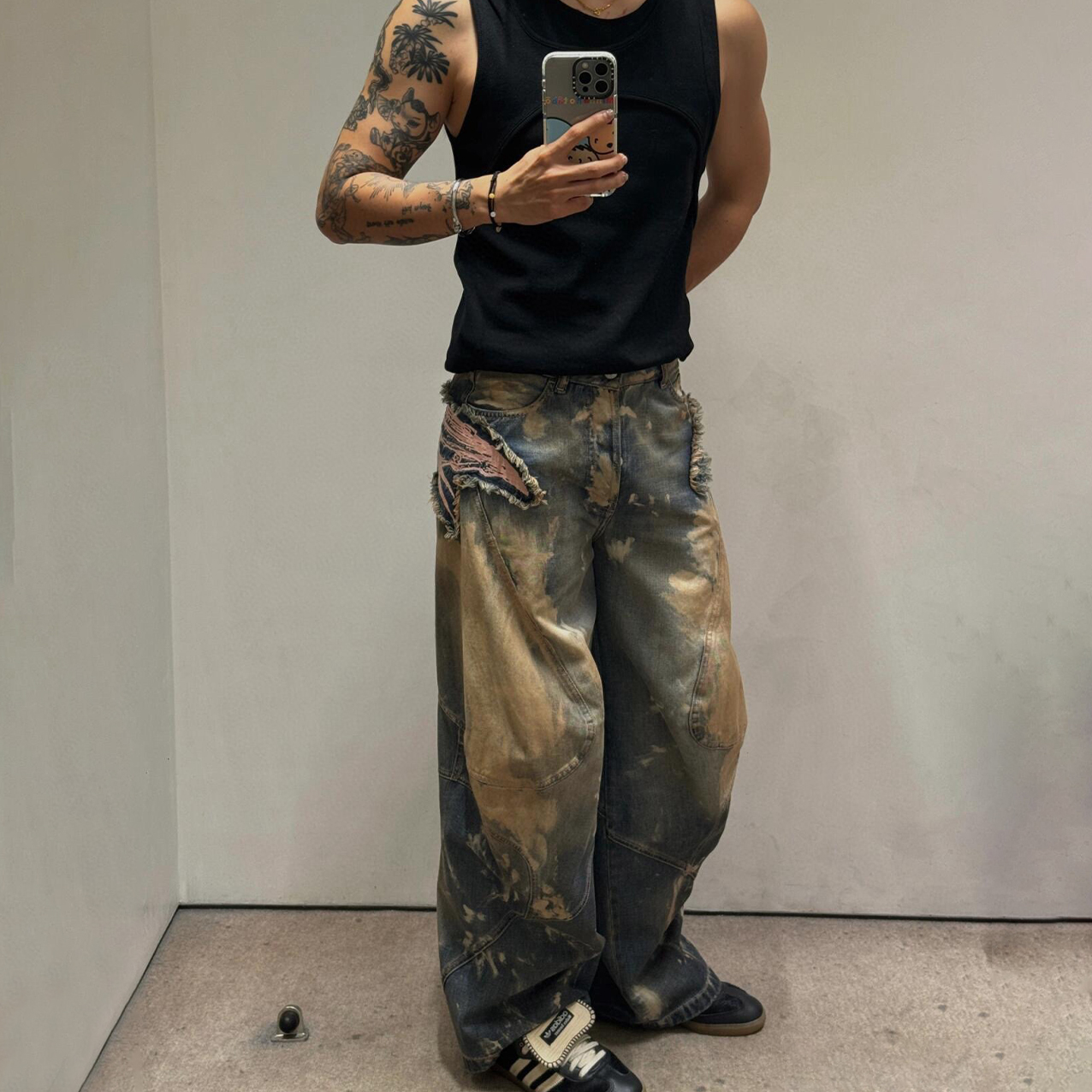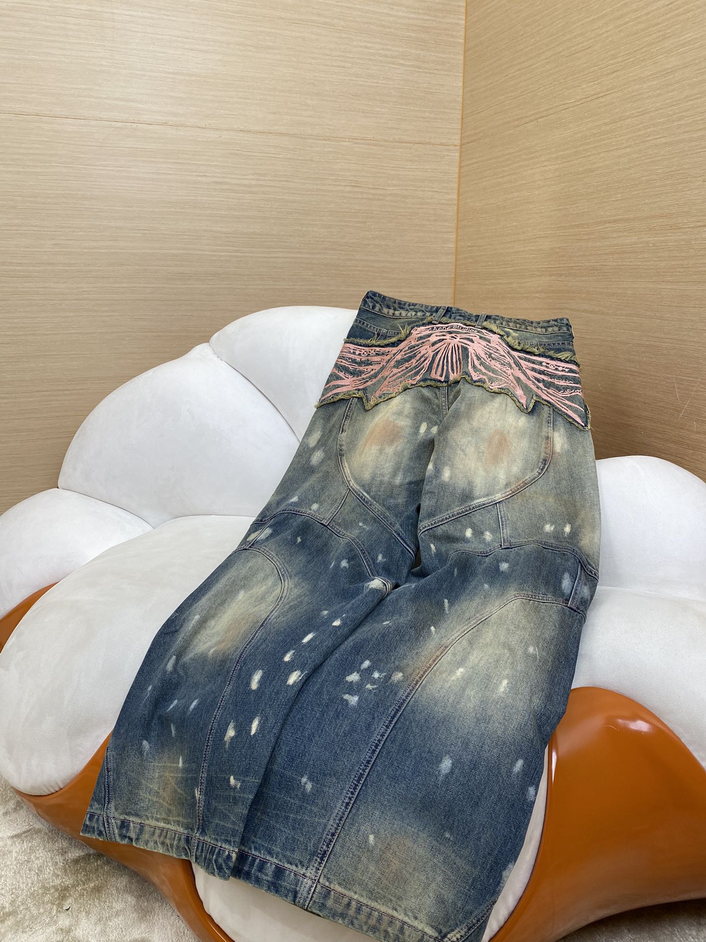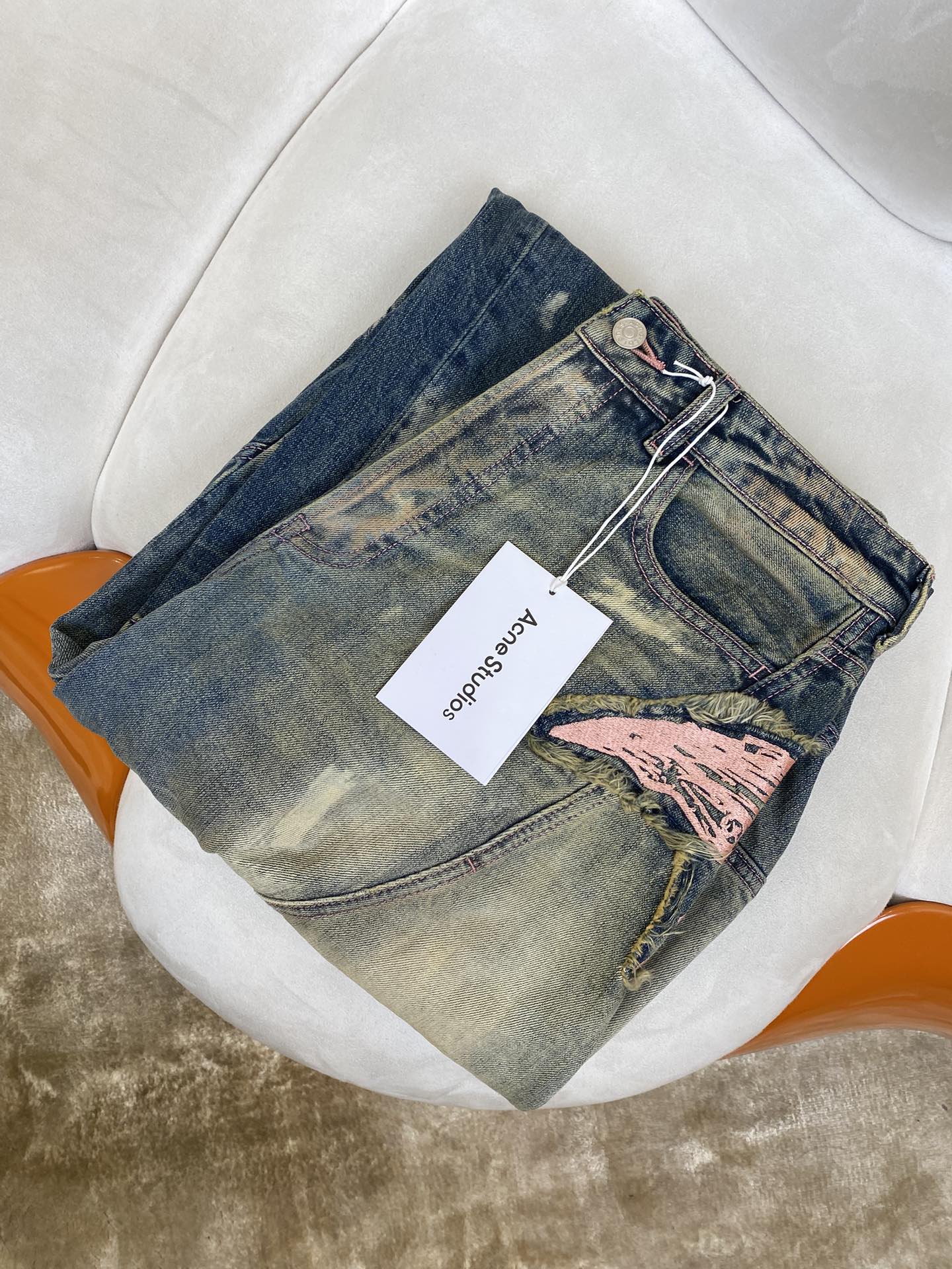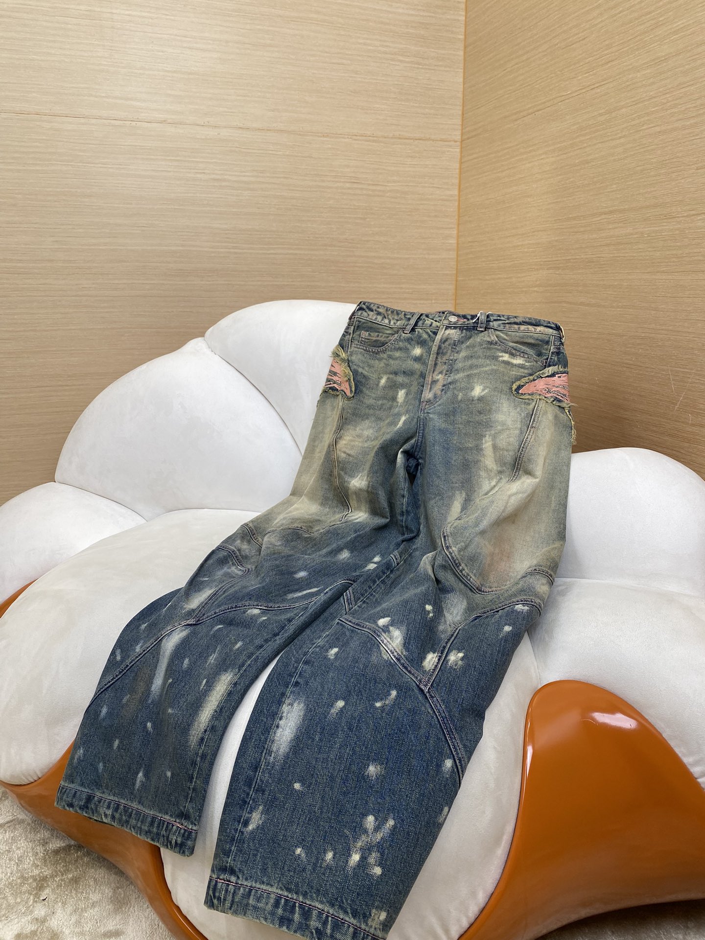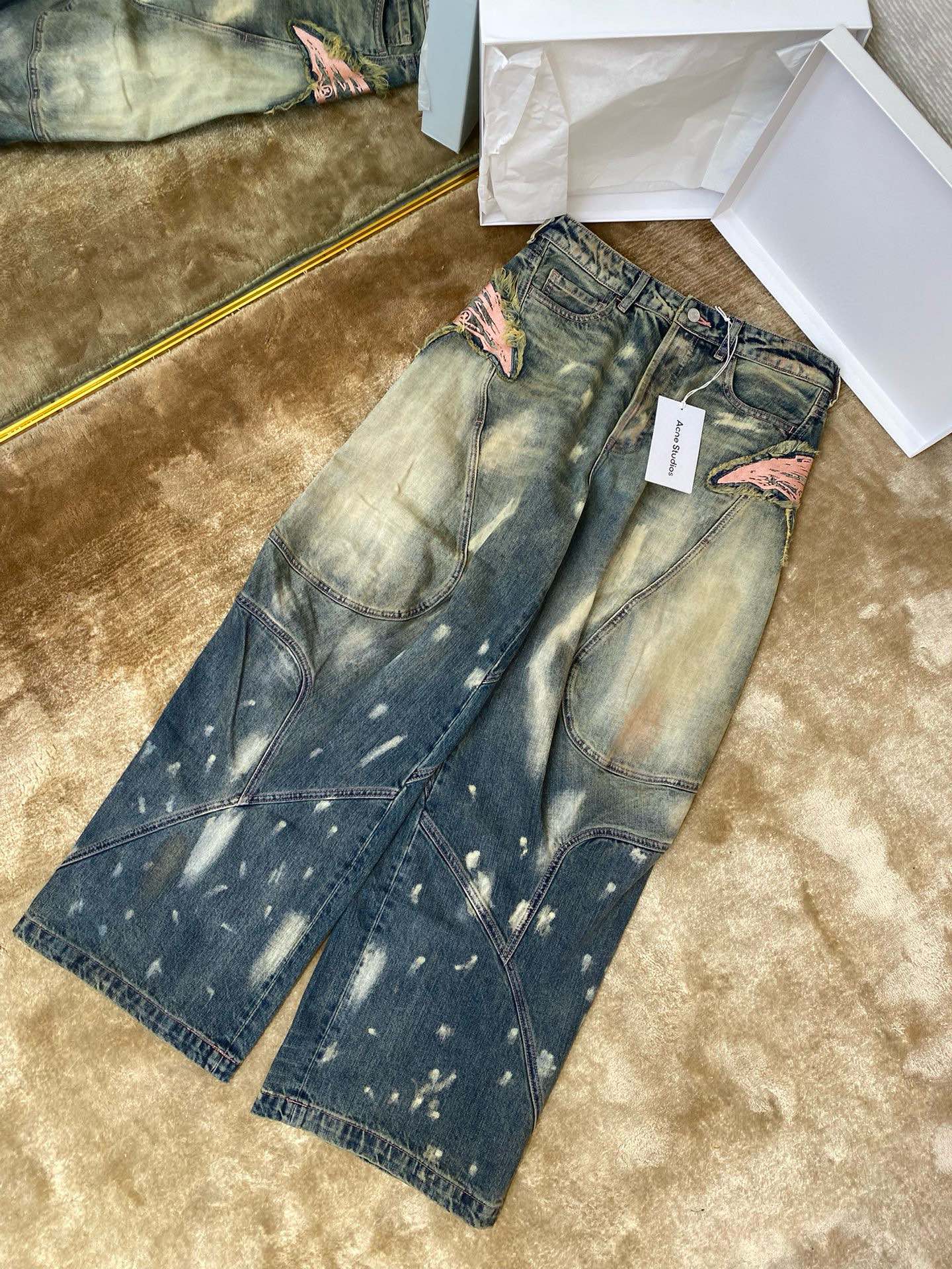 NIGO Acne Studios Men's Spring And Fall Logo Low Waist Cotton Loose Zipper Wide Leg Pants Casual Denim Pants Ngvp #nigo9748