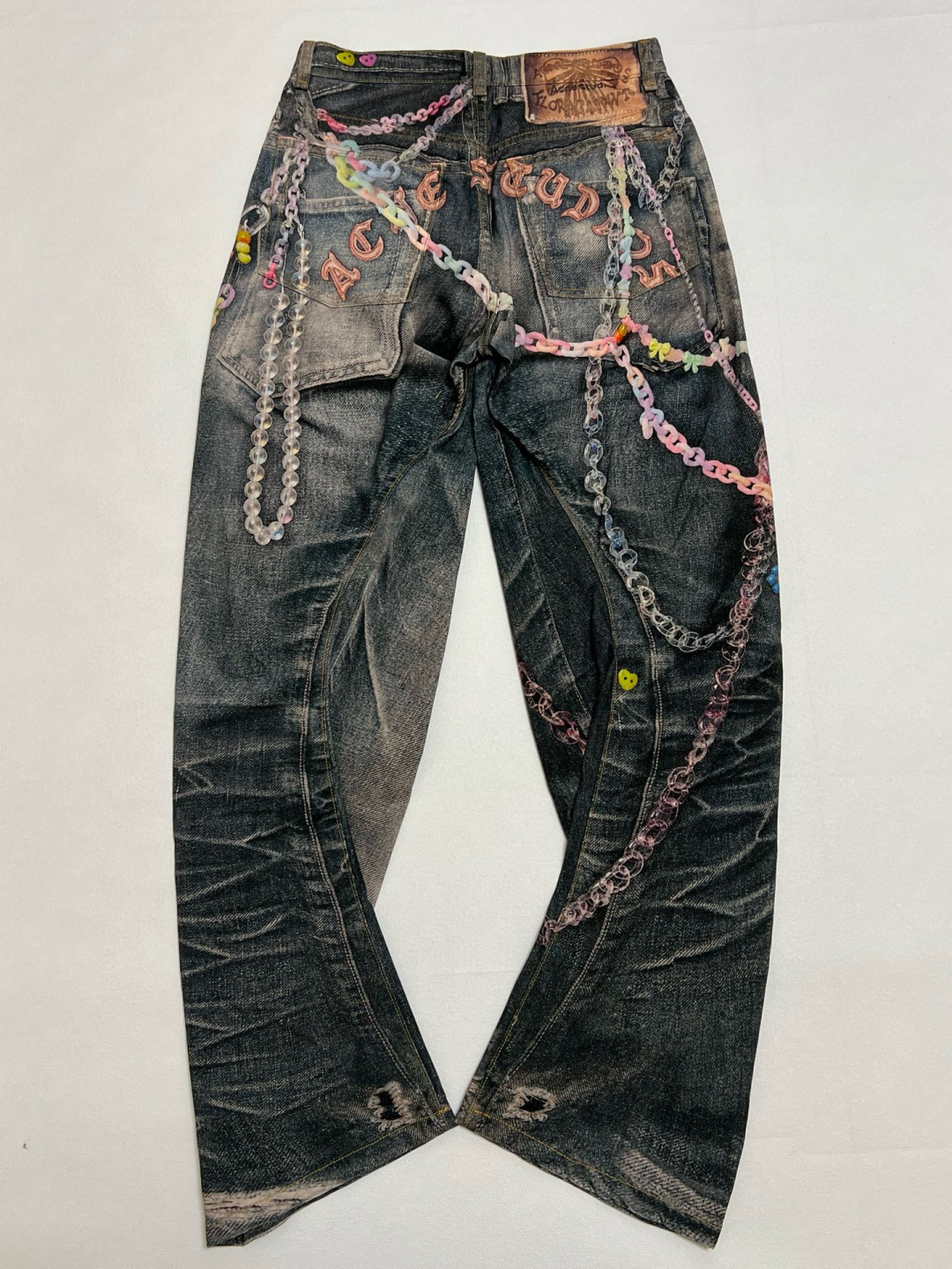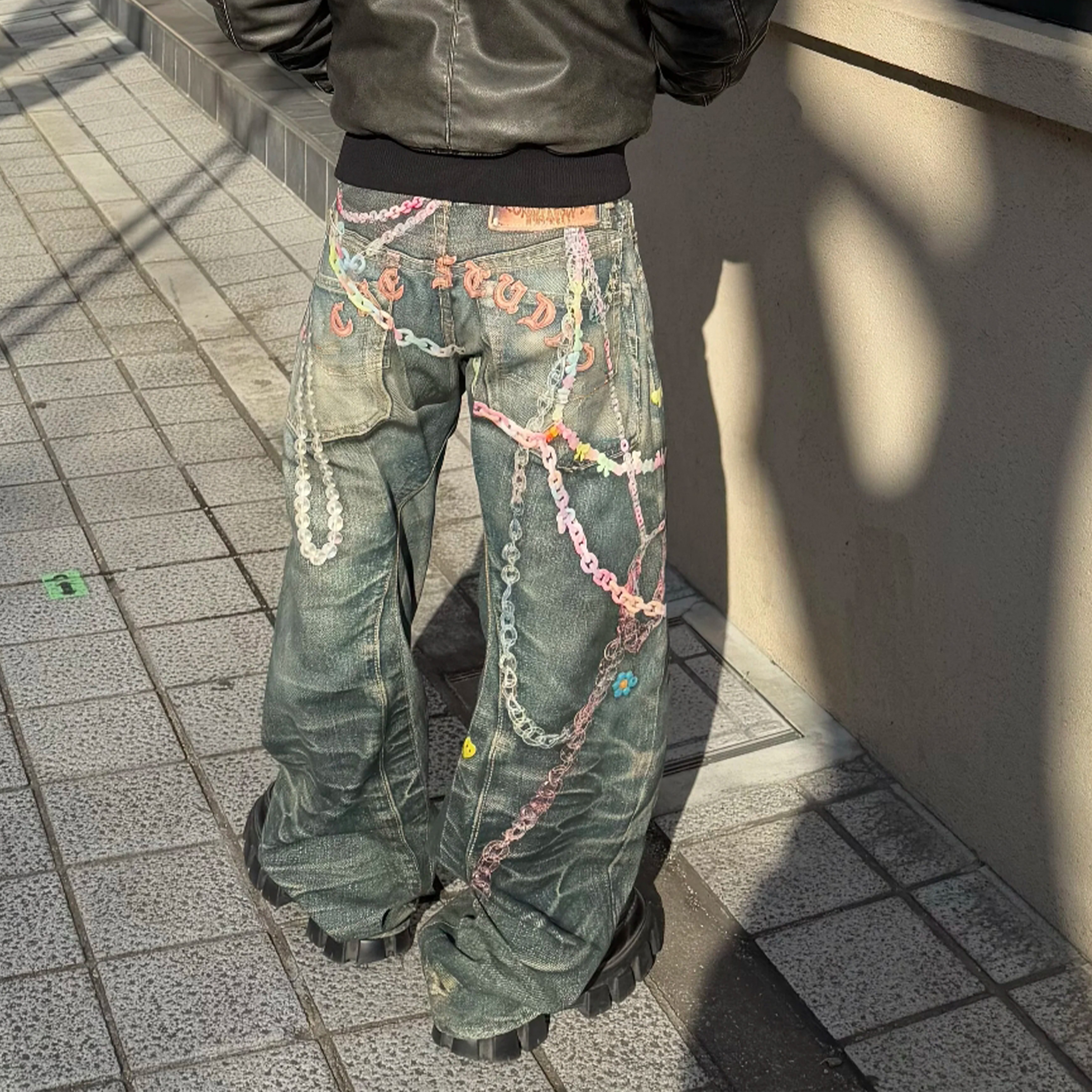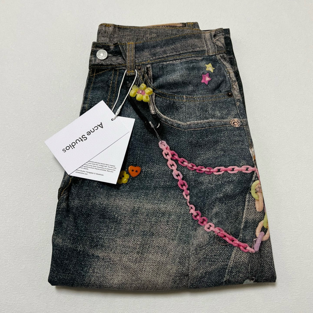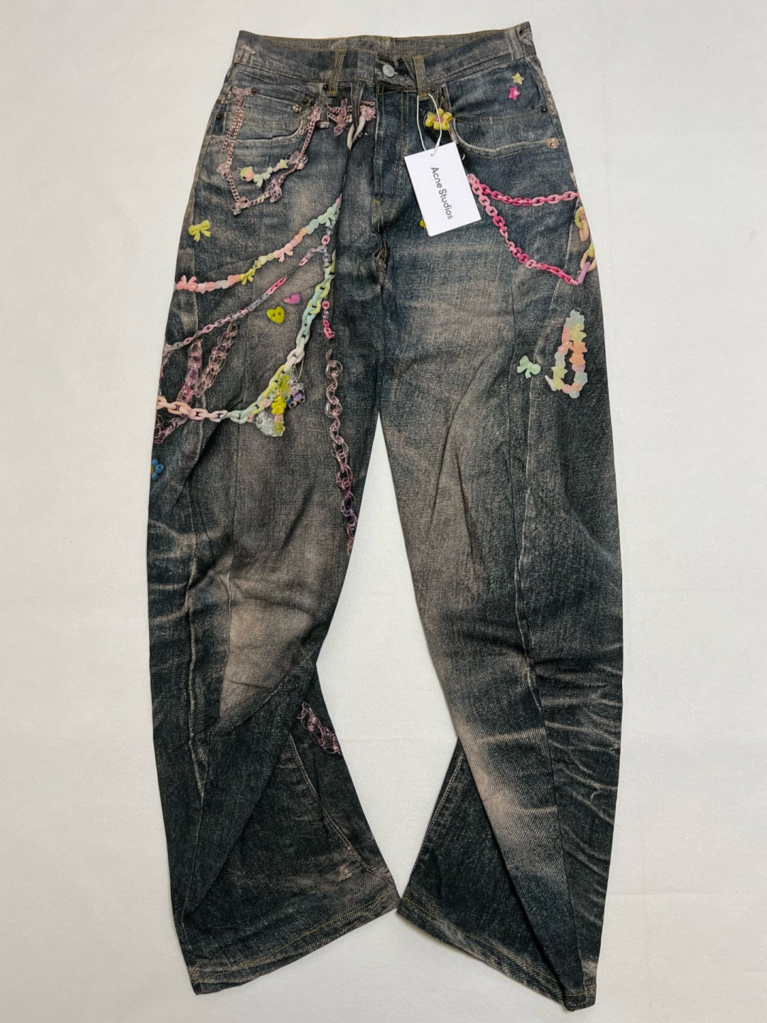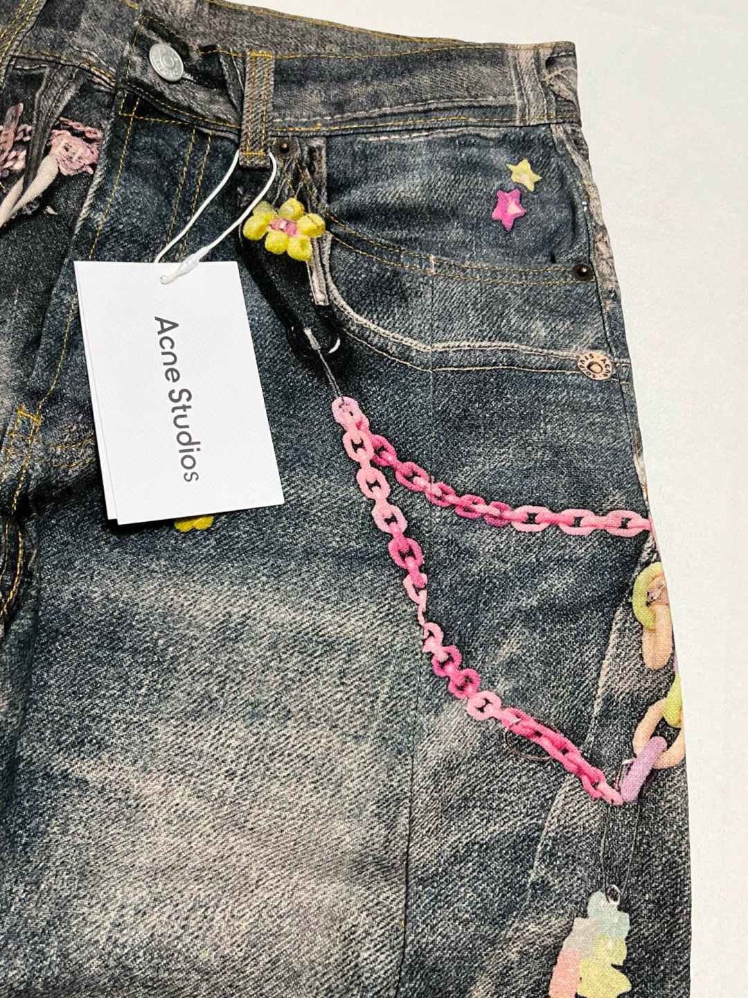 NIGO Acne Studios Men'S Women'S Four Seasons 3d Print Chain Print Loose Fit Jeans Fashion High Street Machete Pants Jeans Ngvp #nigo1343