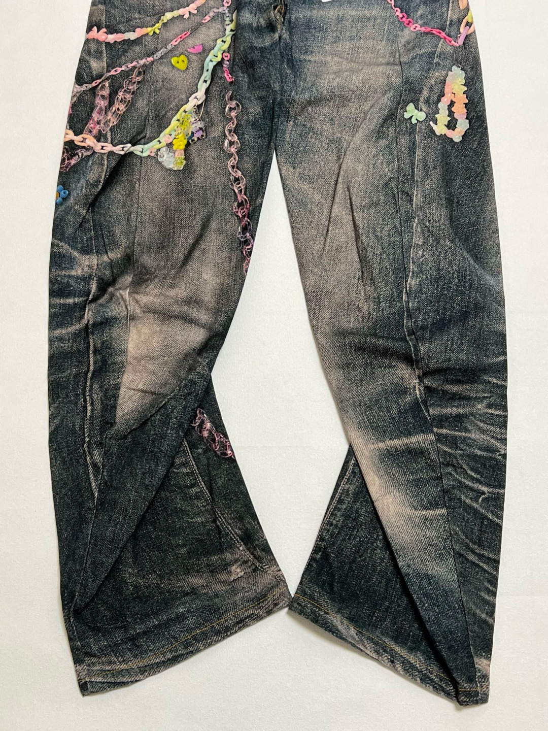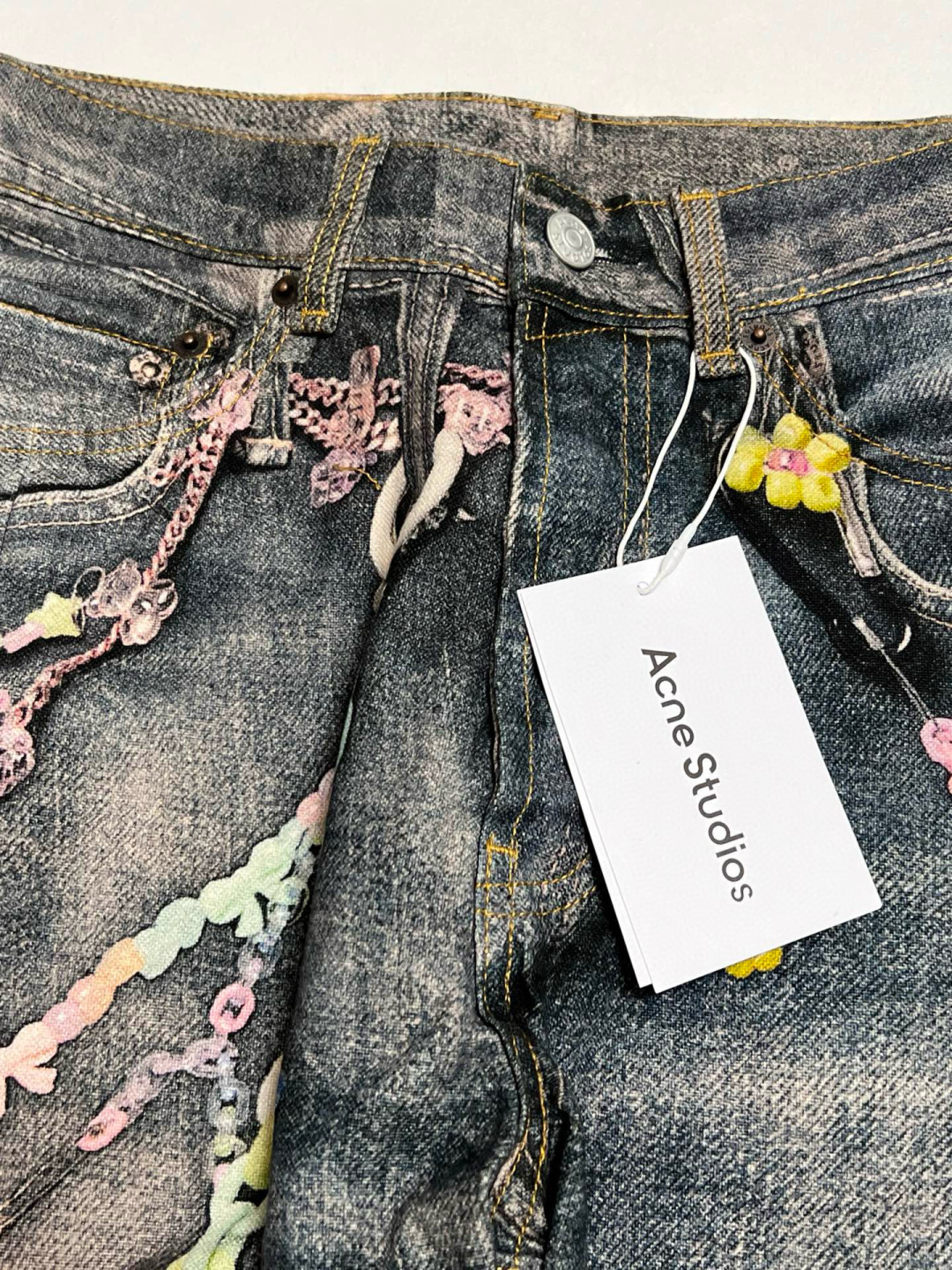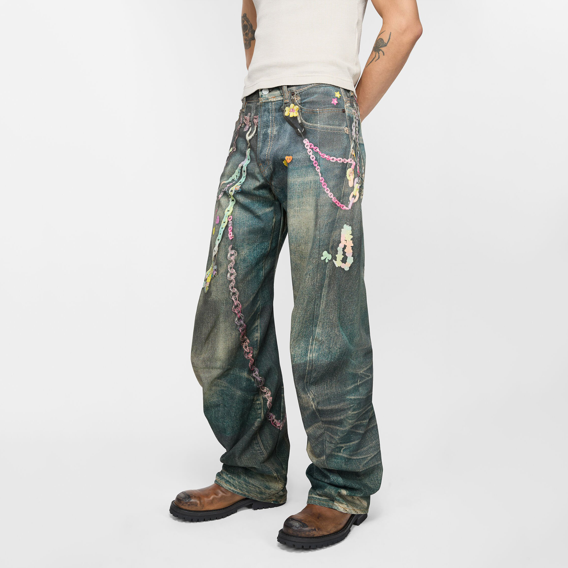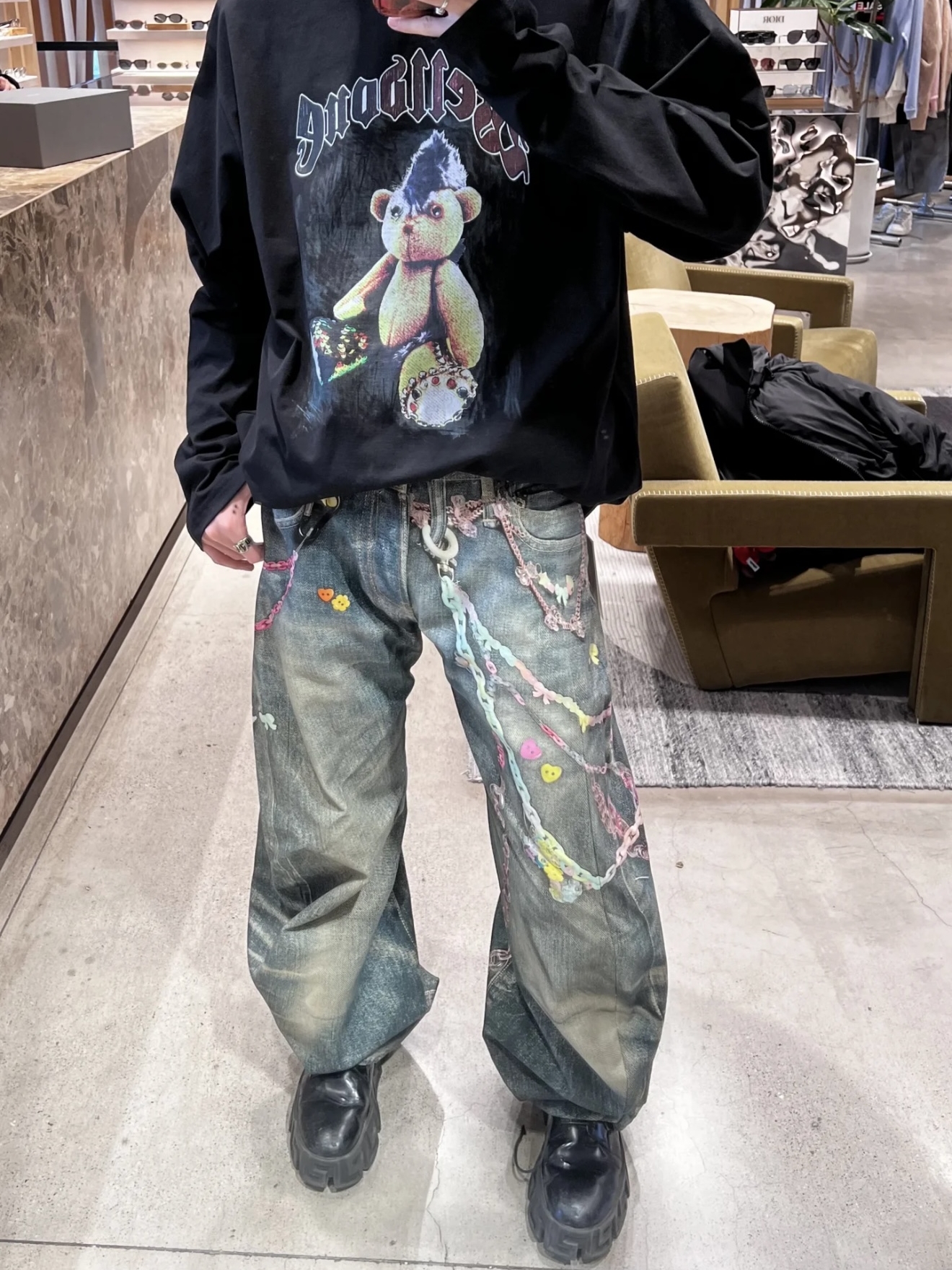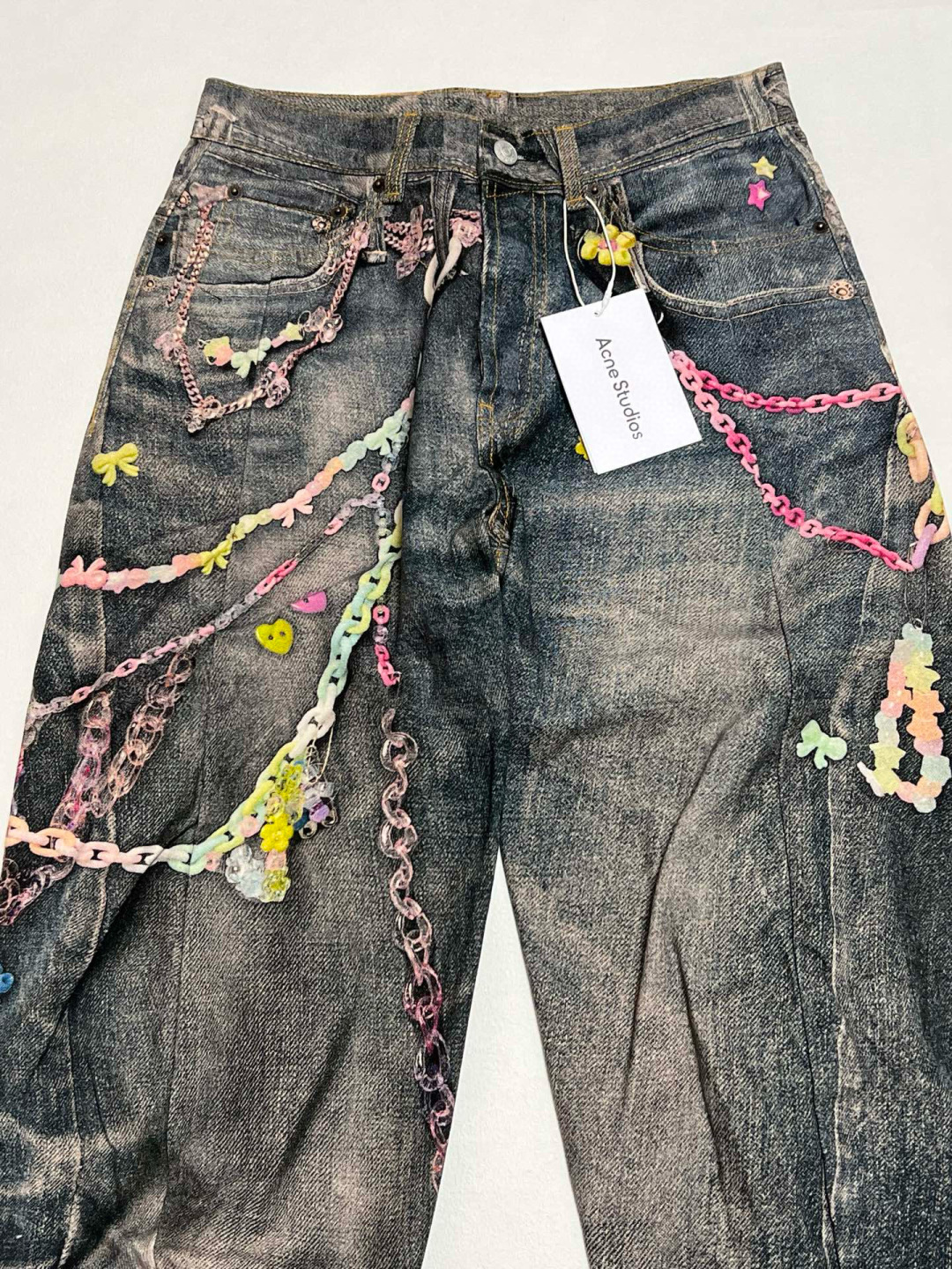 NIGO Acne Studios Men'S Women'S Four Seasons 3d Print Chain Print Loose Fit Jeans Fashion High Street Machete Pants Jeans Ngvp #nigo1343