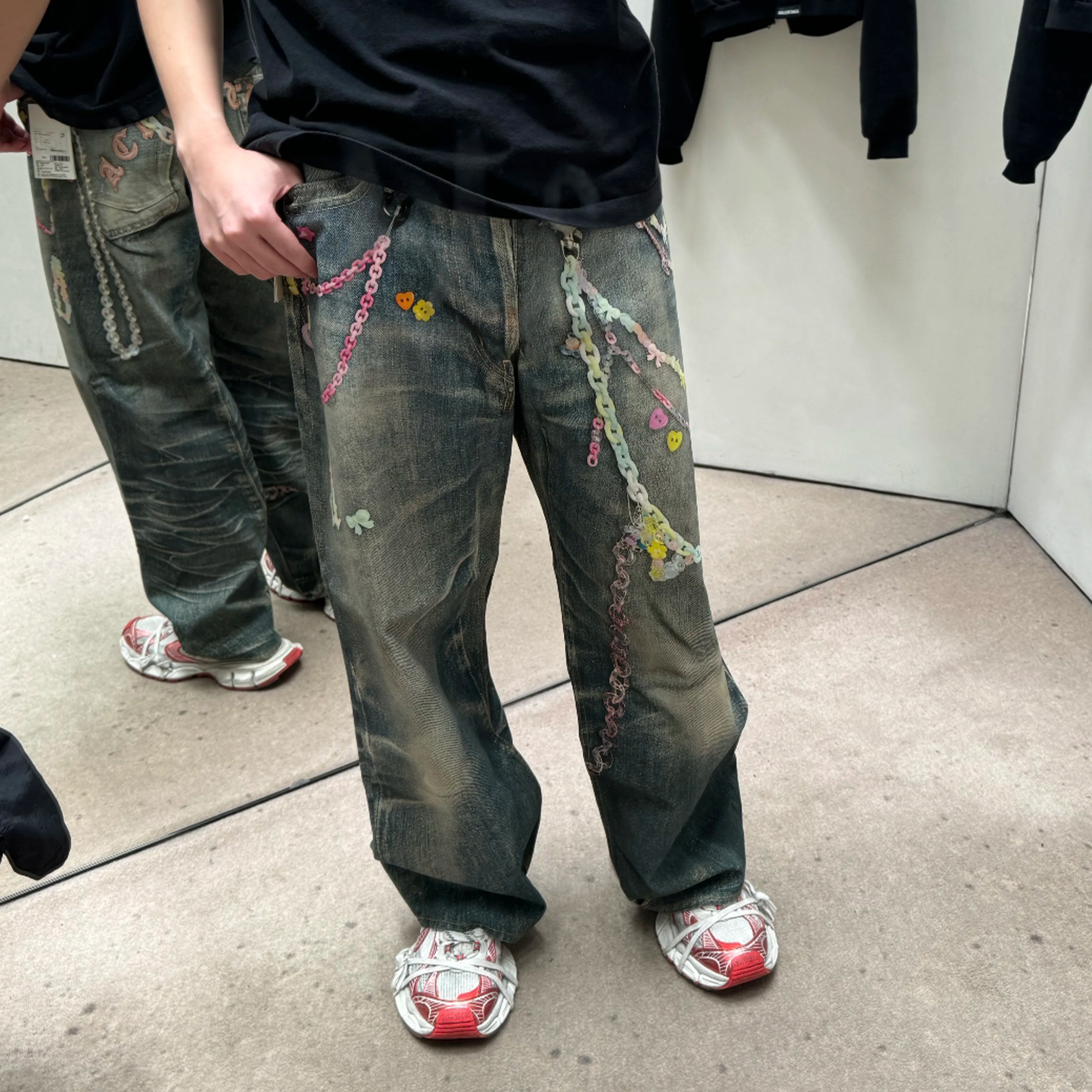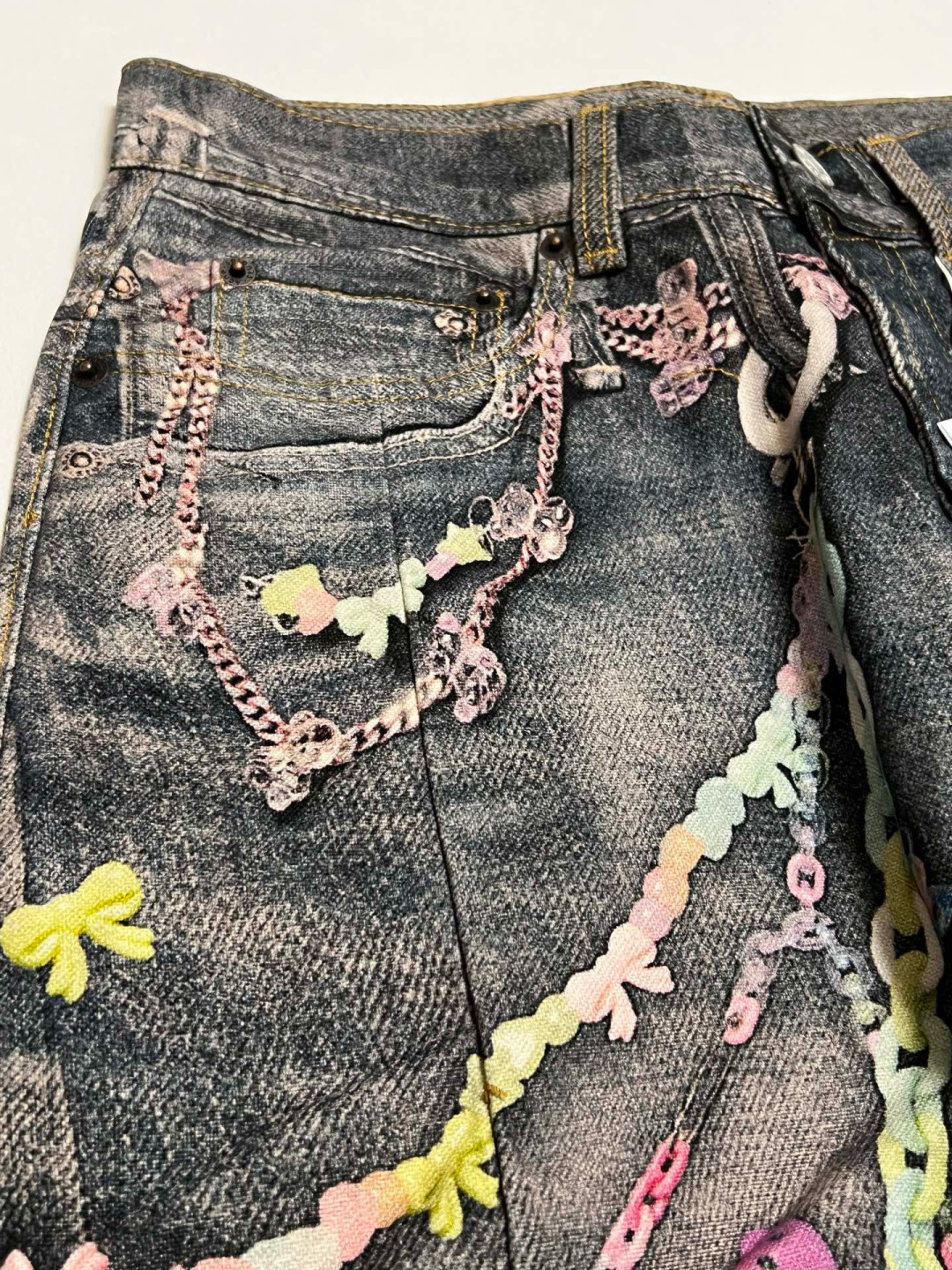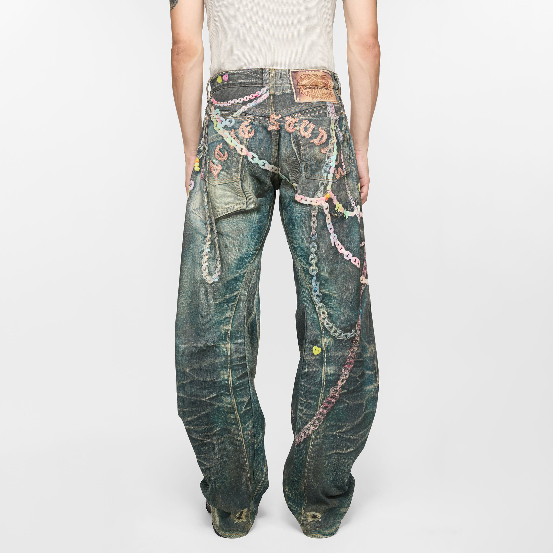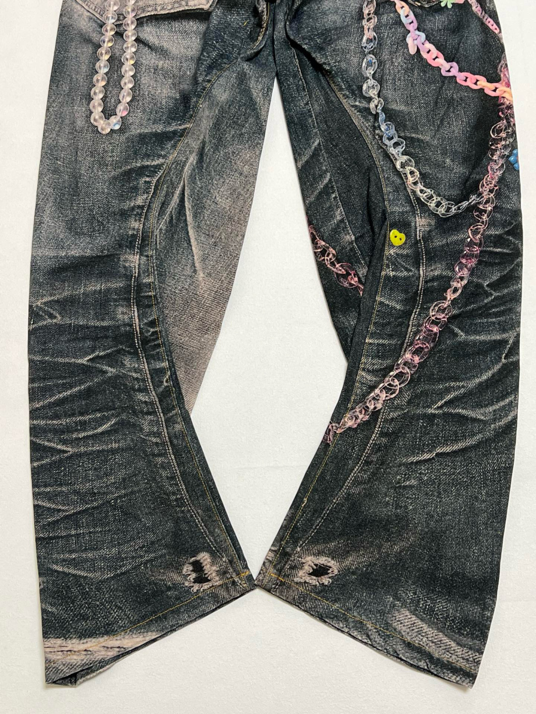 NIGO Acne Studios Men'S Women'S Four Seasons 3d Print Chain Print Loose Fit Jeans Fashion High Street Machete Pants Jeans Ngvp #nigo1343