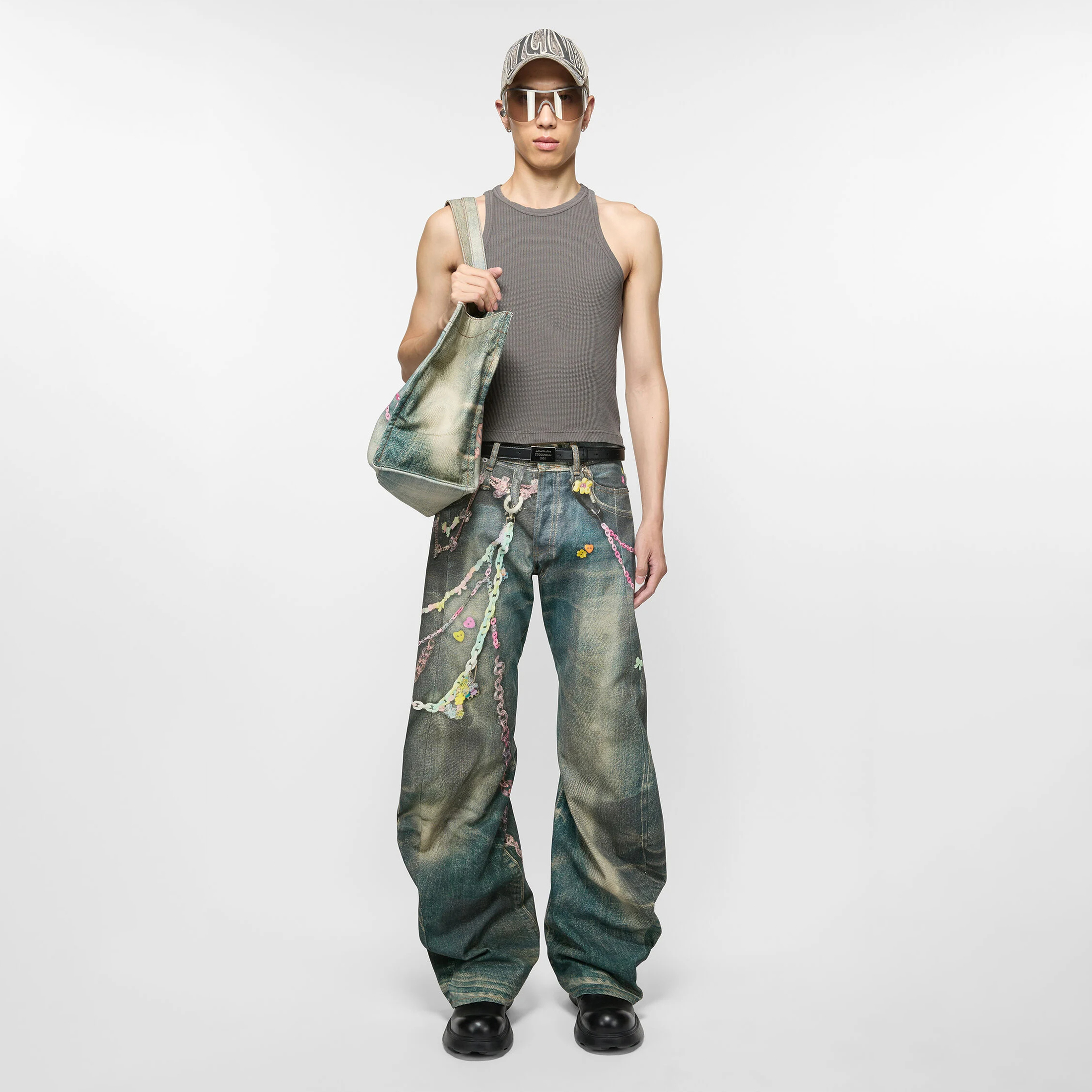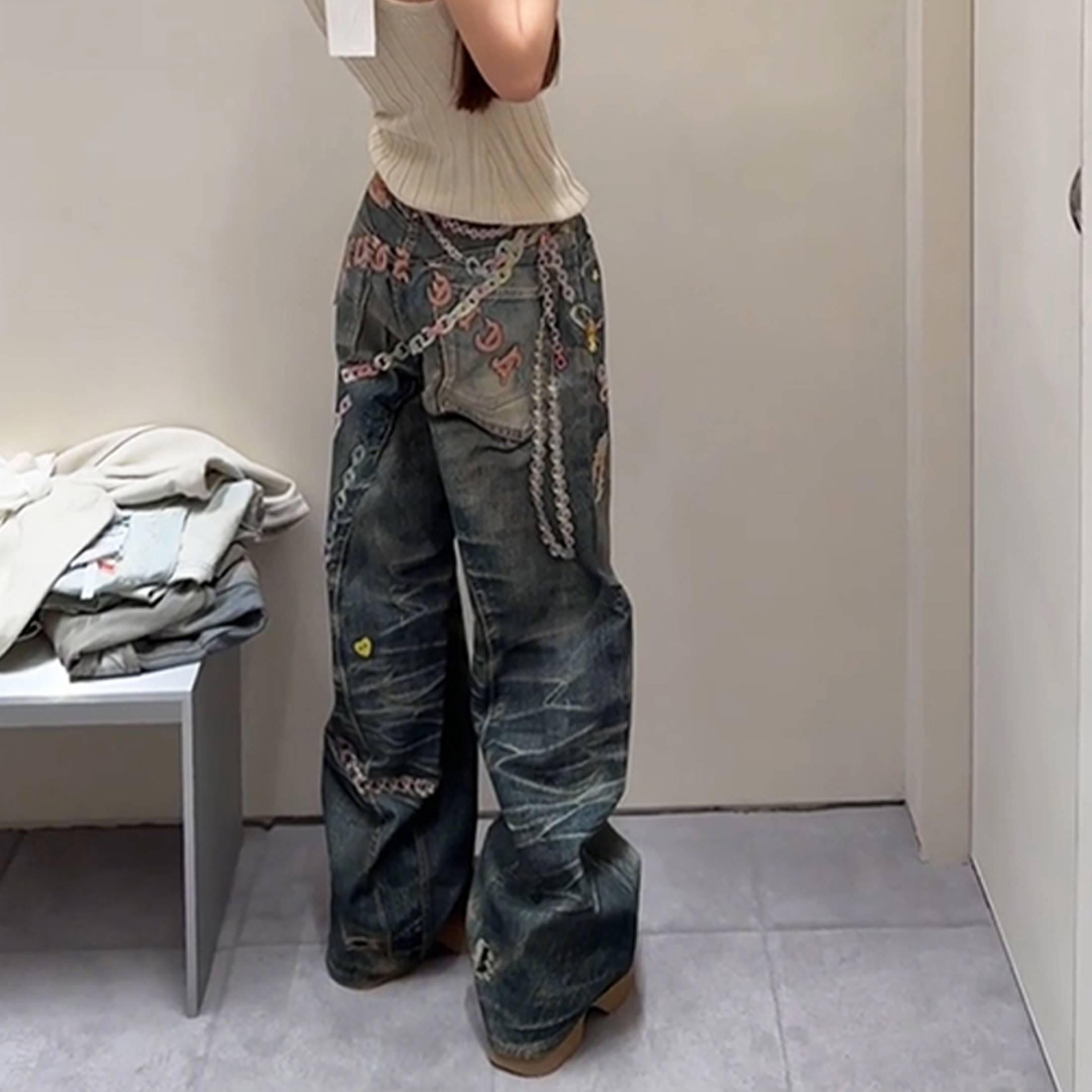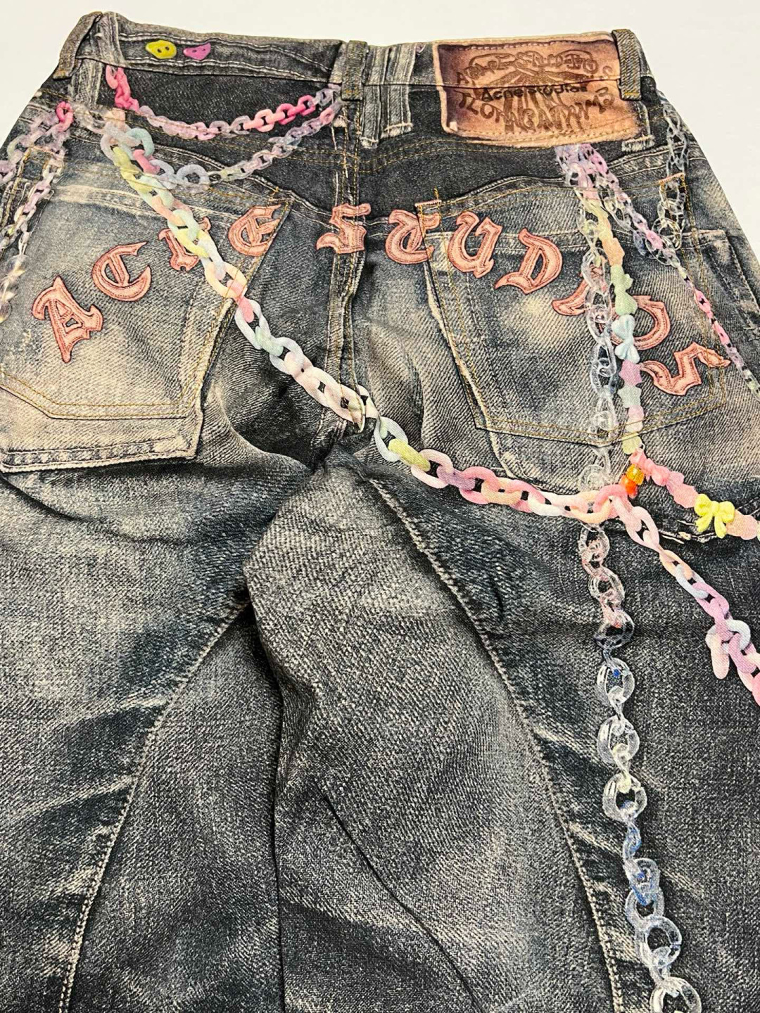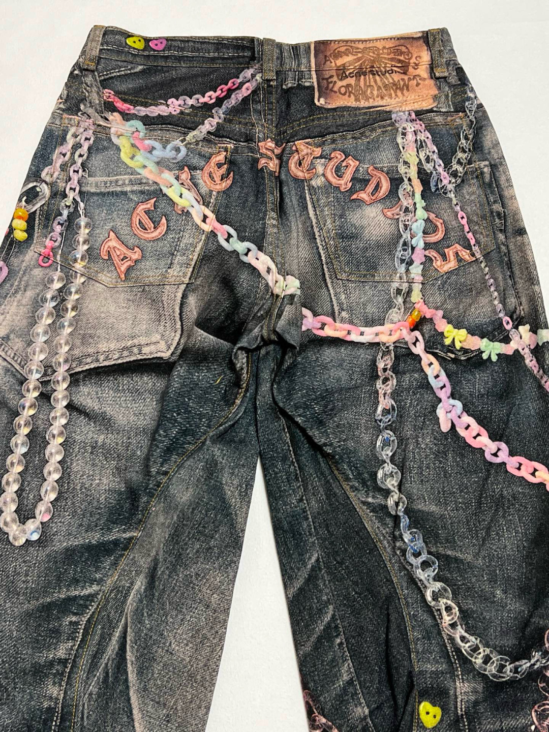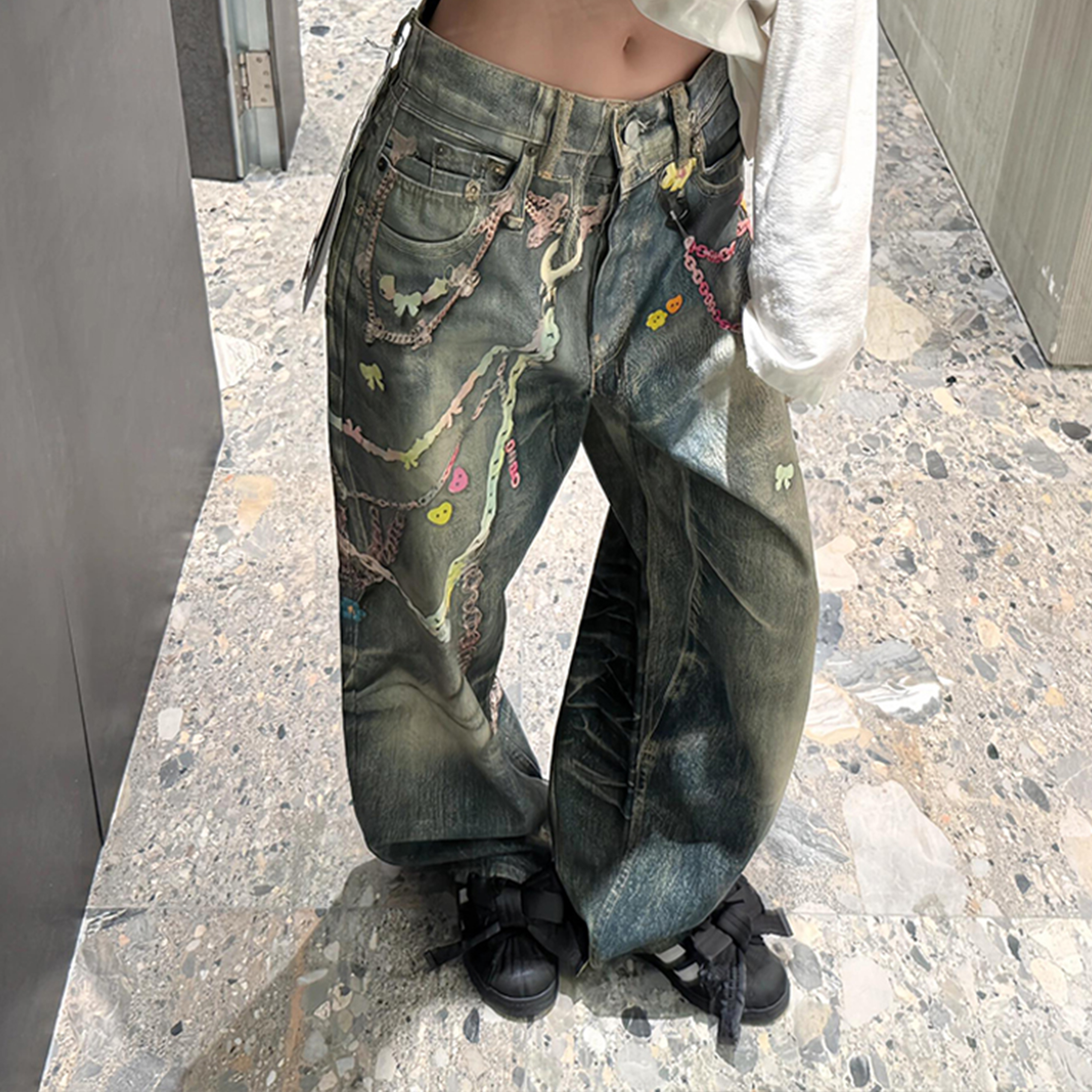 NIGO Acne Studios Men'S Women'S Four Seasons 3d Print Chain Print Loose Fit Jeans Fashion High Street Machete Pants Jeans Ngvp #nigo1343