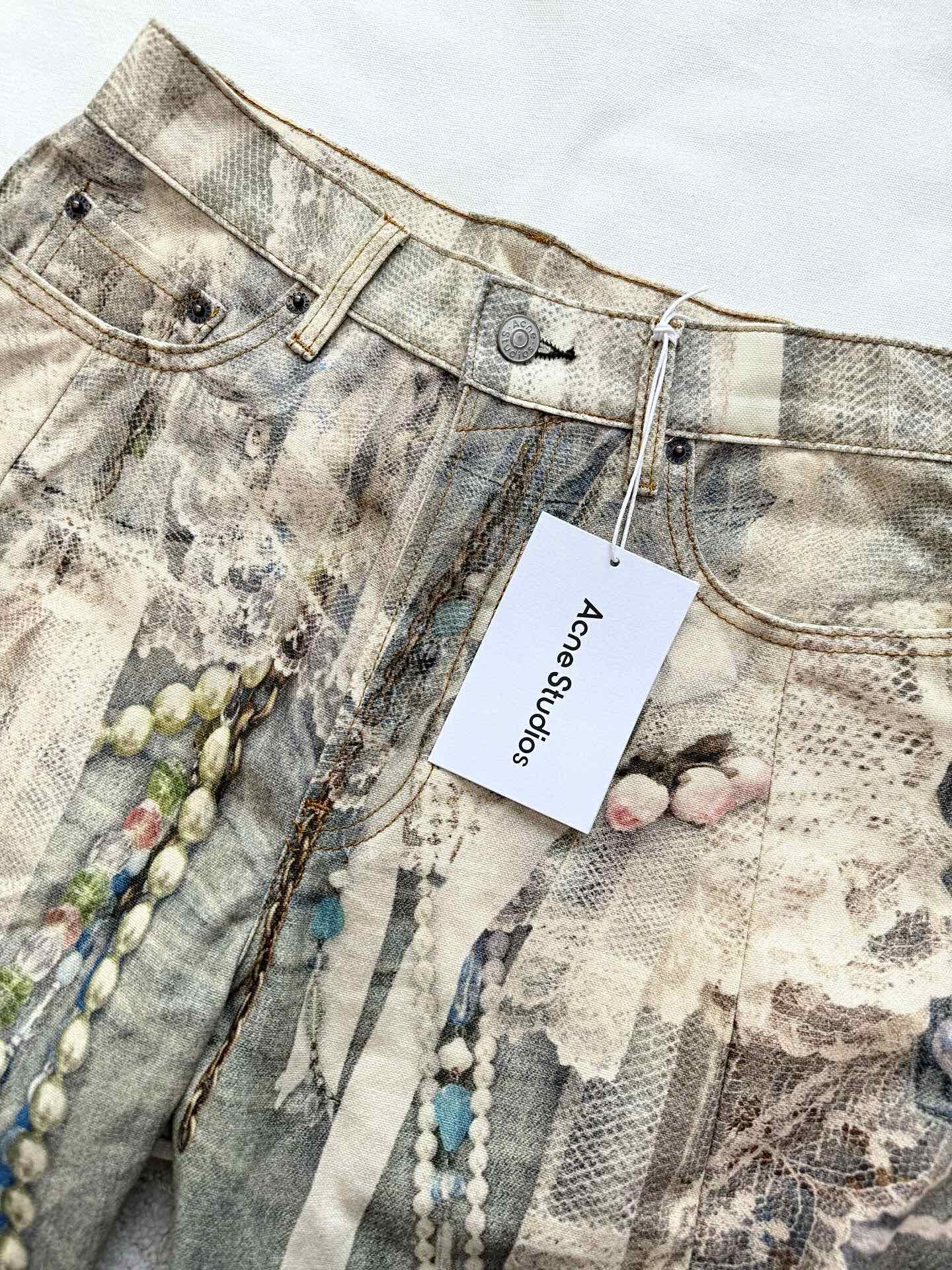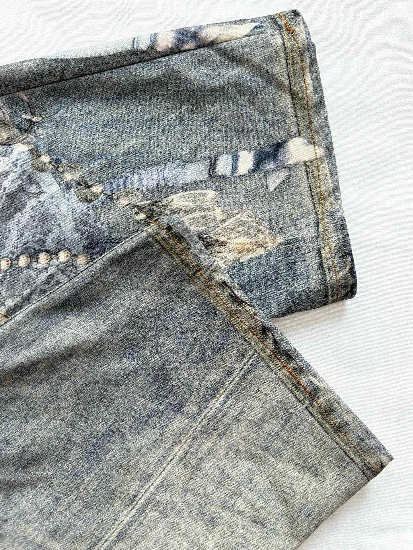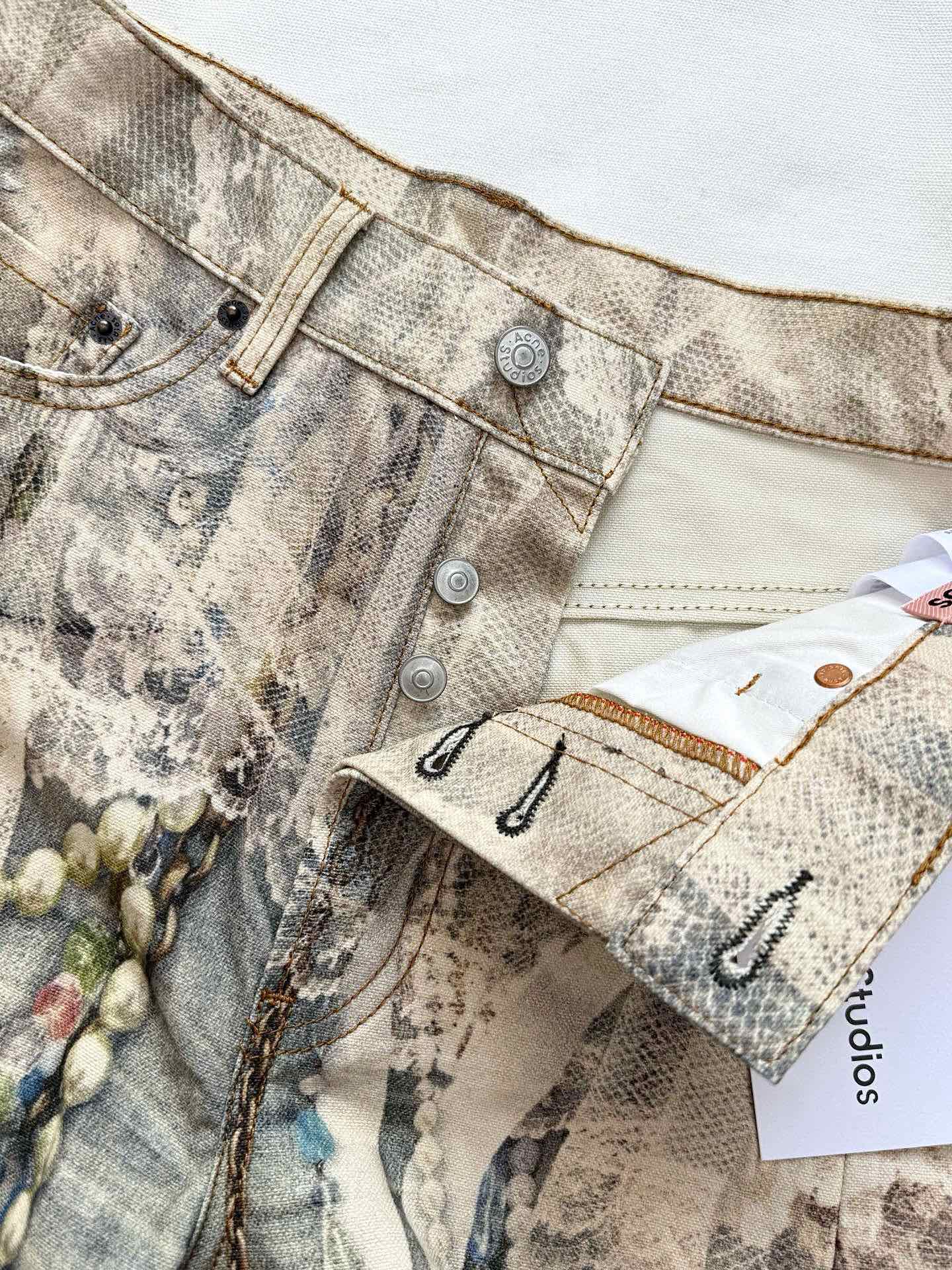 NIGO Acne Studios Men's & Women's Lace Pearl Chain 3D Print Four-Season Relaxed Mid-Rise Straight-Leg Curved Hem Denim Pants #nigo81549