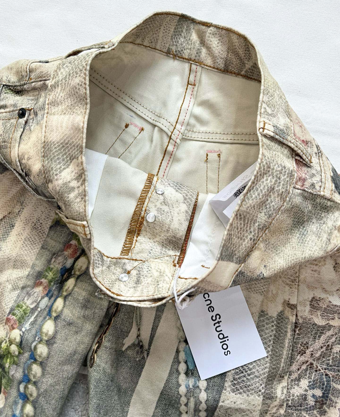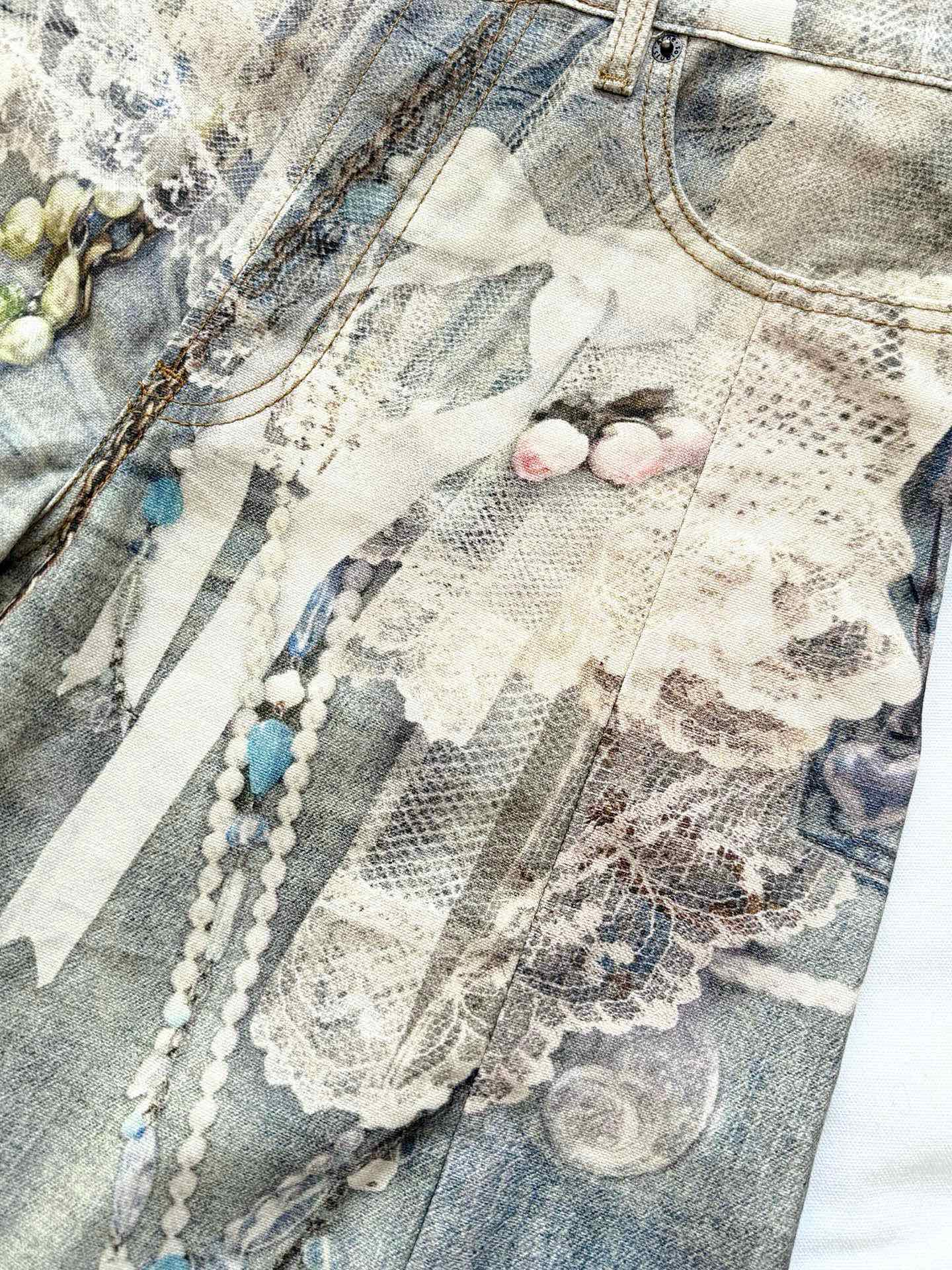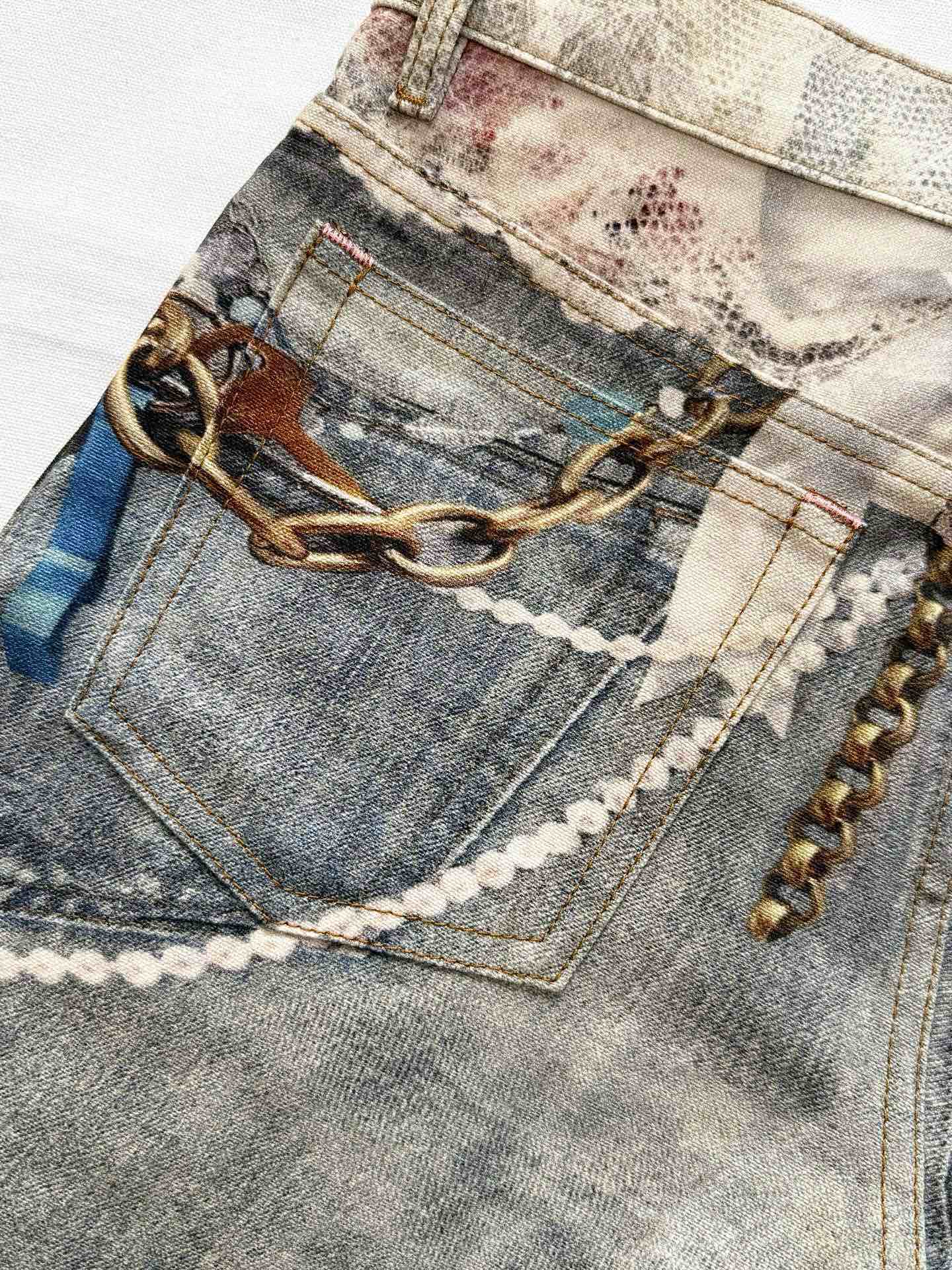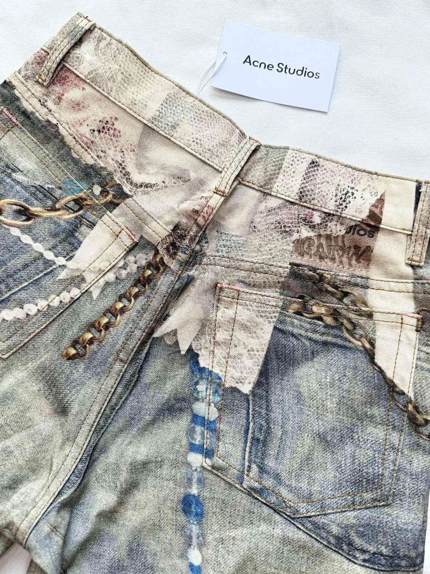 NIGO Acne Studios Men's & Women's Lace Pearl Chain 3D Print Four-Season Relaxed Mid-Rise Straight-Leg Curved Hem Denim Pants #nigo81549