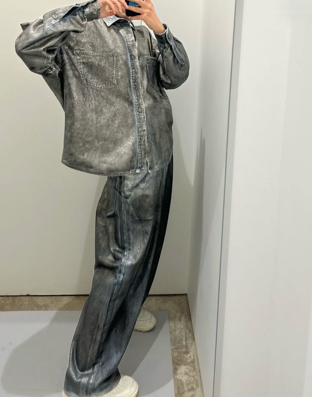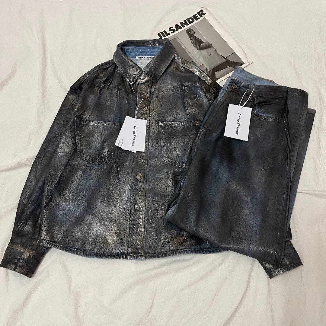 NIGO Acne Studios Men's Women's Spring And Autumn Loose Denim Long Sleeve Lapel Cotton Shirt Casual Straight Denim Pants Ngvp #nigo9387