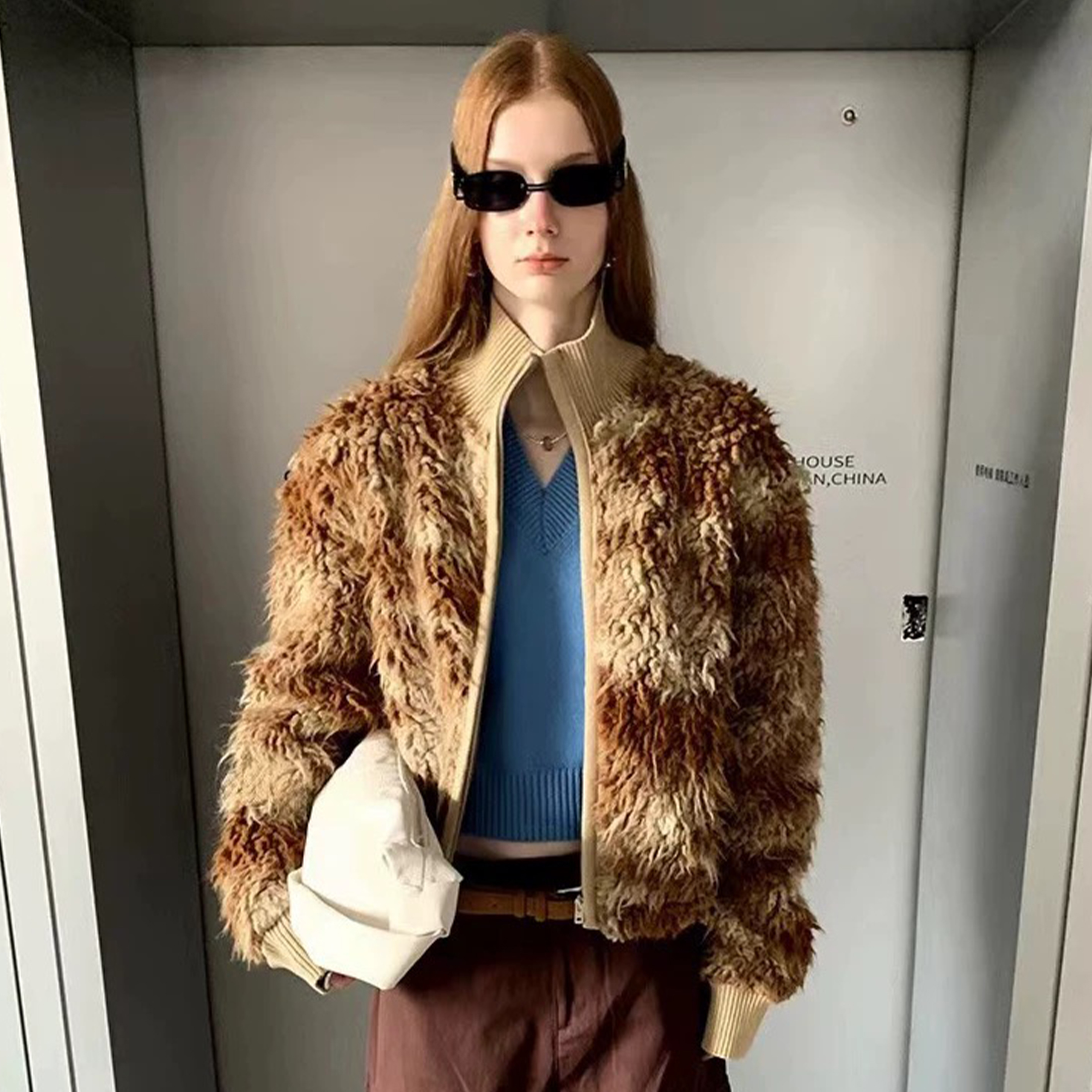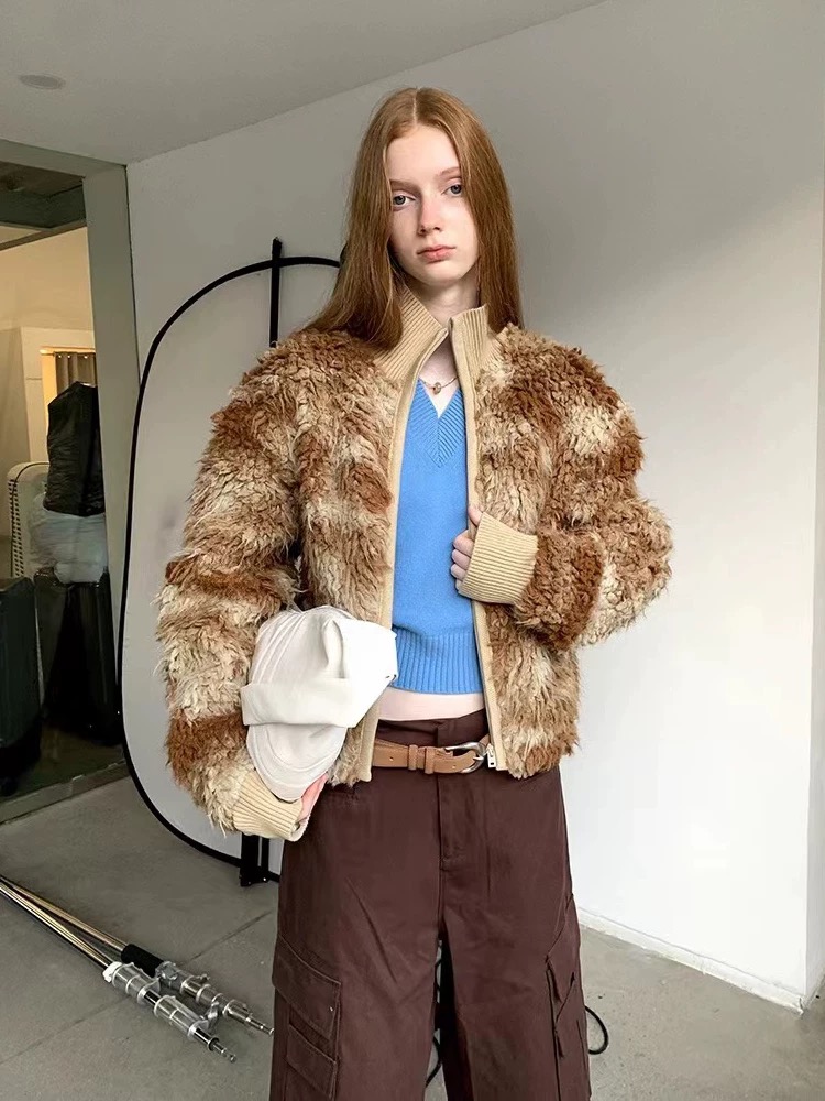 NIGO Acne Studios Women's Fall and Winter High Neck Plush Pilot Jacket Coat Halo Plush Zipper Jacket Ngvp #nigo6741