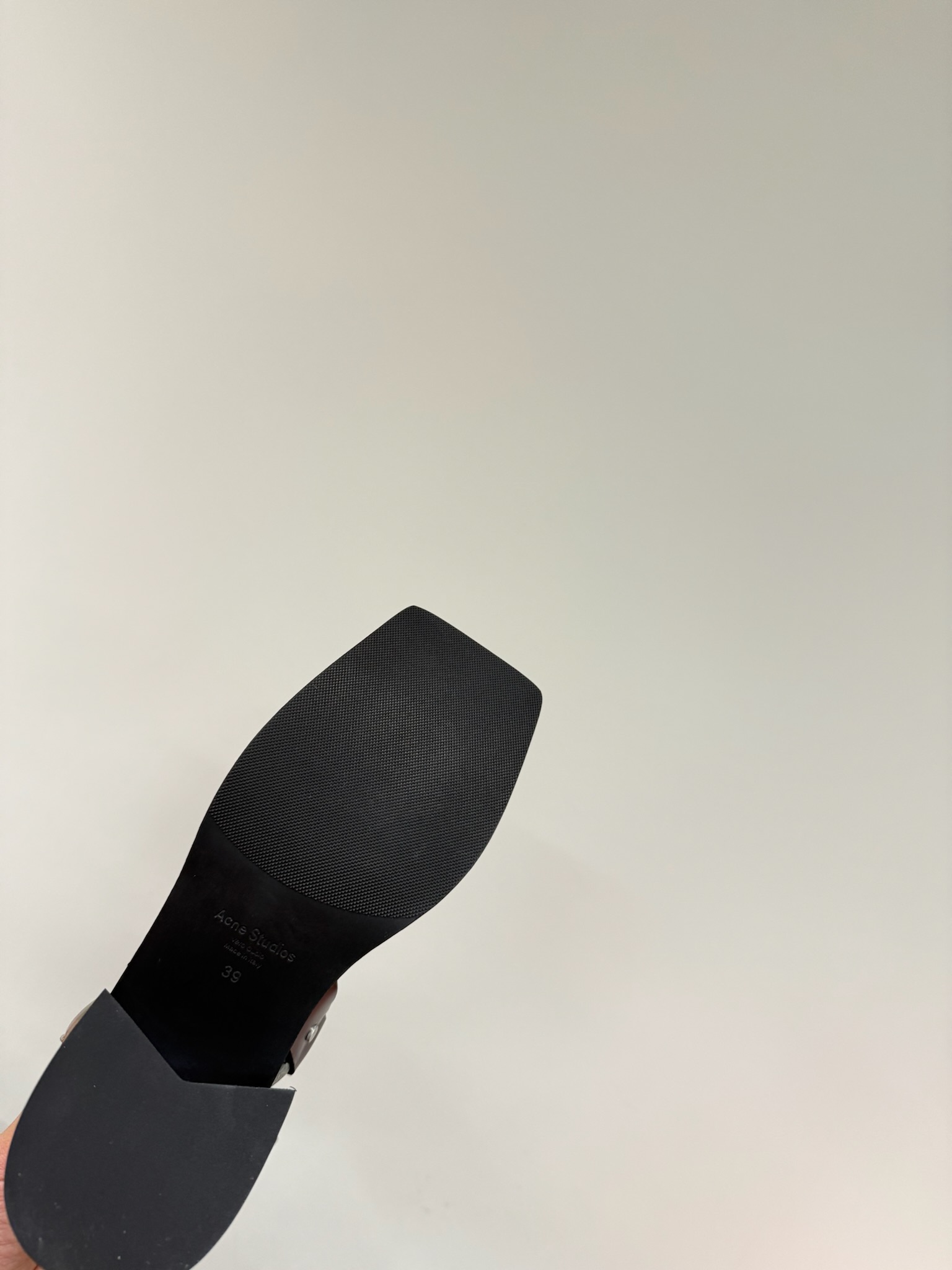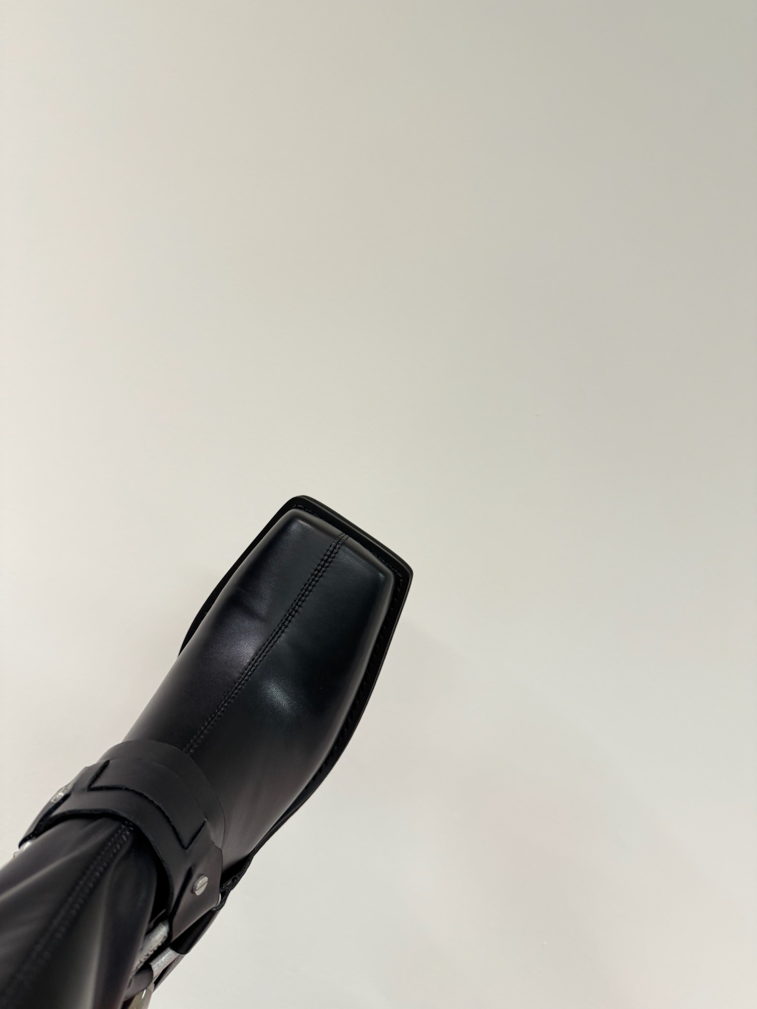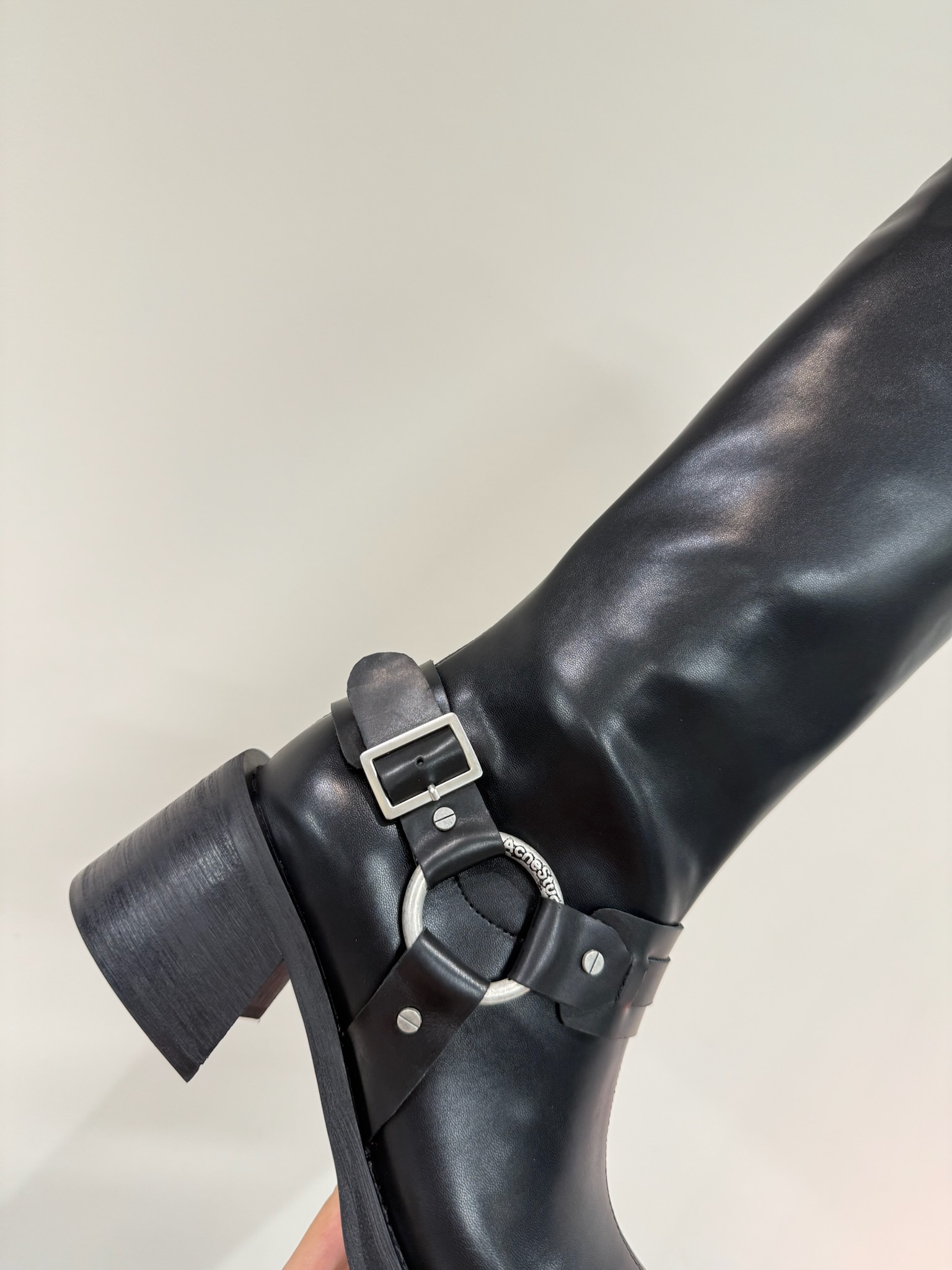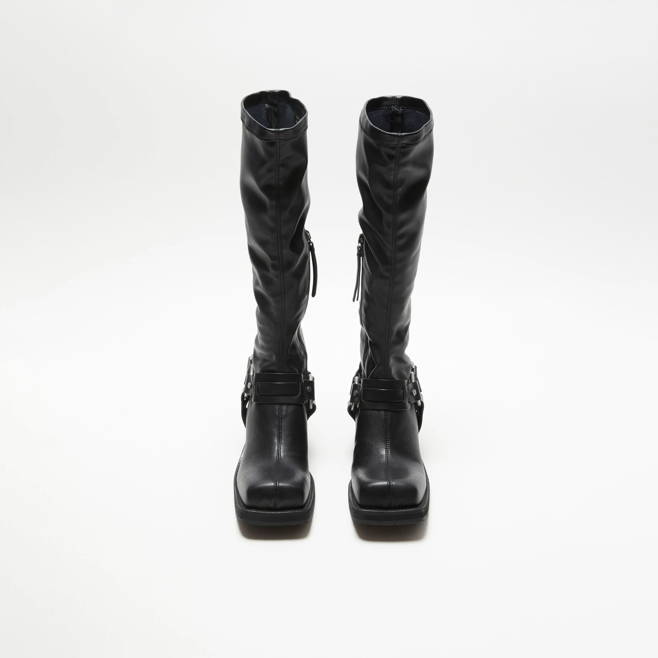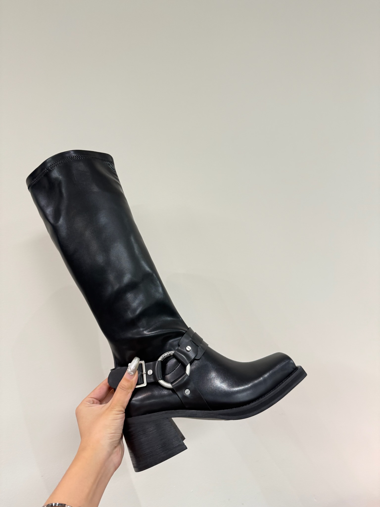 NIGO Acne Studios Women's Square Head Round Buckle Biker Boots Shoes Cowhide High Heel Elastic New Thick Heel Thick Bottom Knight Boots Long Tube Skinny Boots Ngvp #nigo9856