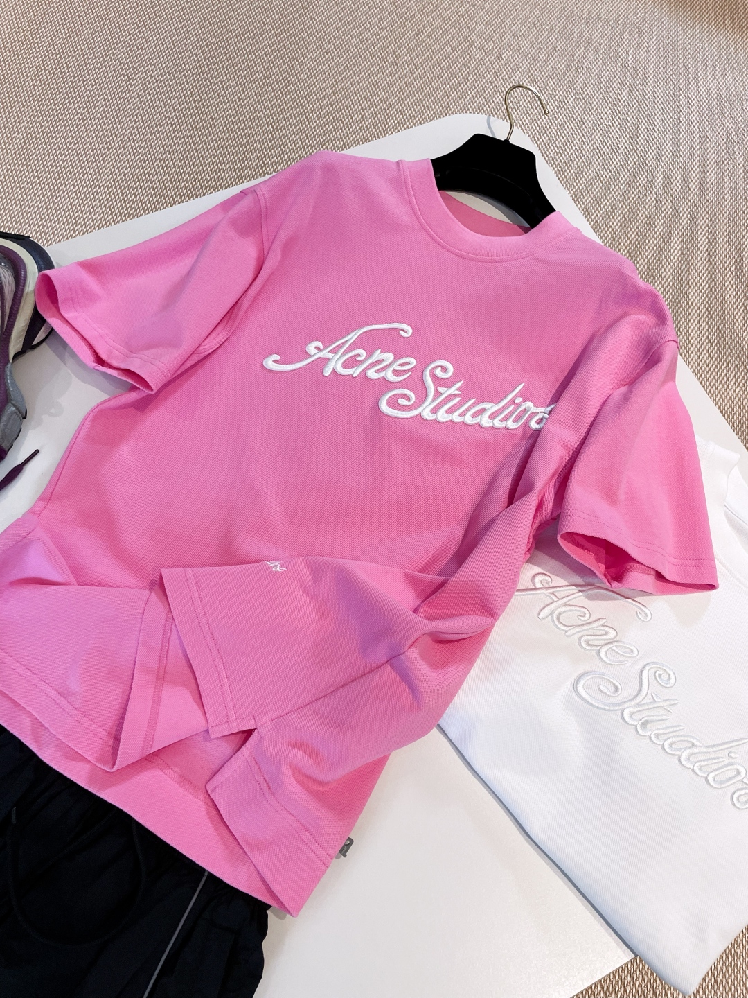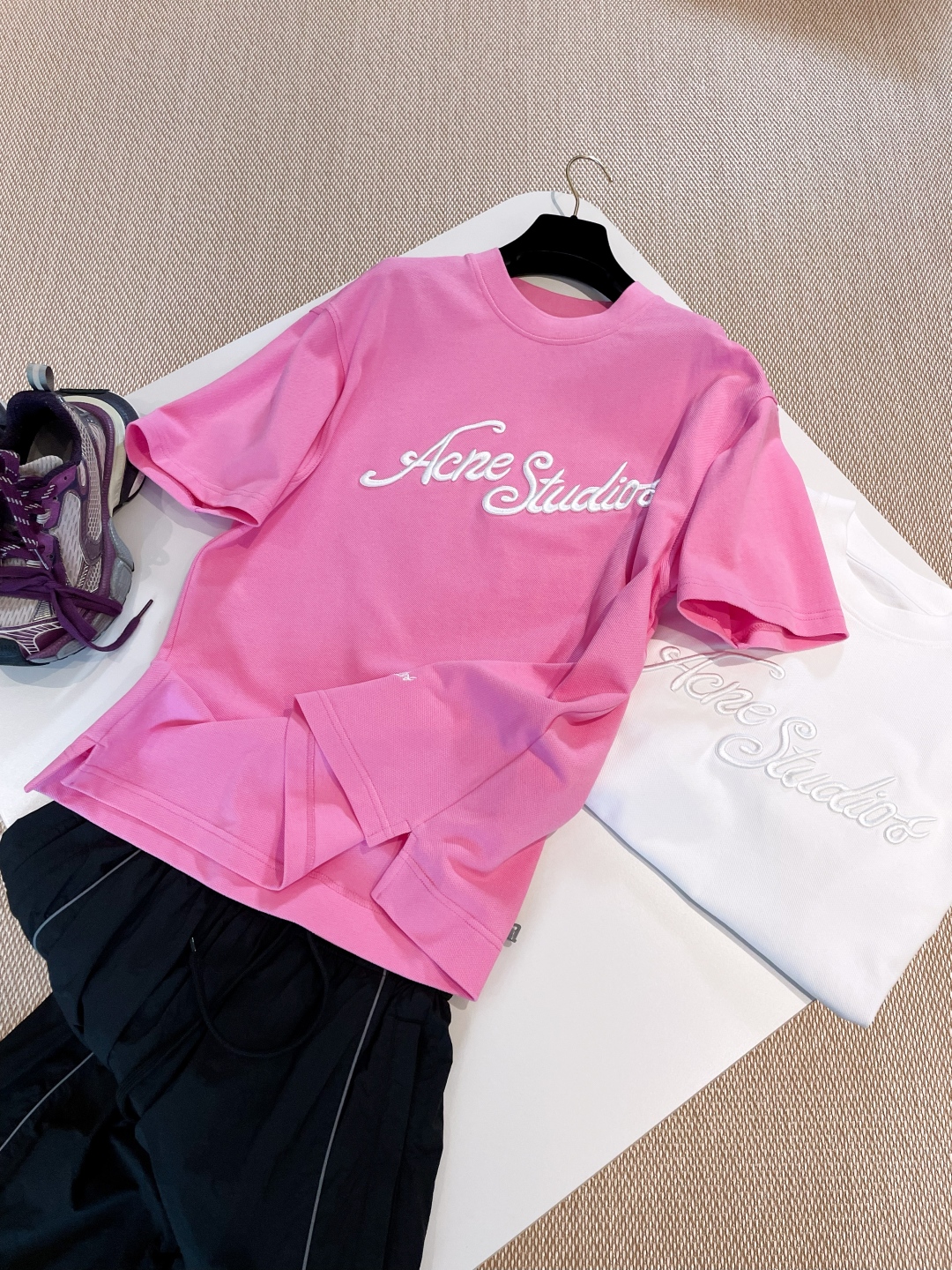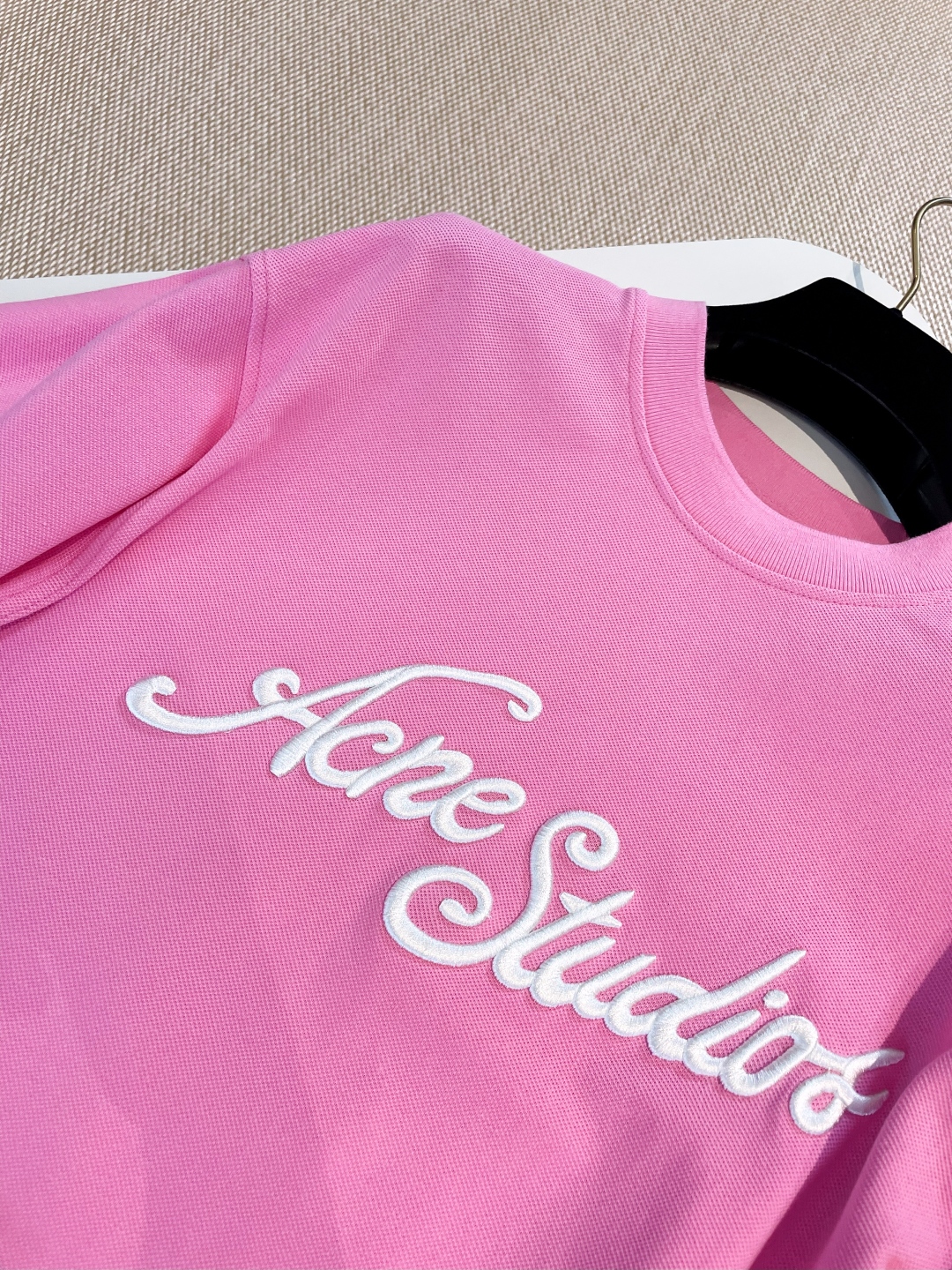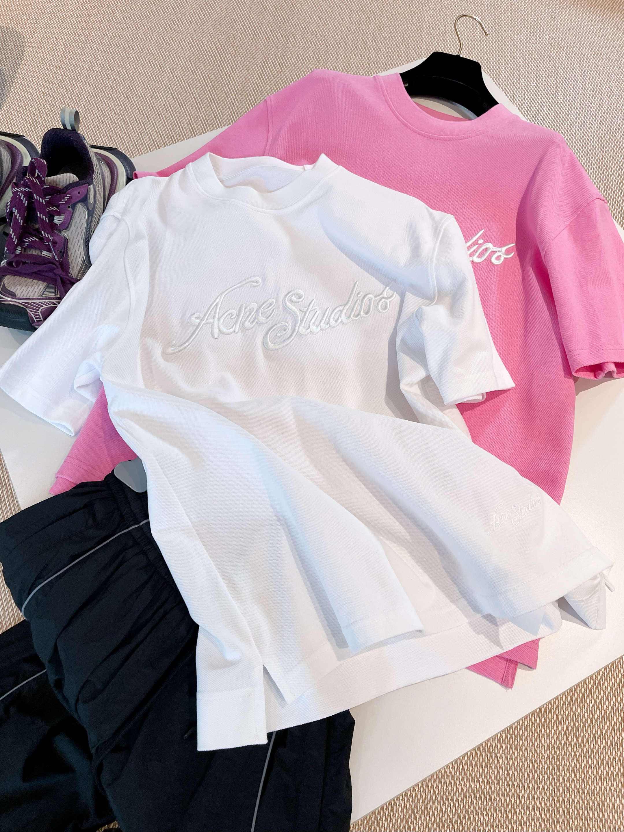 NIGO Acne Studios Women Spring Summer 3D Embroidery Logo Pink White Fashion Temperament Casual Tide Round Neck Top T-shirt #nigo81216