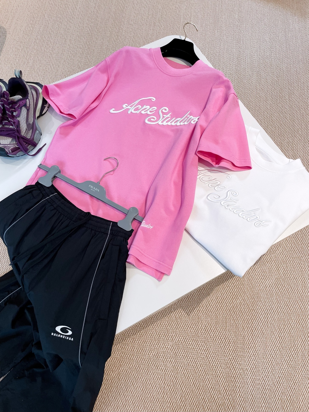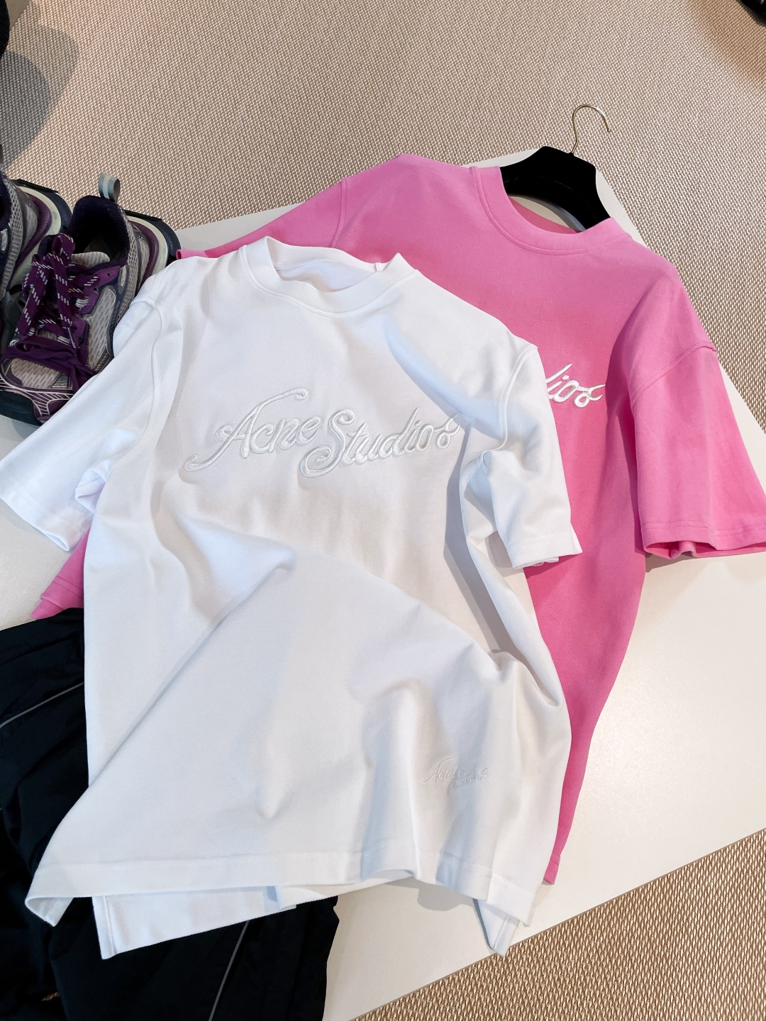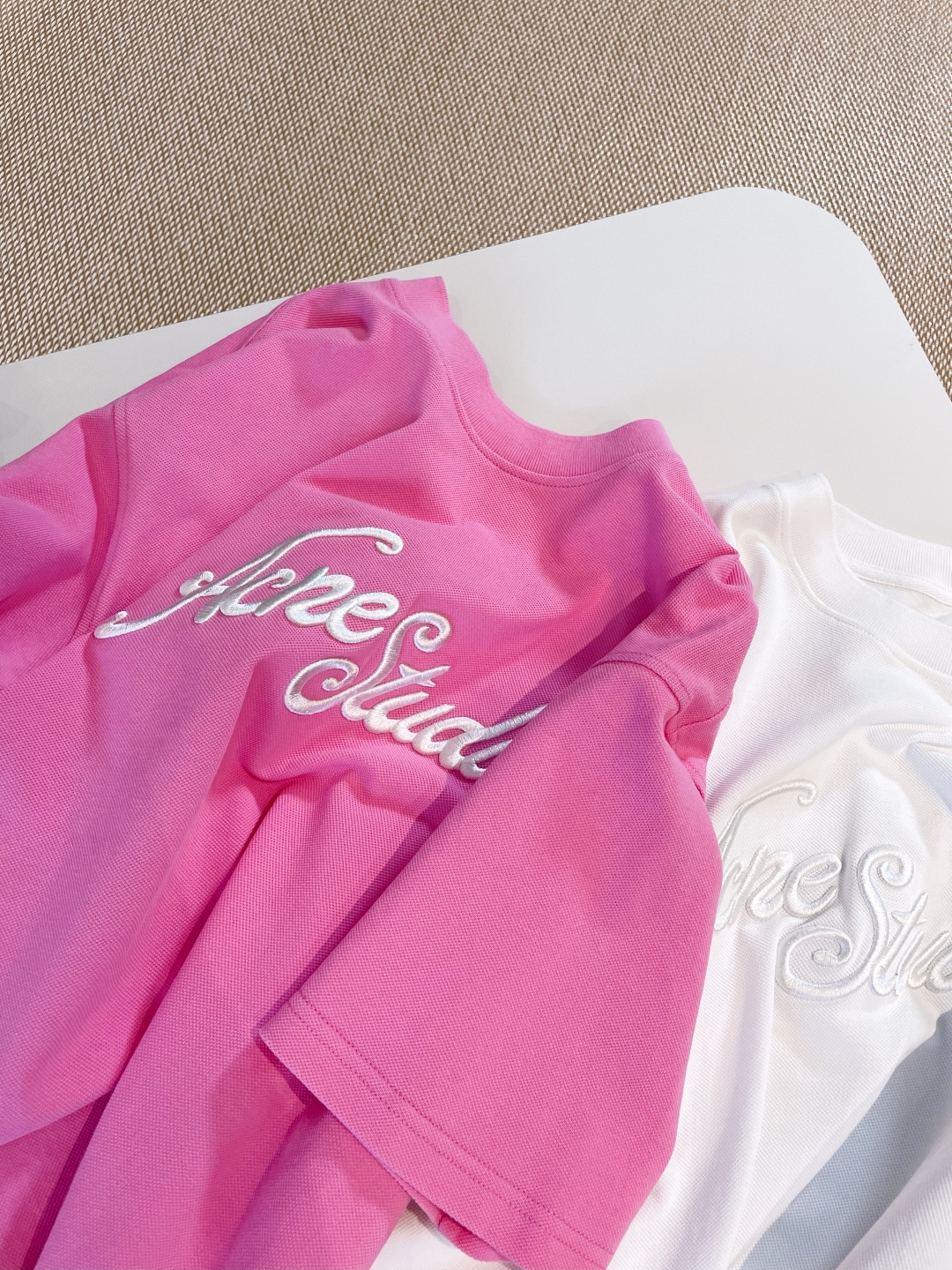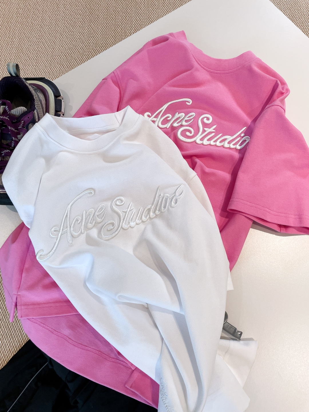 NIGO Acne Studios Women Spring Summer 3D Embroidery Logo Pink White Fashion Temperament Casual Tide Round Neck Top T-shirt #nigo81216