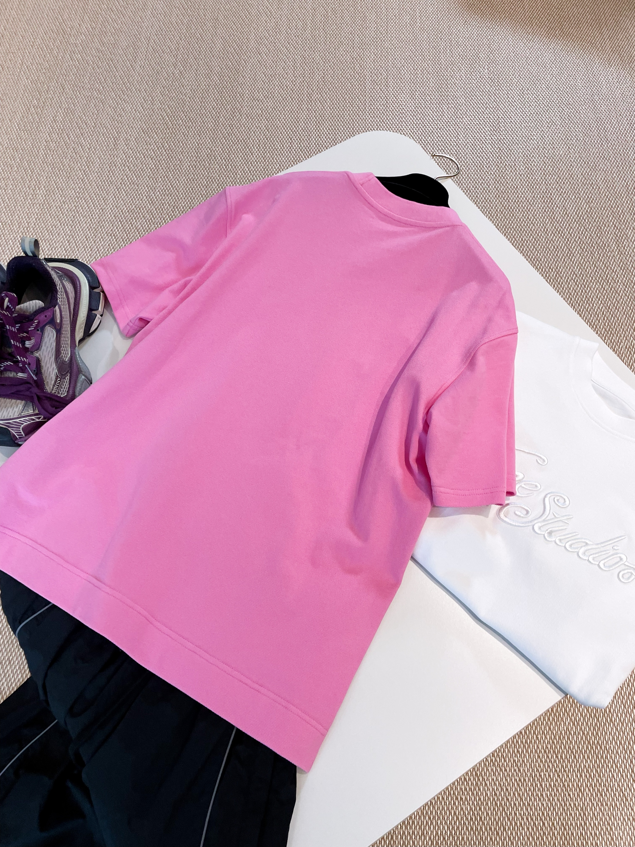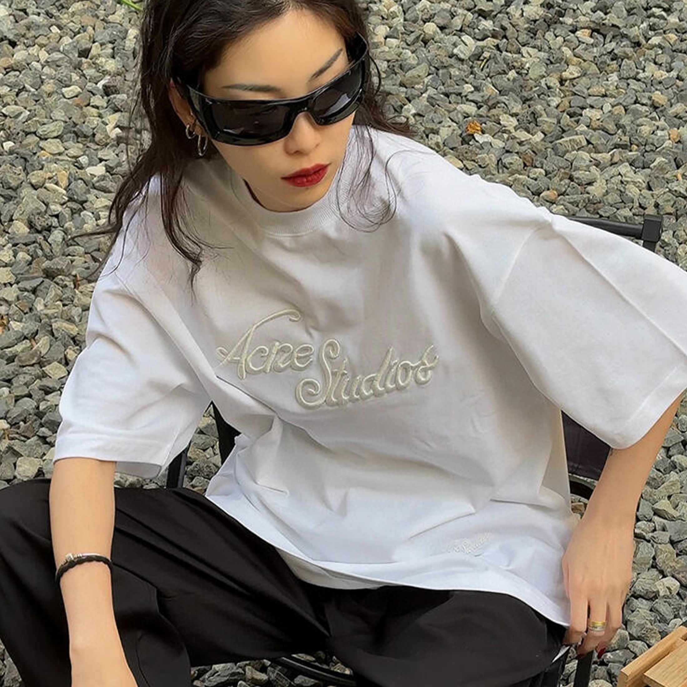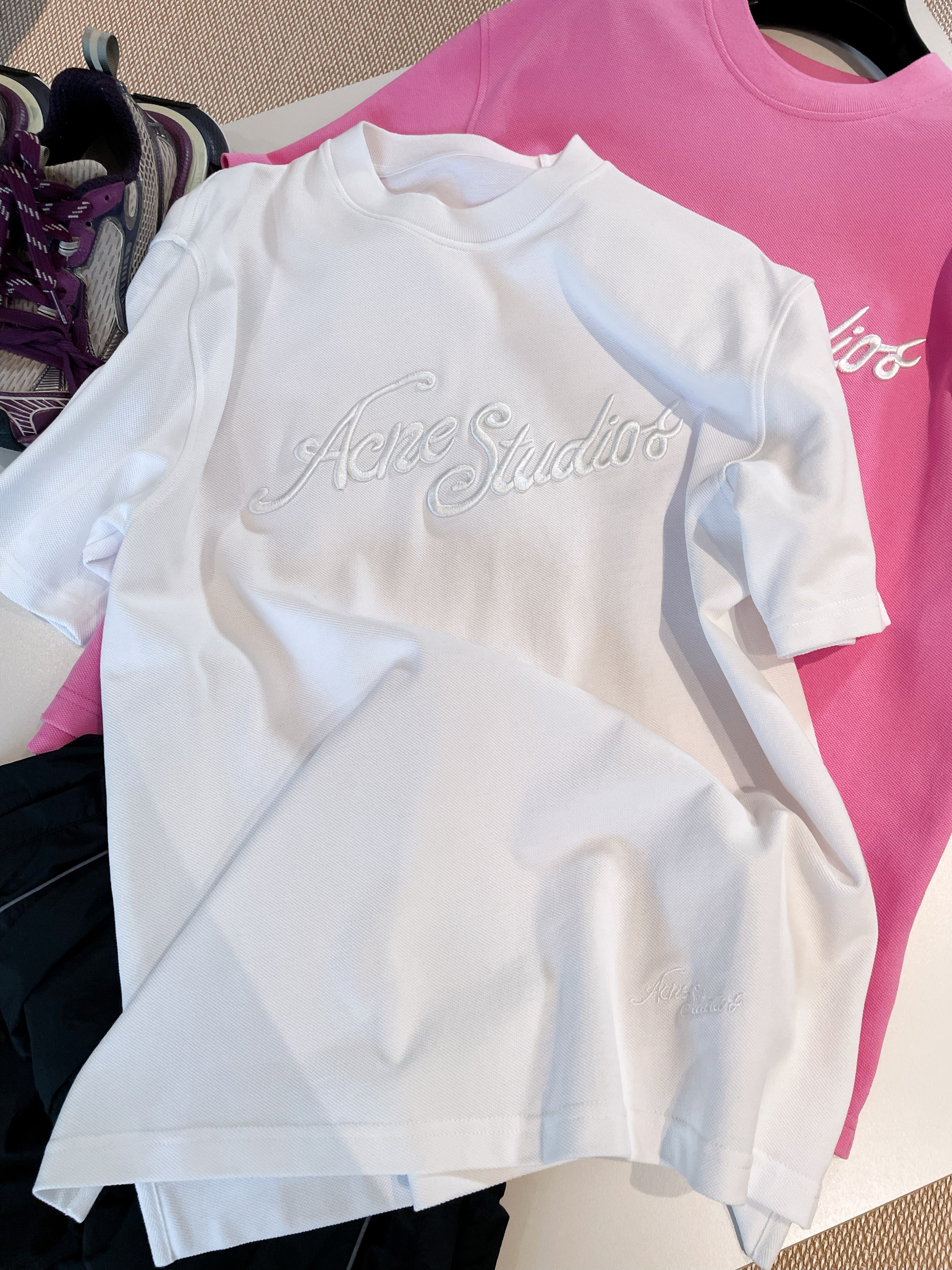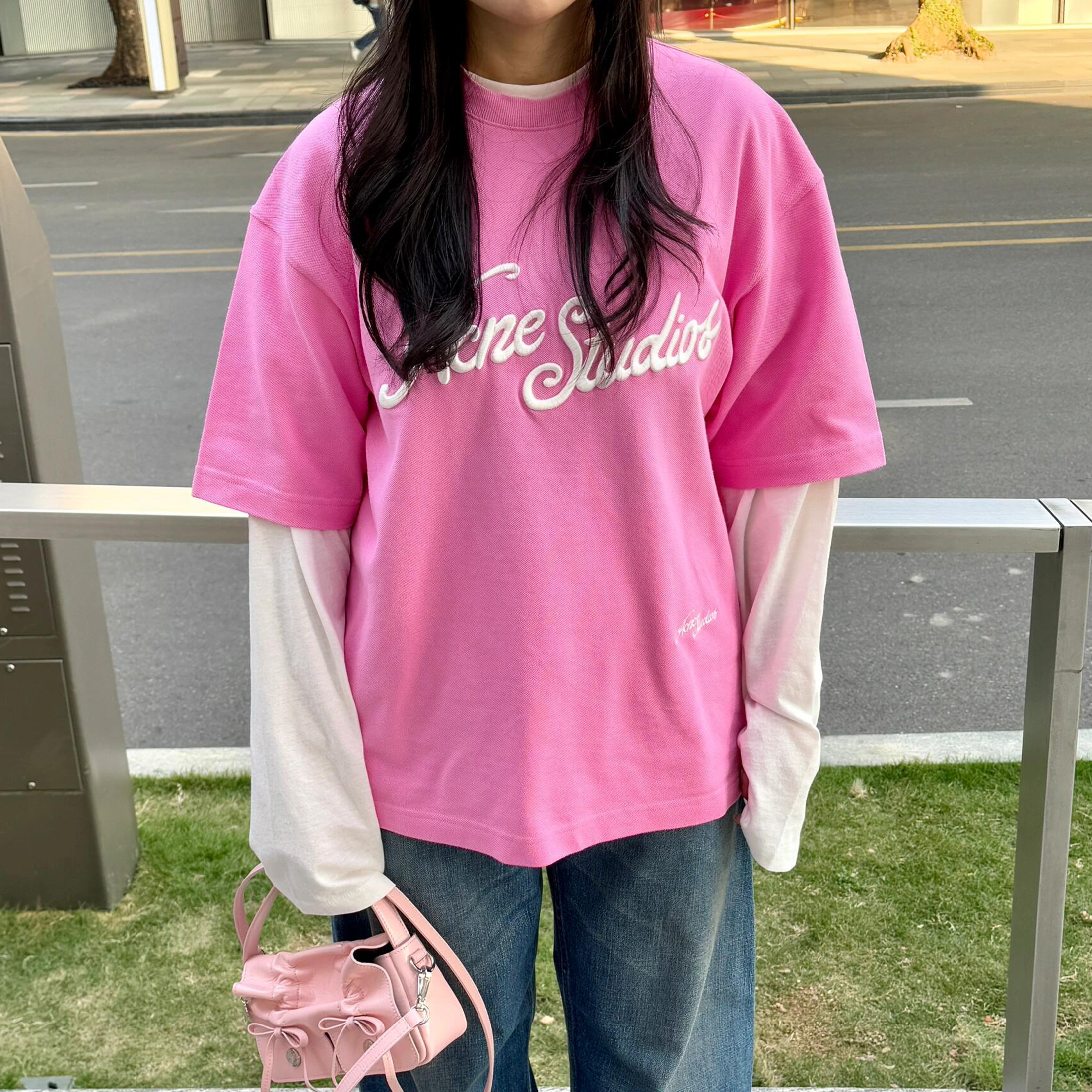 NIGO Acne Studios Women Spring Summer 3D Embroidery Logo Pink White Fashion Temperament Casual Tide Round Neck Top T-shirt #nigo81216
