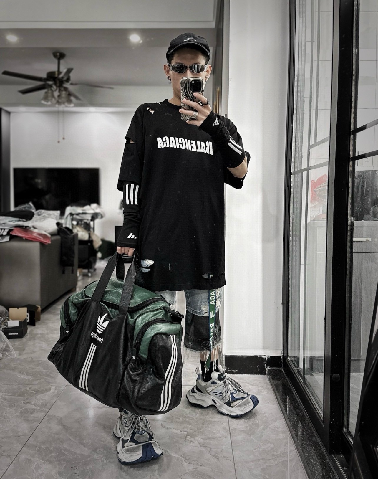 NIGO Balenciaga X Adidas Men's Adjustable Shoulder Strap Zipper Closure Sheep Leather Shoulder Crossbody Tote Travel Bag Gym Bags #nigo73141