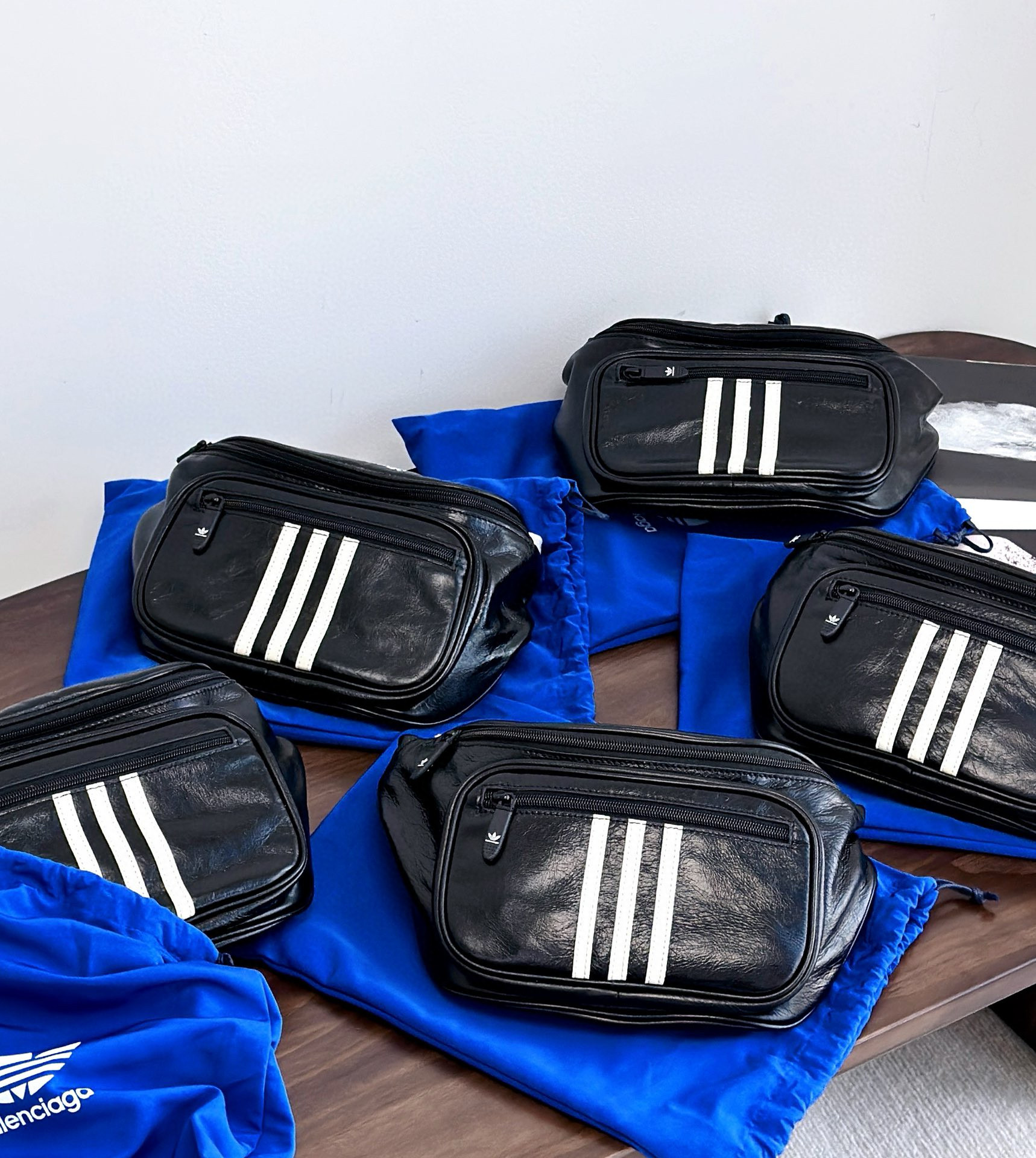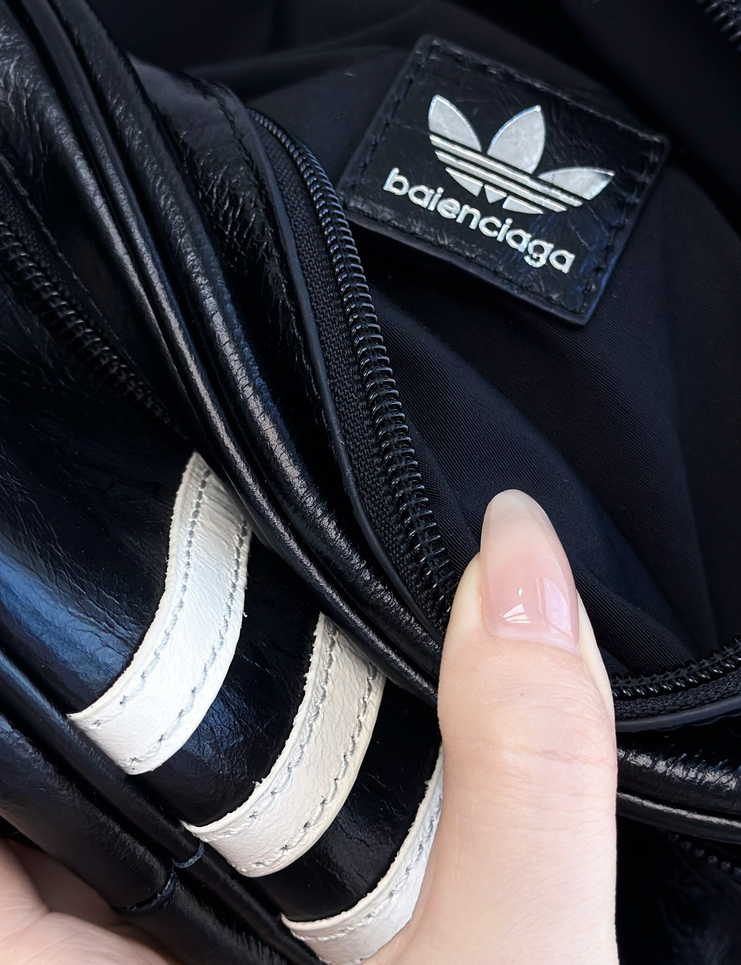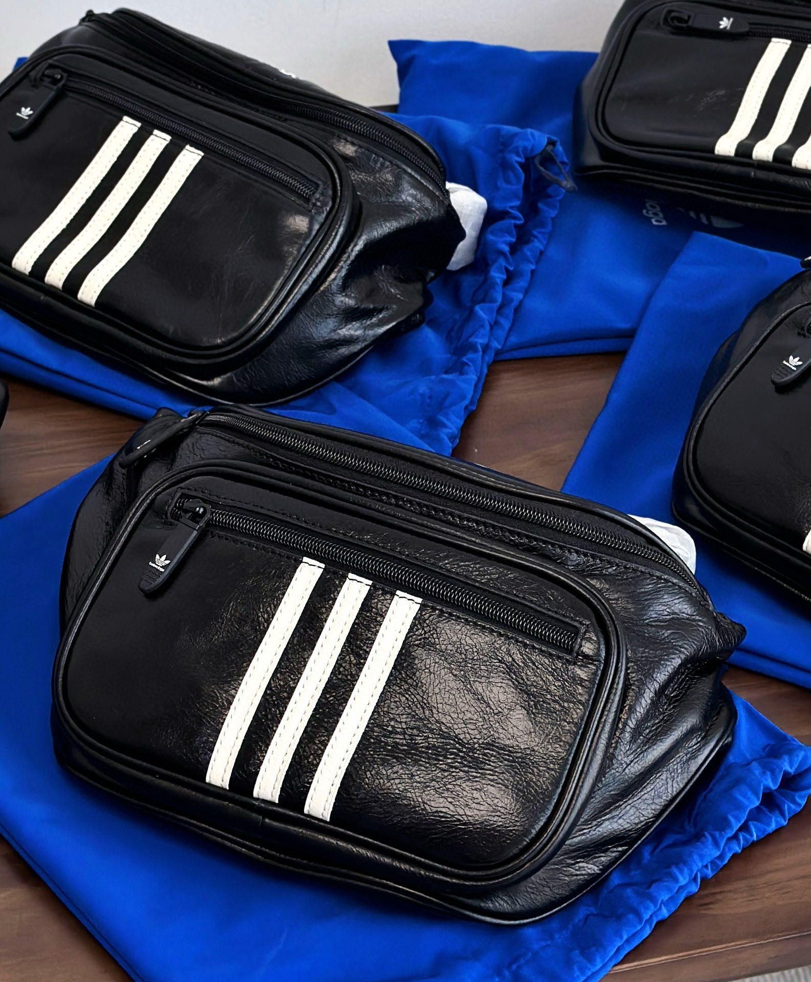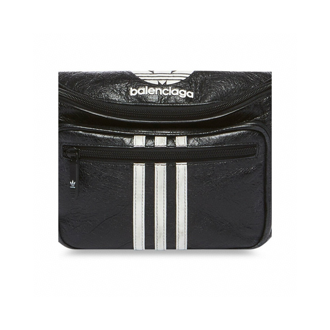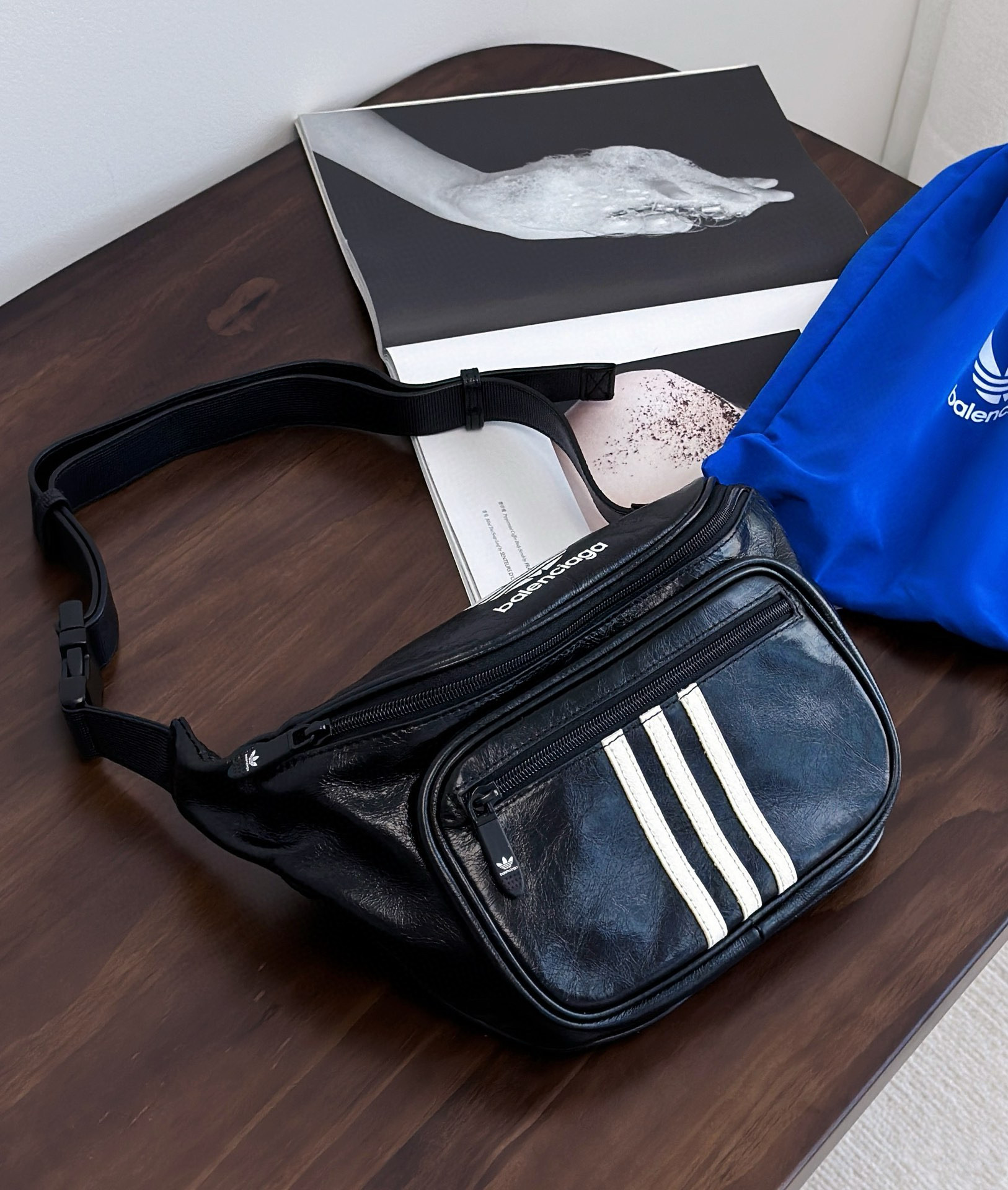 NIGO Balenciaga X Adidas Men's Black and White Stripe Zipper Closure Logo Printed Sheep Leather Shoulder Crossbody Waist Bag Bags #nigo98396