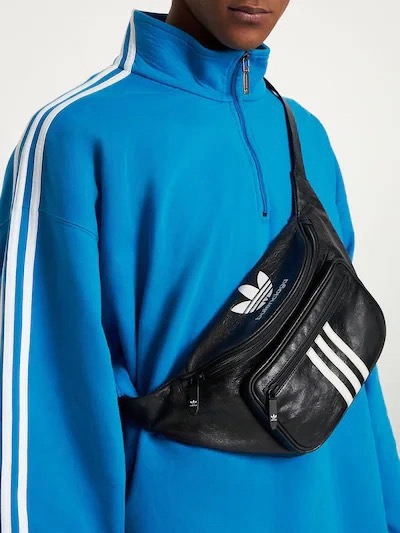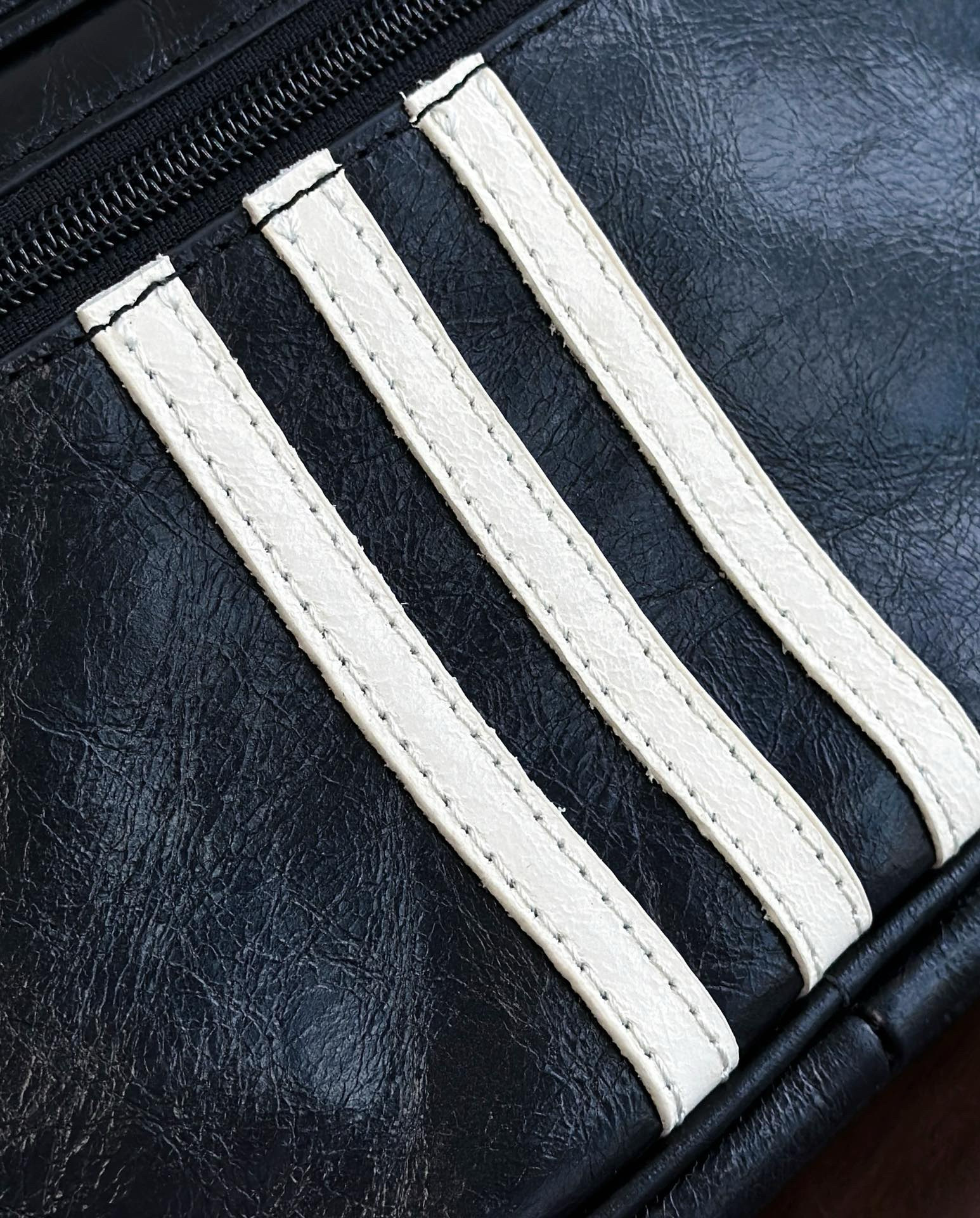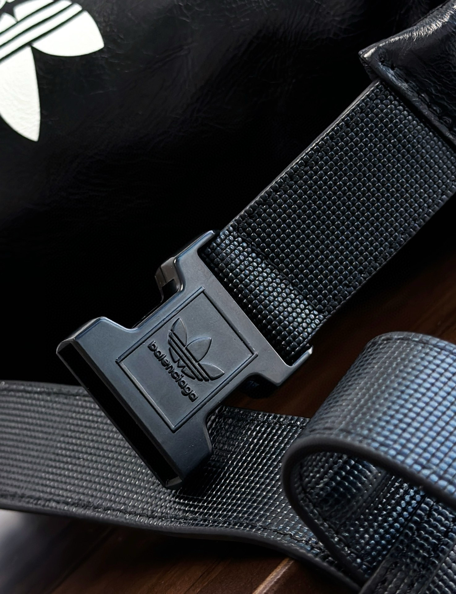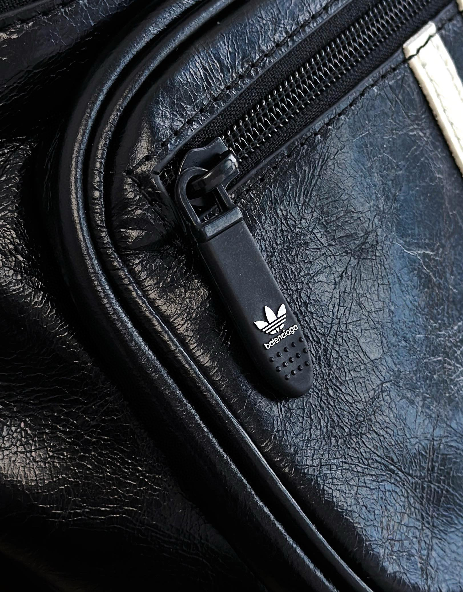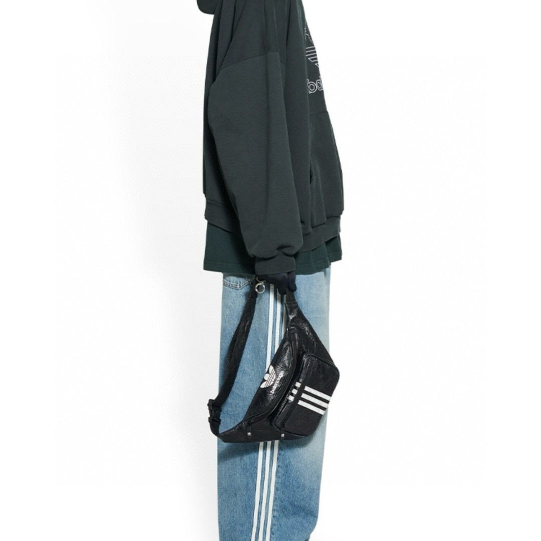 NIGO Balenciaga X Adidas Men's Black and White Stripe Zipper Closure Logo Printed Sheep Leather Shoulder Crossbody Waist Bag Bags #nigo98396