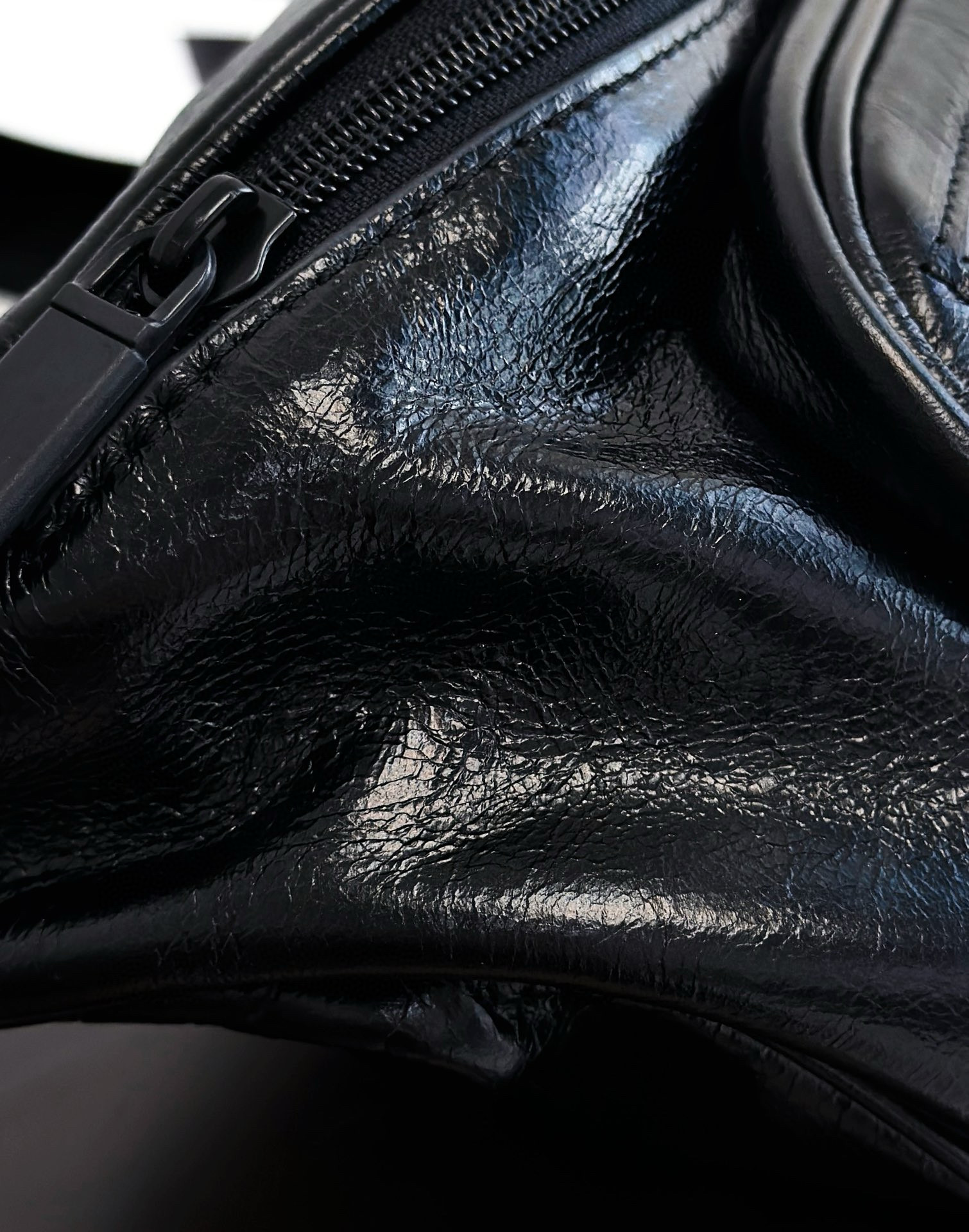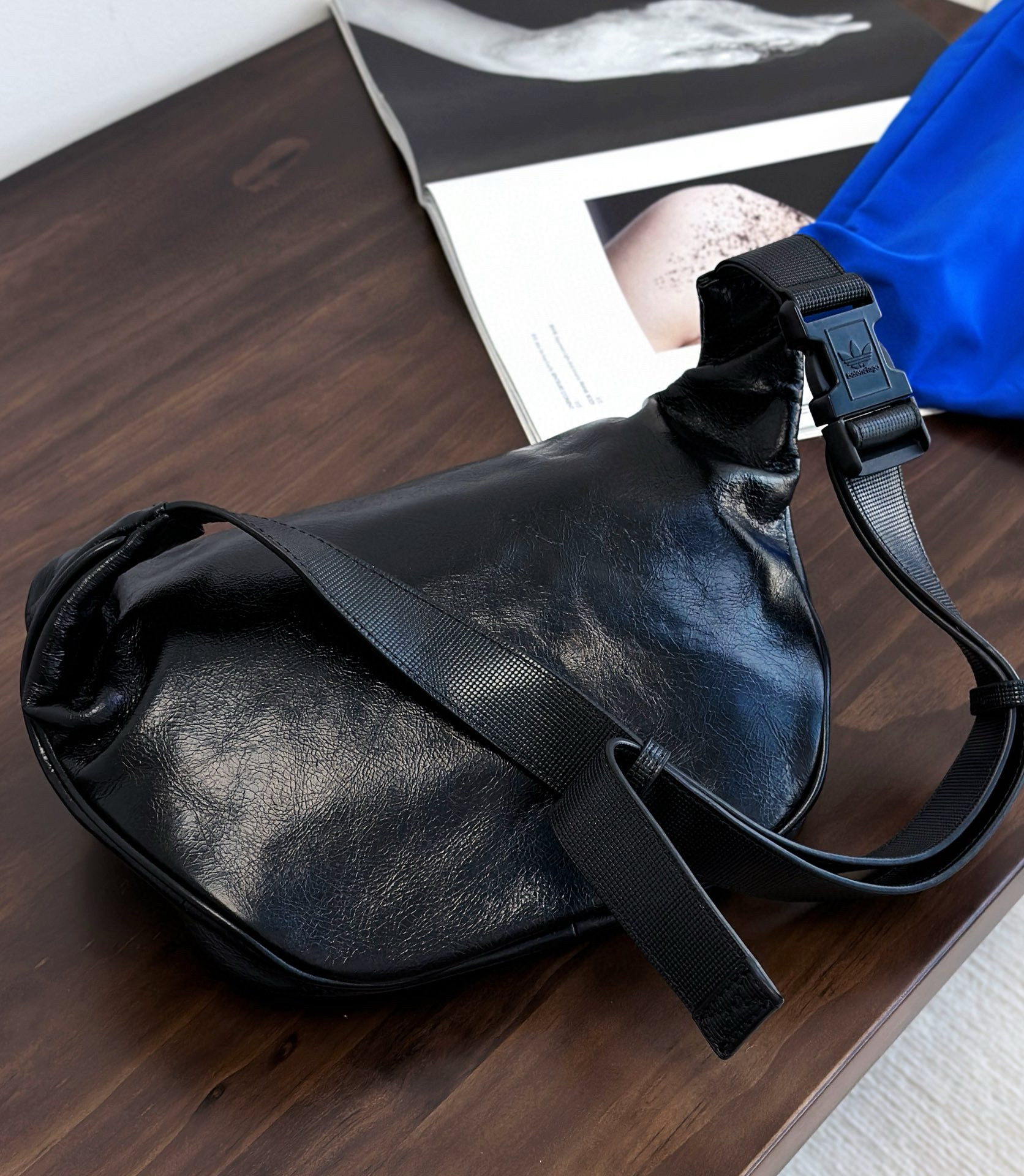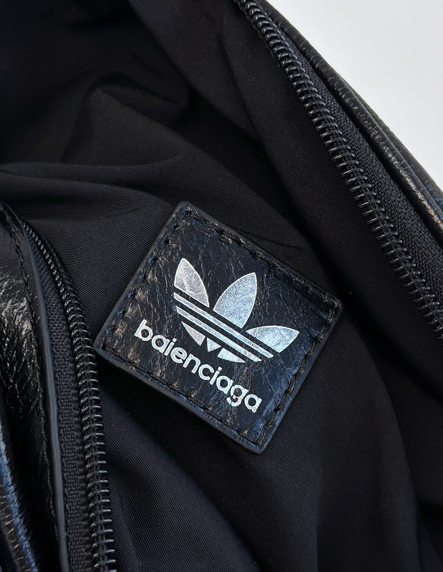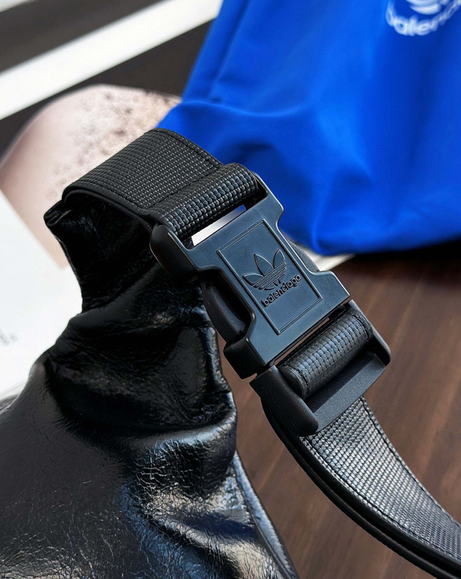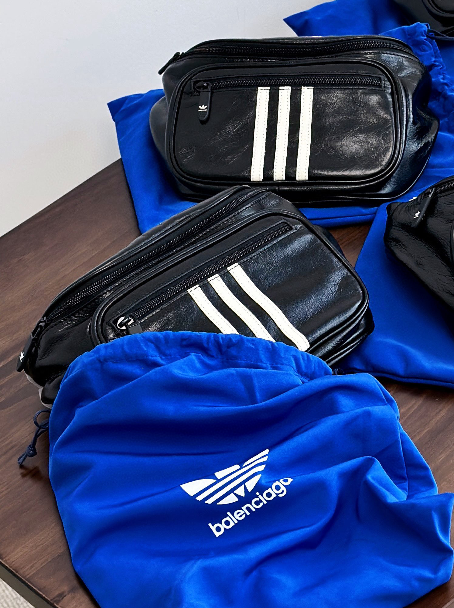 NIGO Balenciaga X Adidas Men's Black and White Stripe Zipper Closure Logo Printed Sheep Leather Shoulder Crossbody Waist Bag Bags #nigo98396