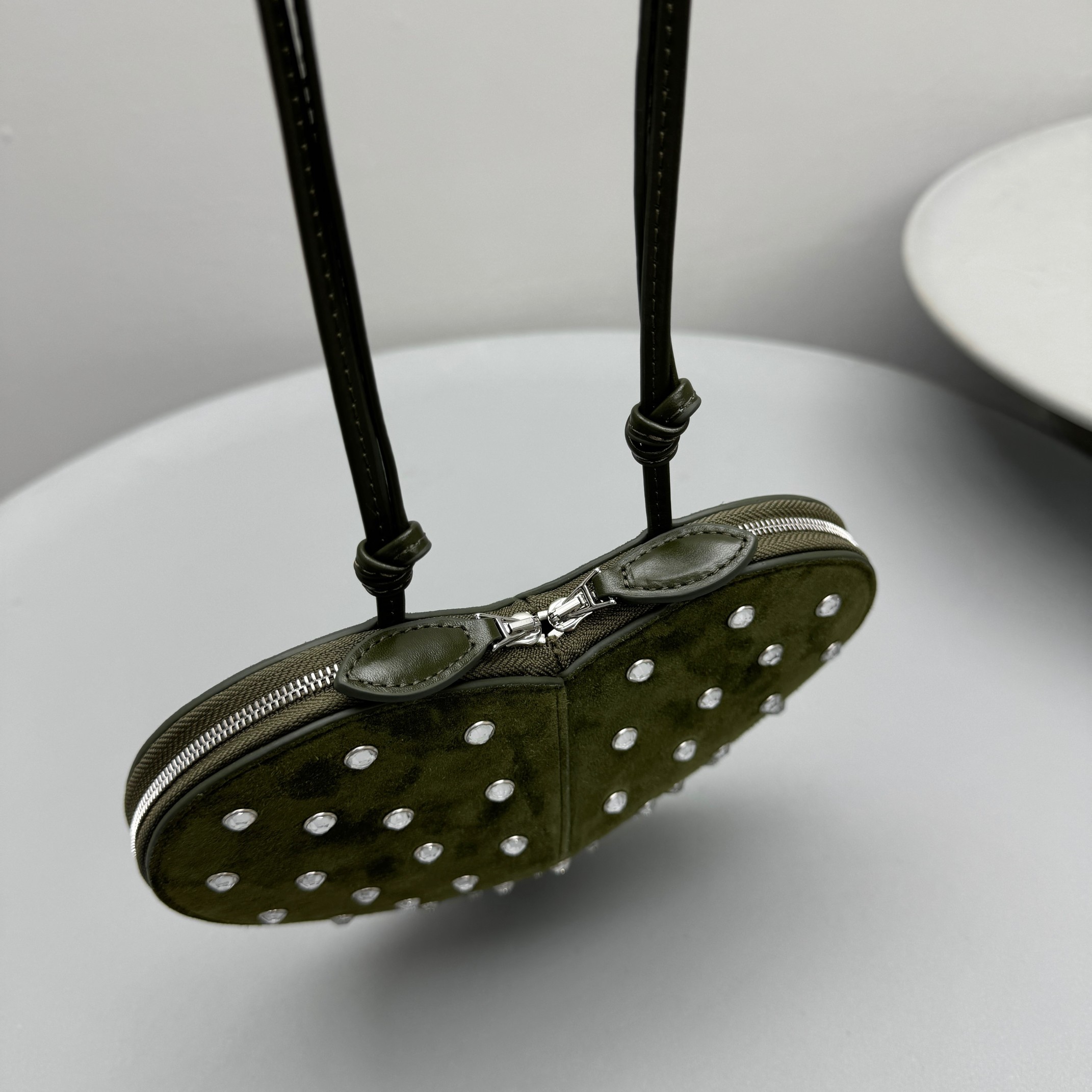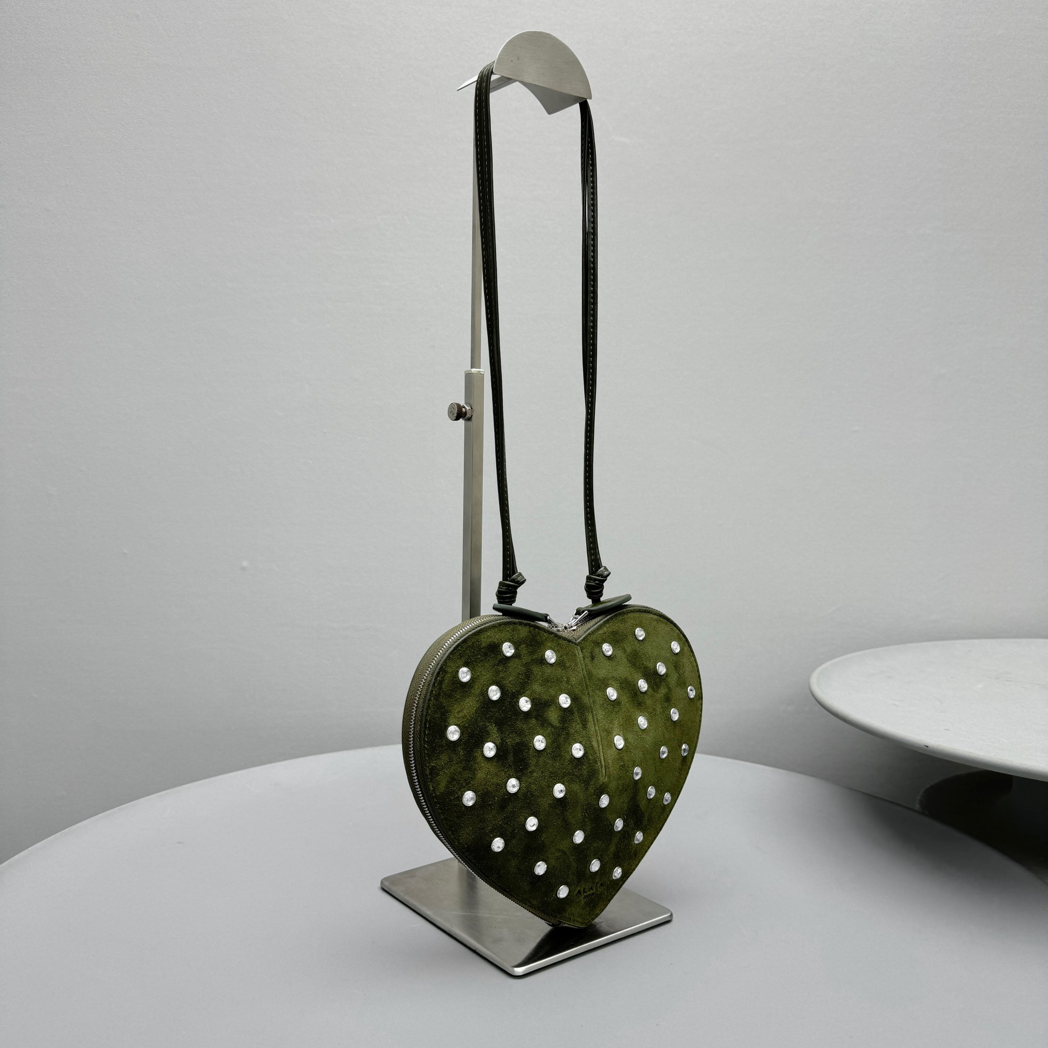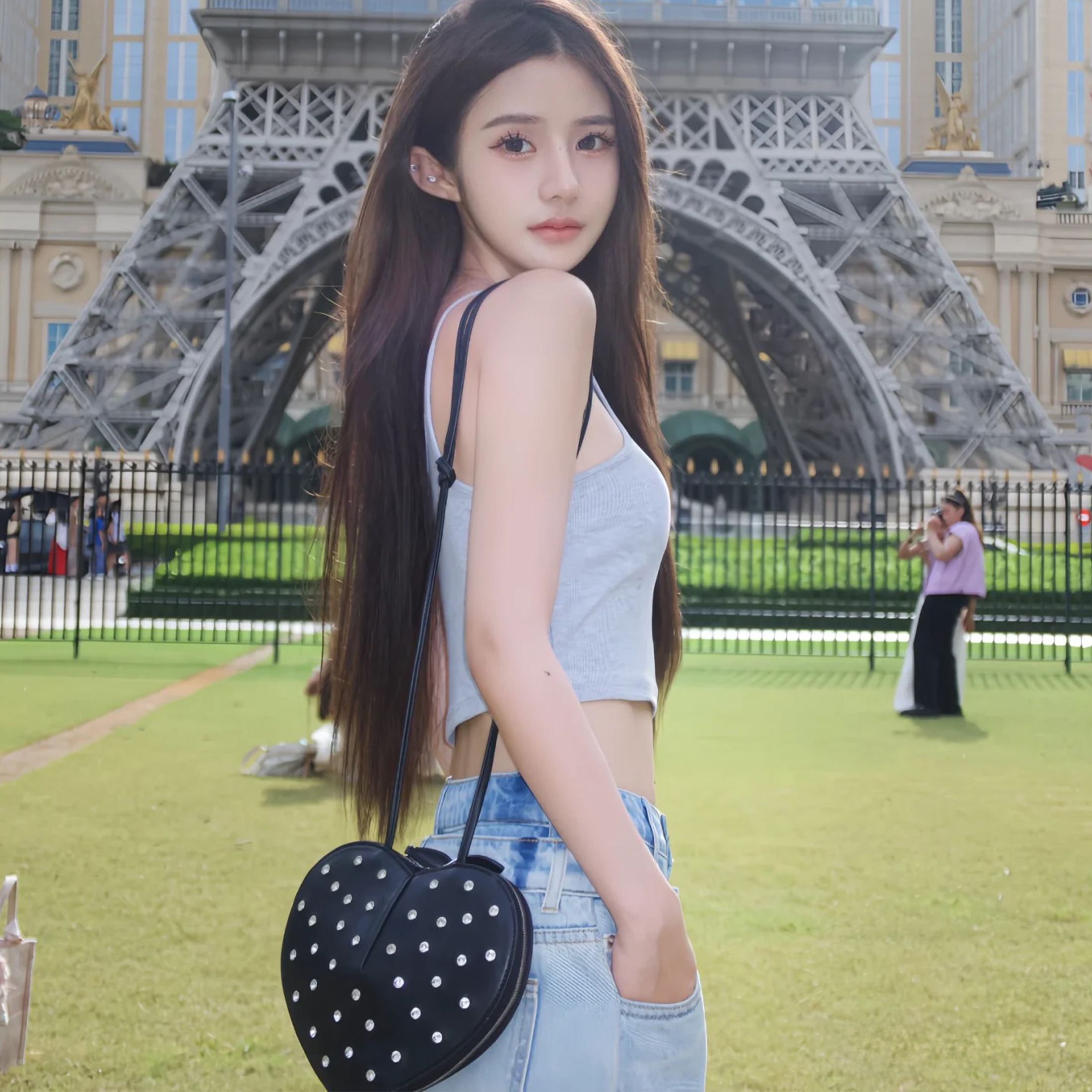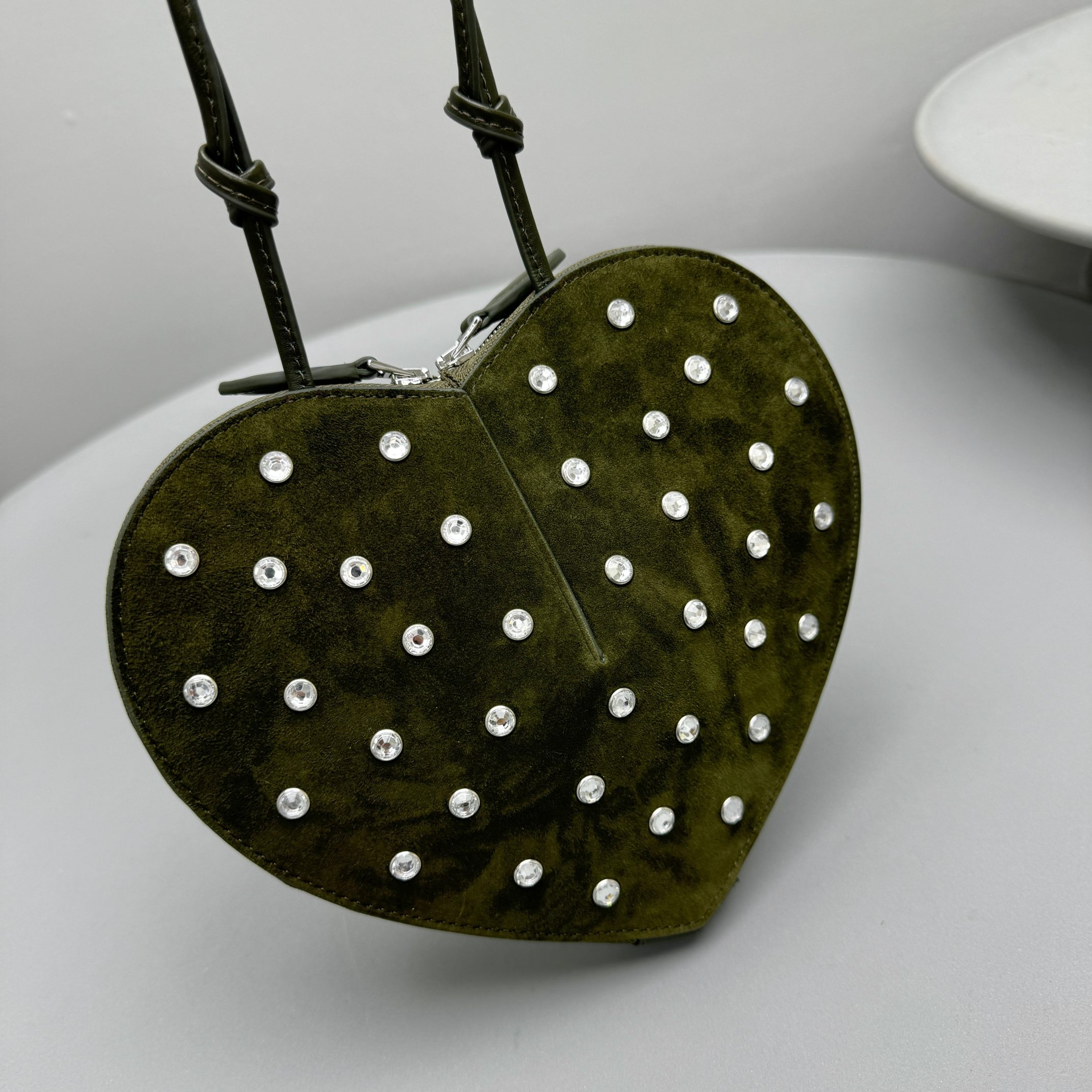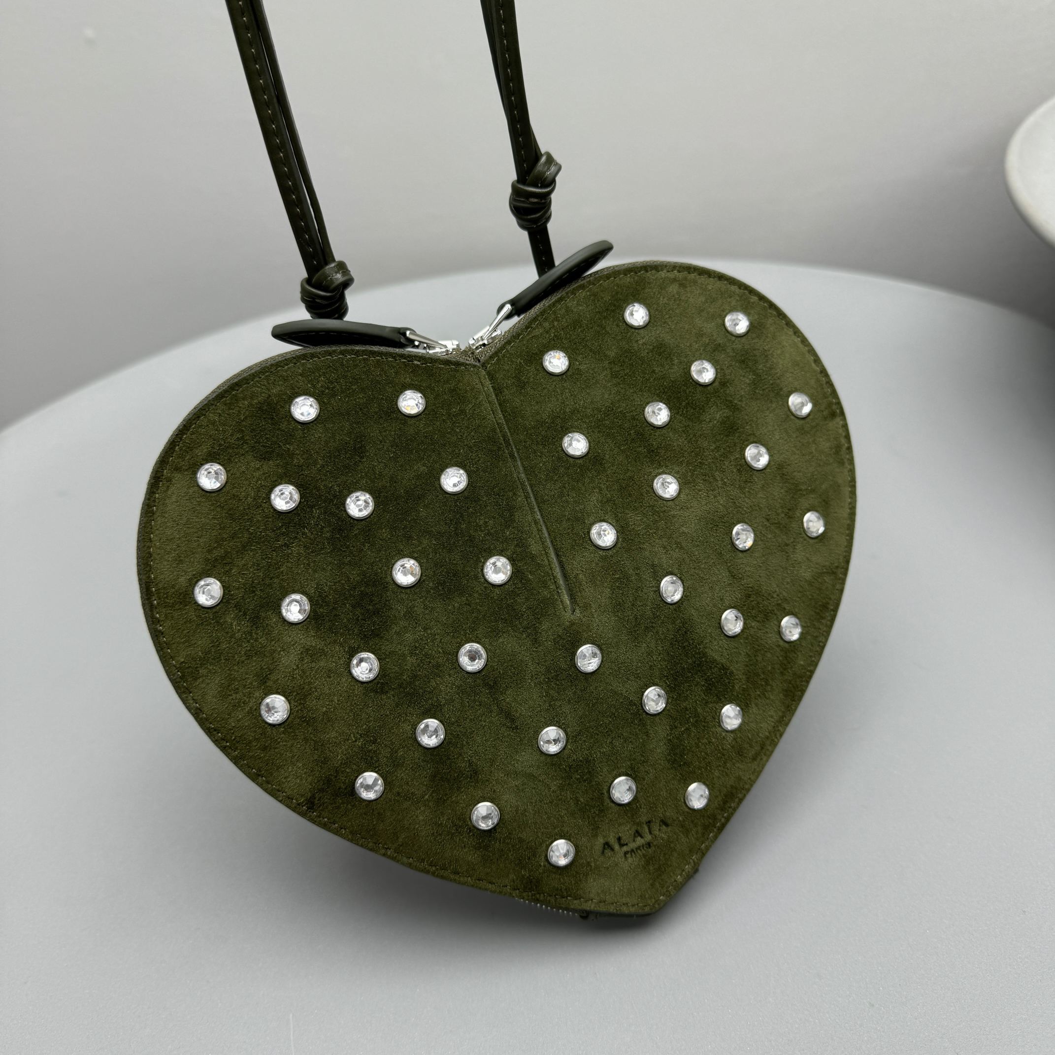 NIGO Alaia Women's Fashion Rhinestone Embellished Heart LE CŒUR Leather Casual Shoulder Bag Crossbody Bag Bags AA1P003CA287-999 Ngvp #nigo8348