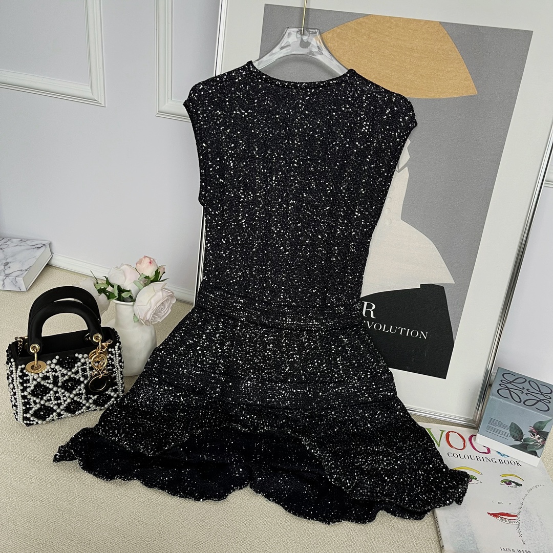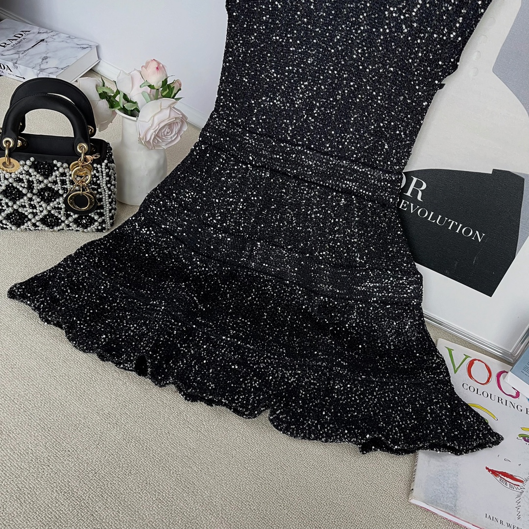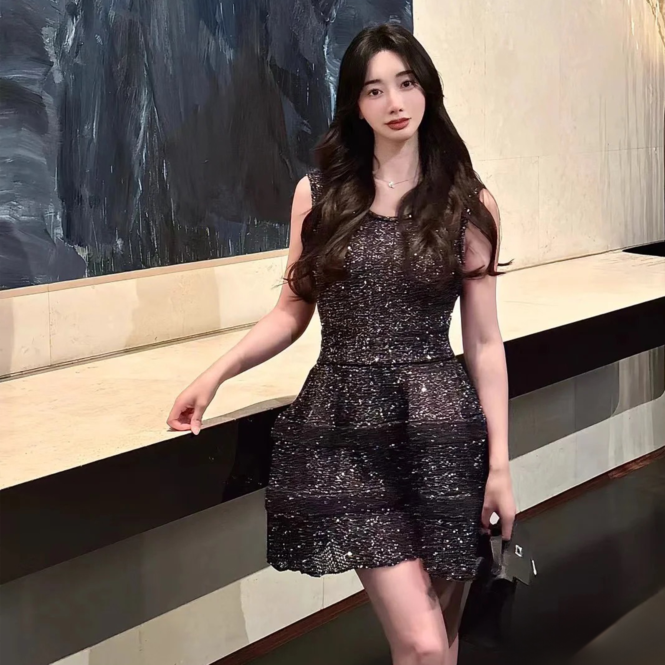 NIGO Alaia Women's Spring And Summer Sequin Dress Round Neck Sleeveless Slim Knee-length Dress Fashion Party Dresses Ngvp #nigo9133