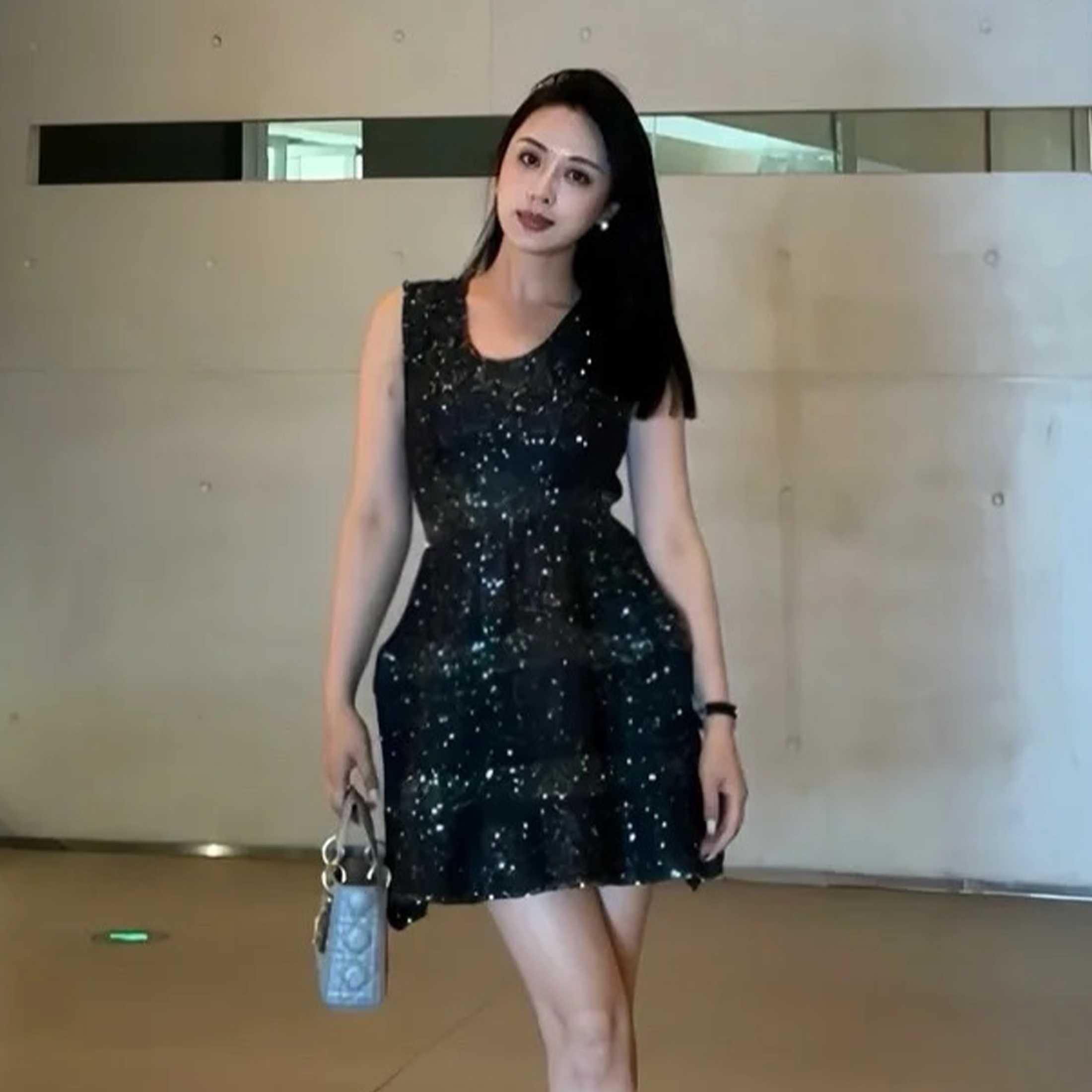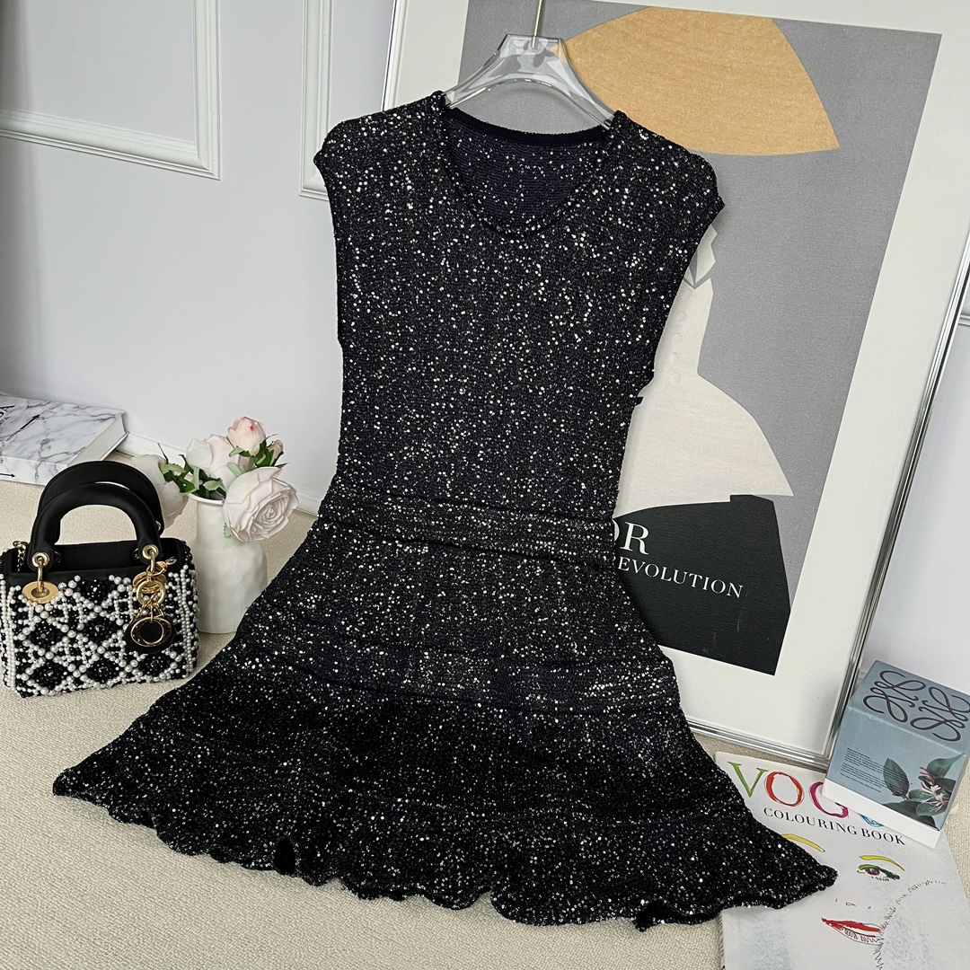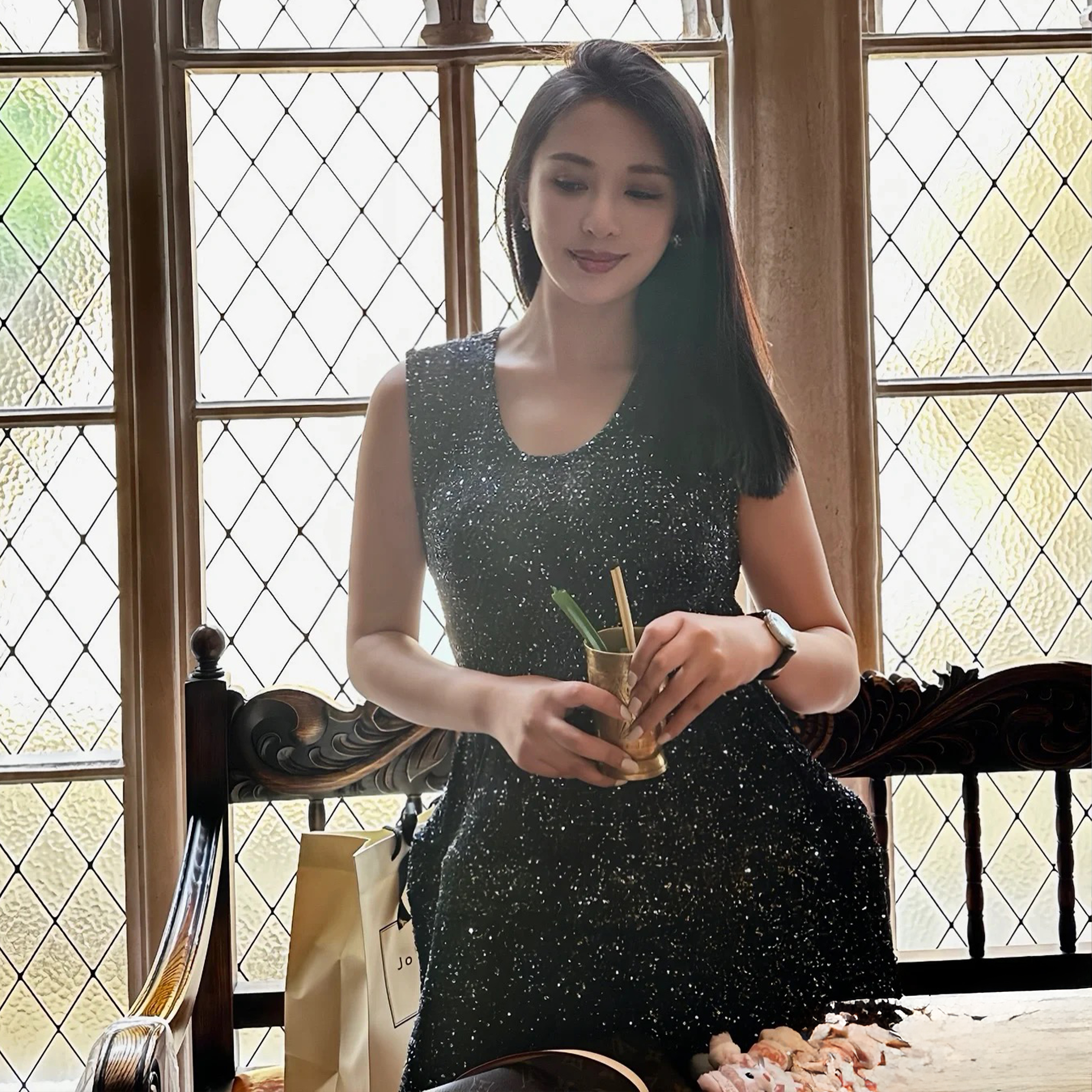 NIGO Alaia Women's Spring And Summer Sequin Dress Round Neck Sleeveless Slim Knee-length Dress Fashion Party Dresses Ngvp #nigo9133