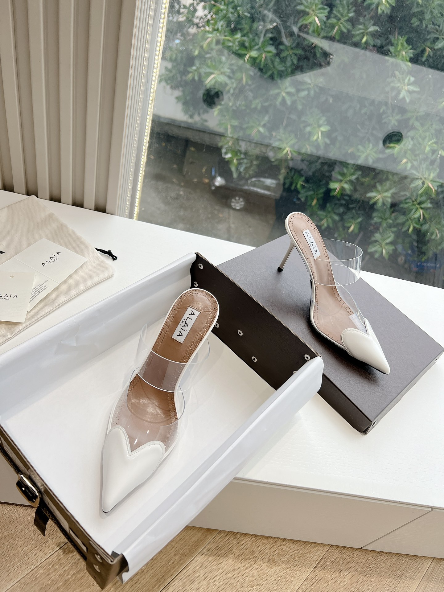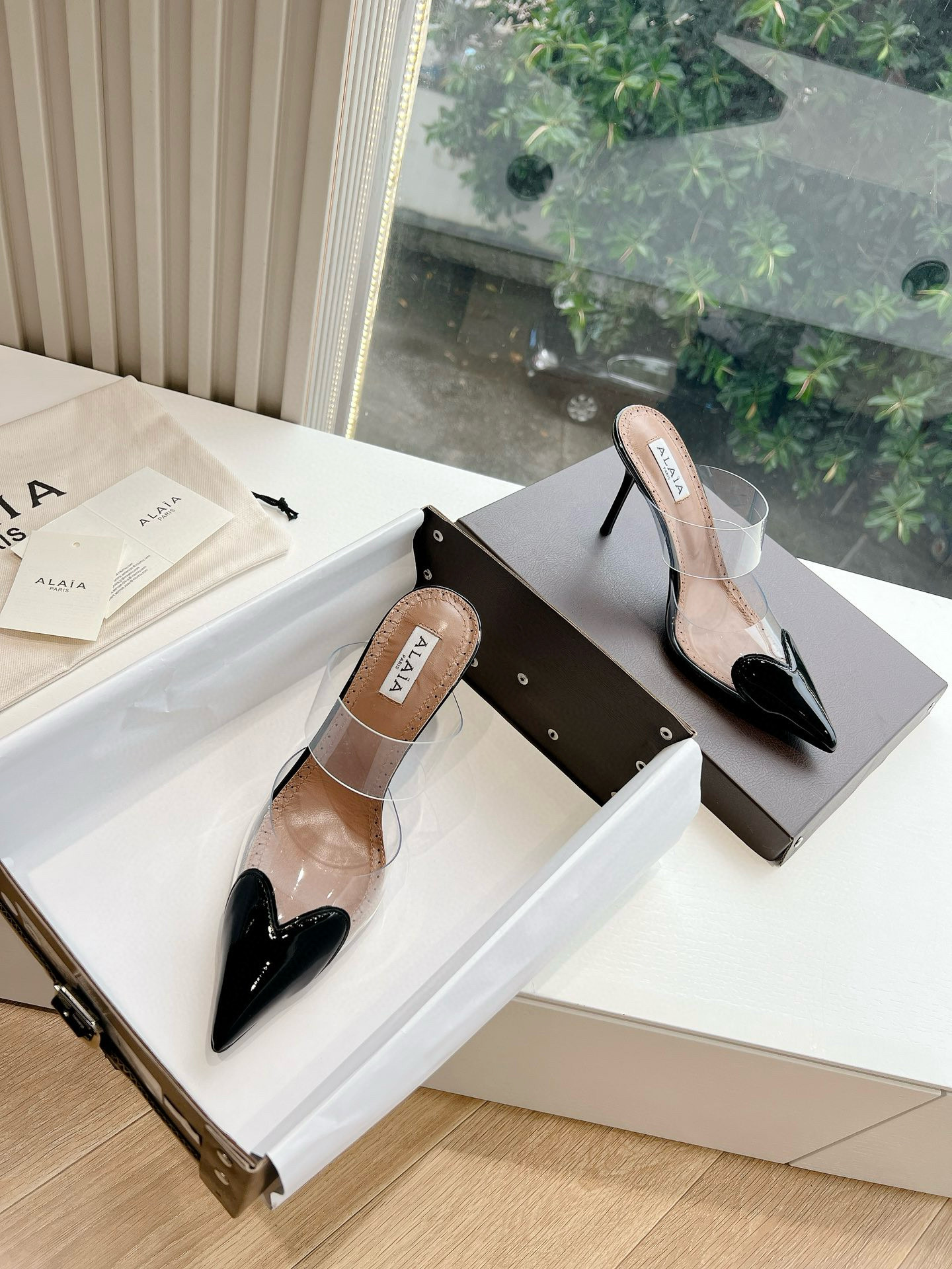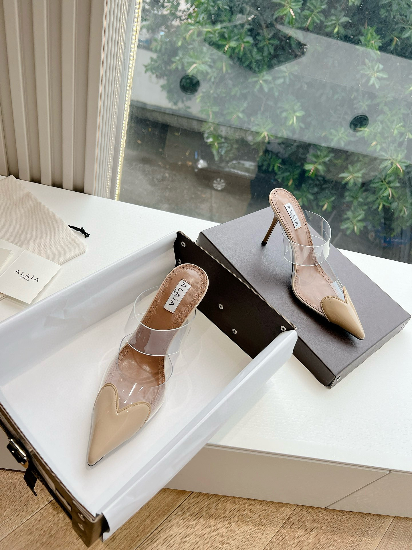 NIGO Alaia Women's Summer Fashion Elegant Pointed Toe Heart Shaped Mule Stiletto Leather Sole High Heels #nigo78328