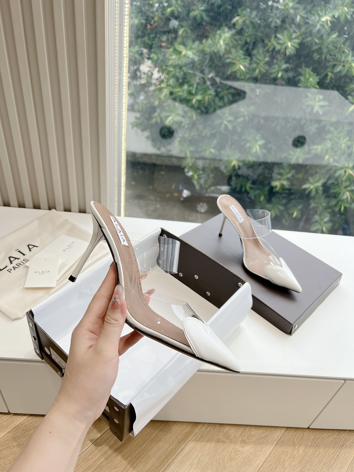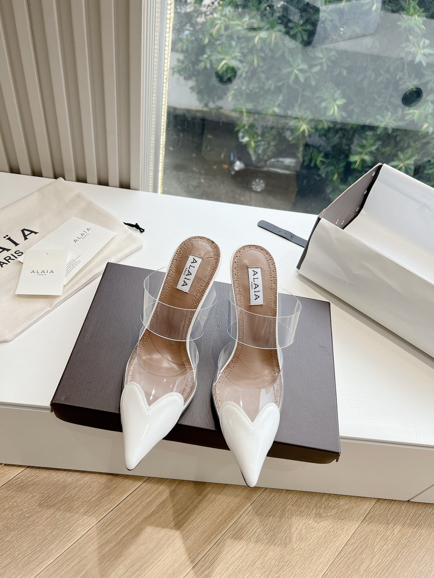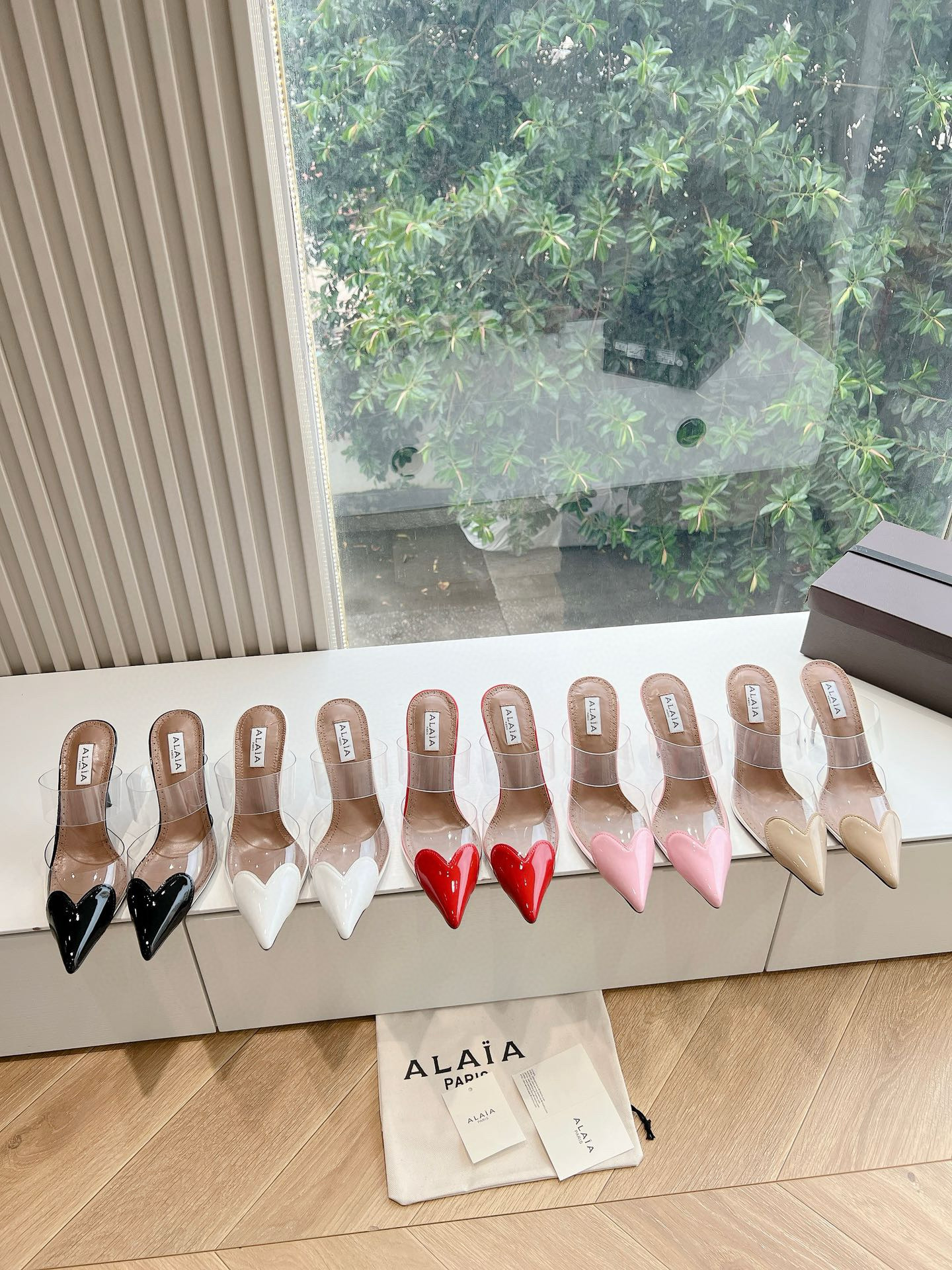 NIGO Alaia Women's Summer Fashion Elegant Pointed Toe Heart Shaped Mule Stiletto Leather Sole High Heels #nigo78328