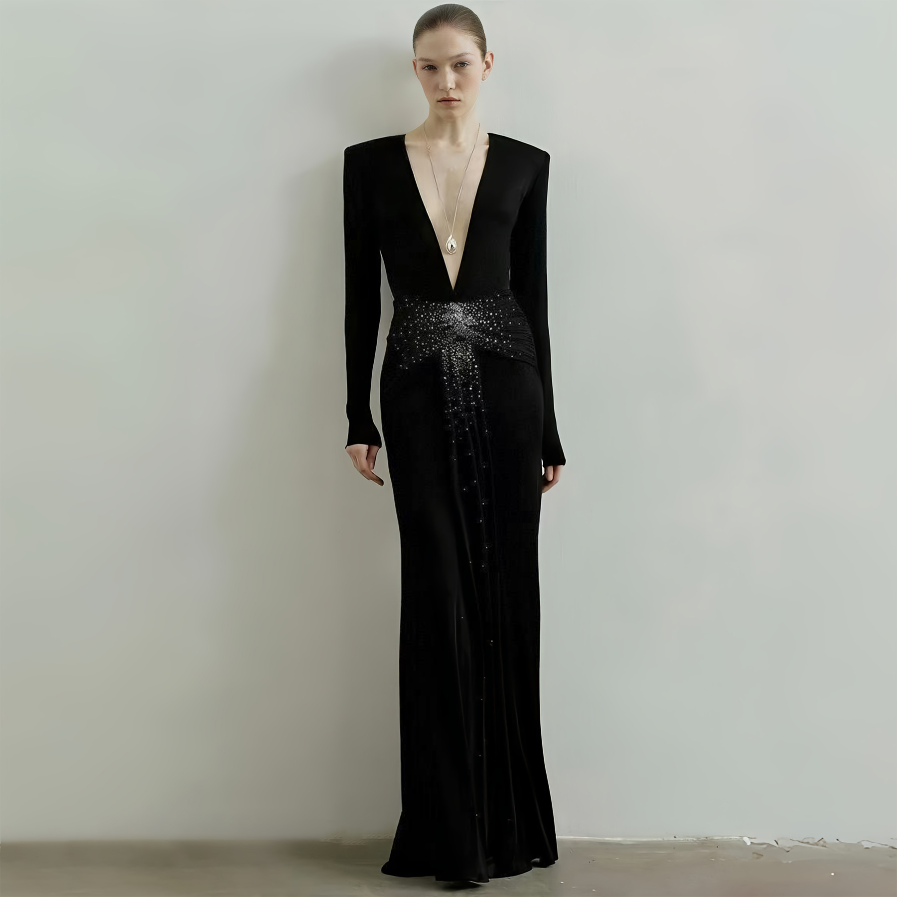 NIGO Alex Perry Women's Luxury Exquisite Black With Diamond Slim Long Dress Temperament Fashion Modern Long Sleeve Long Dresses Ngvp #nigo2481