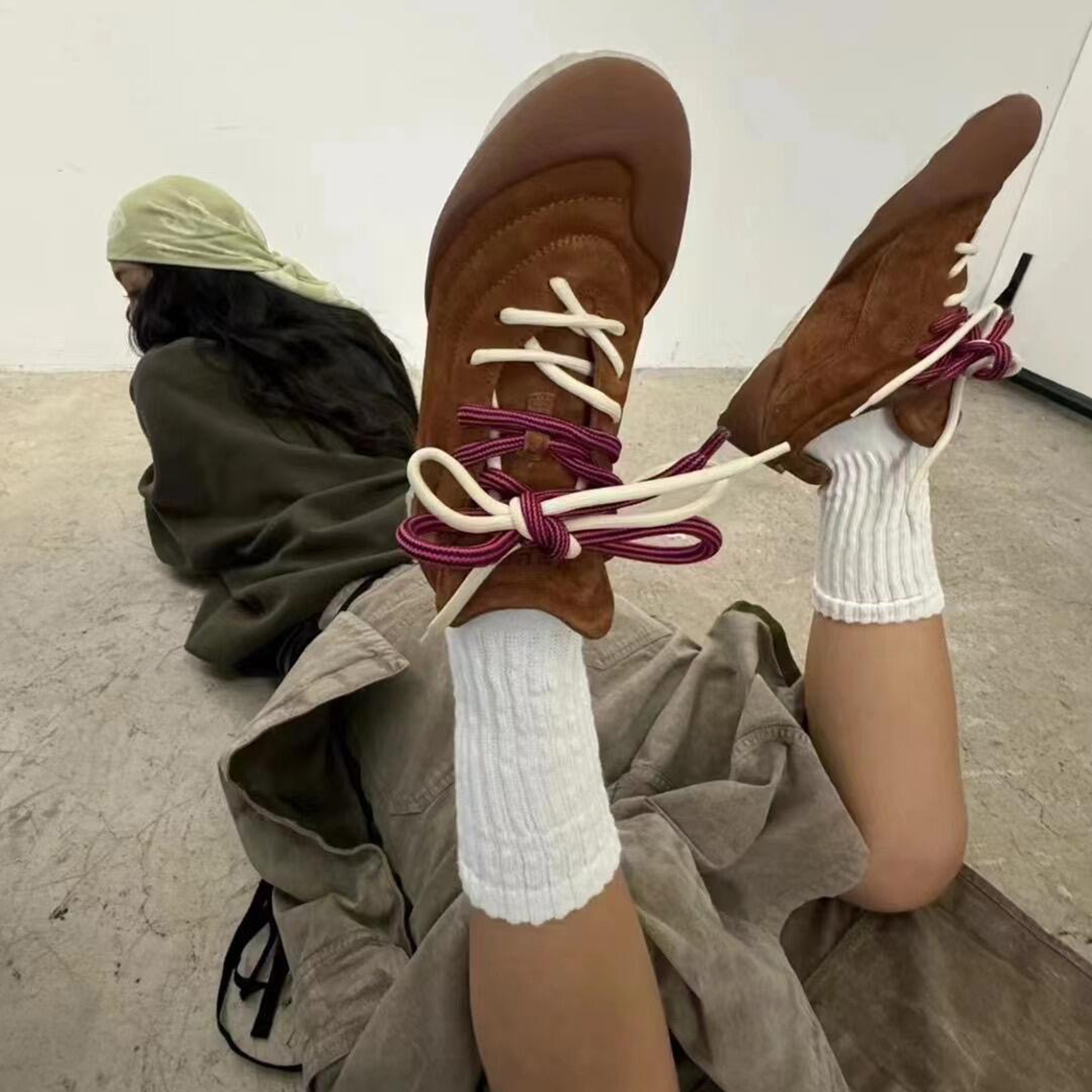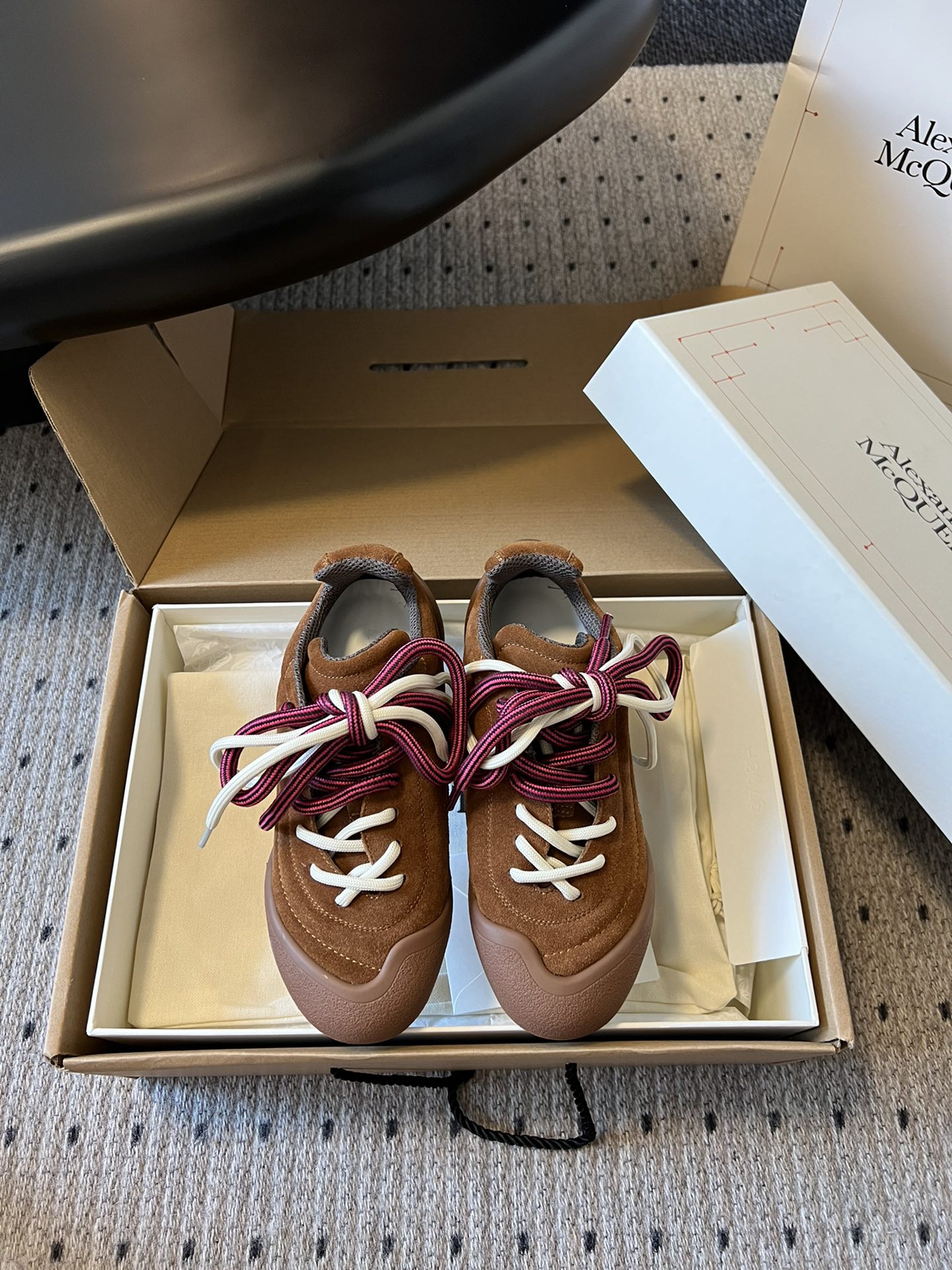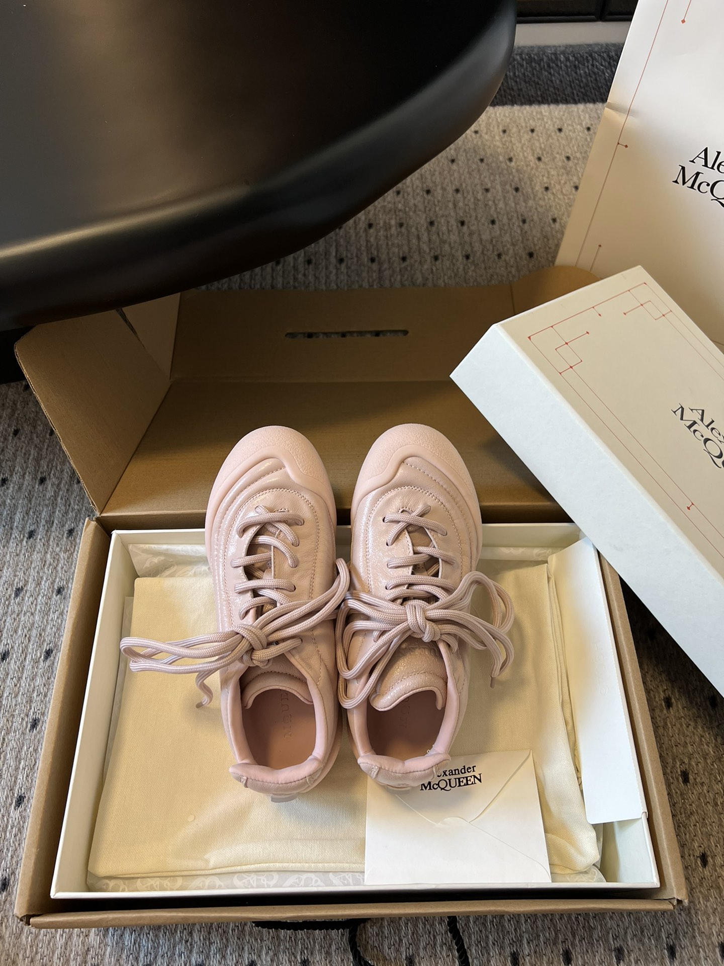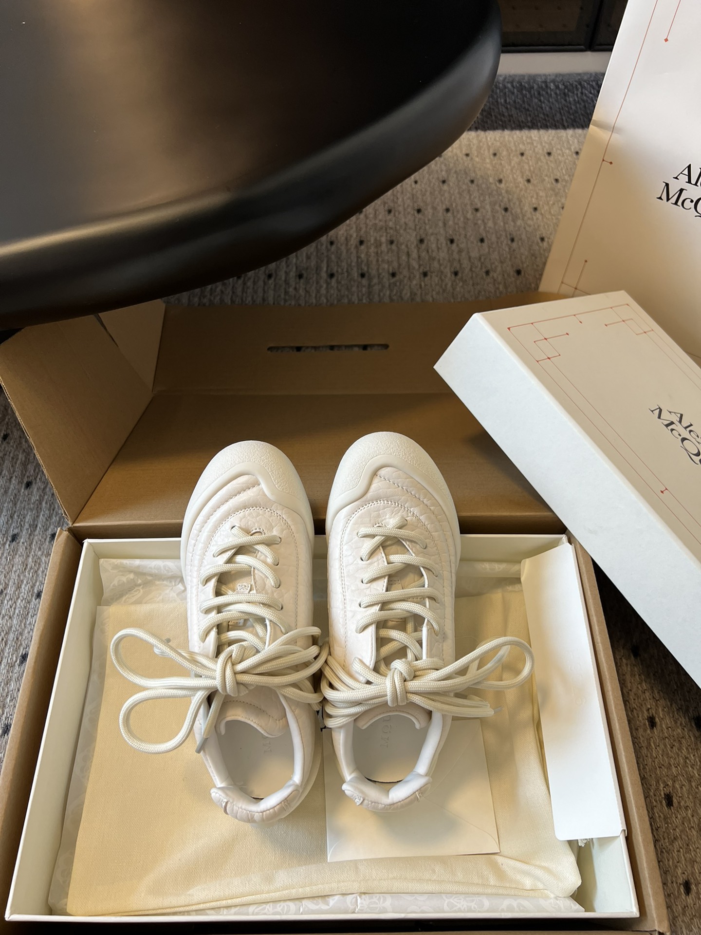 NIGO Alexander McQueen Women's Men's Cracked Leather Flexion Sneakers Round Toe Lace Up Shoes Fashion Casual Sneakers Cowhide Sole Thick 2cm Ngvp#nigo9224