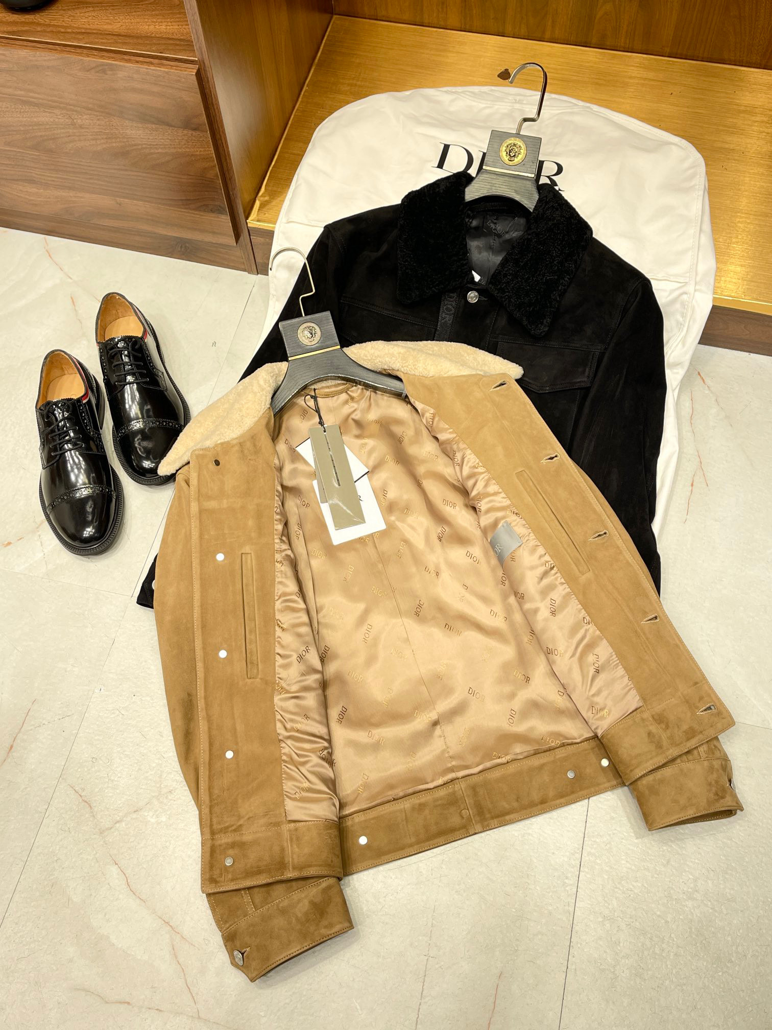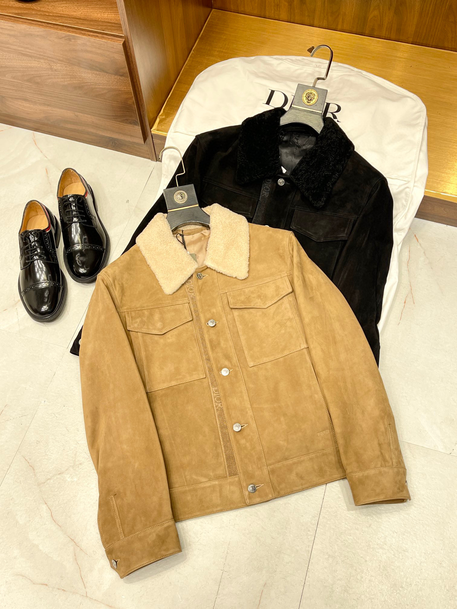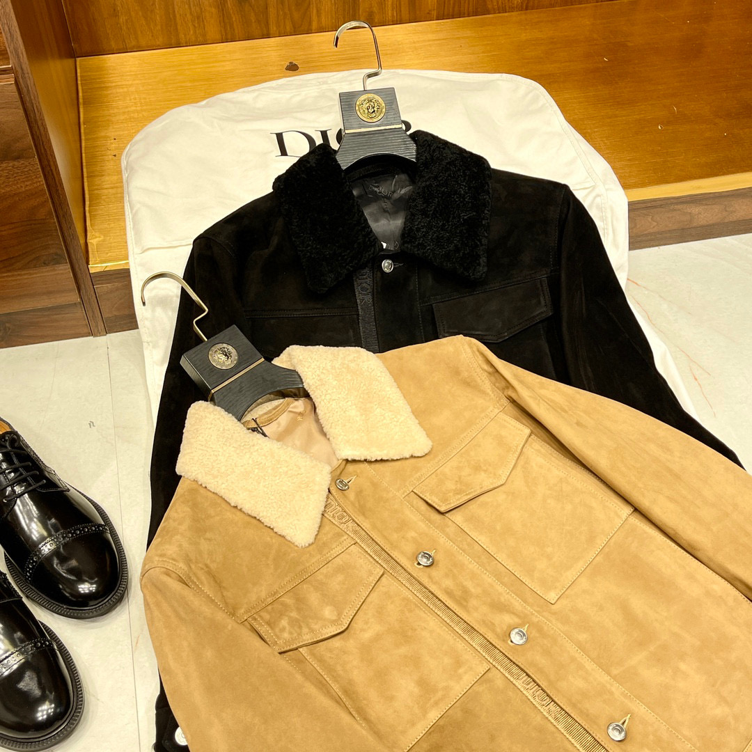 Dior Men's Winter Jacket With Fur Collar And Tweed Leather Stitching #nigo96189