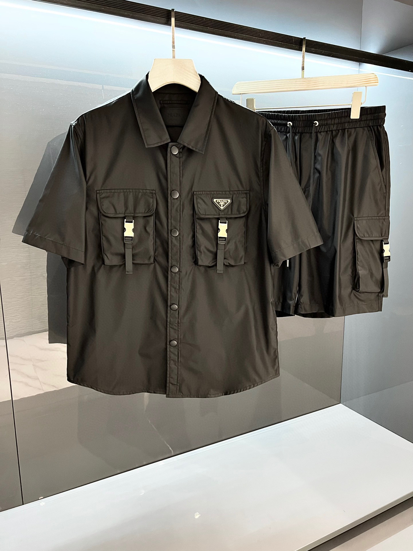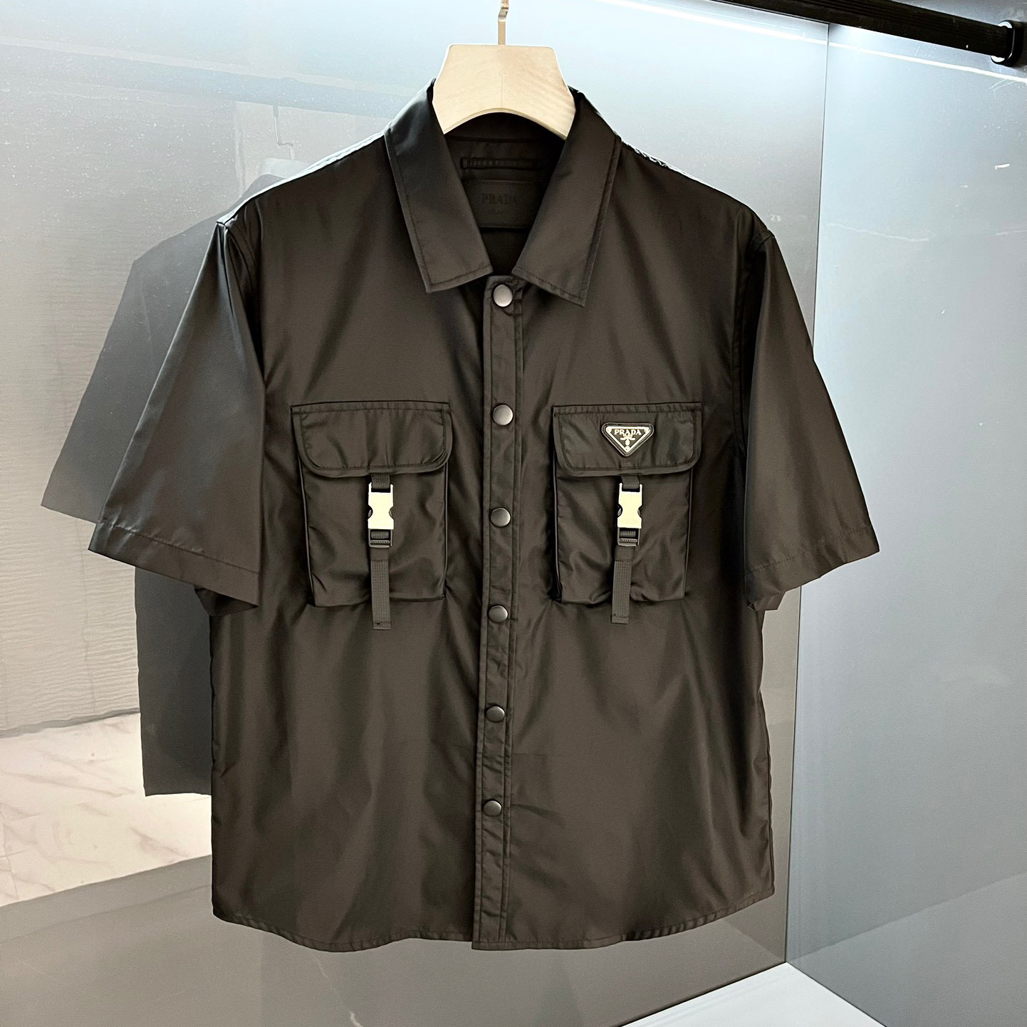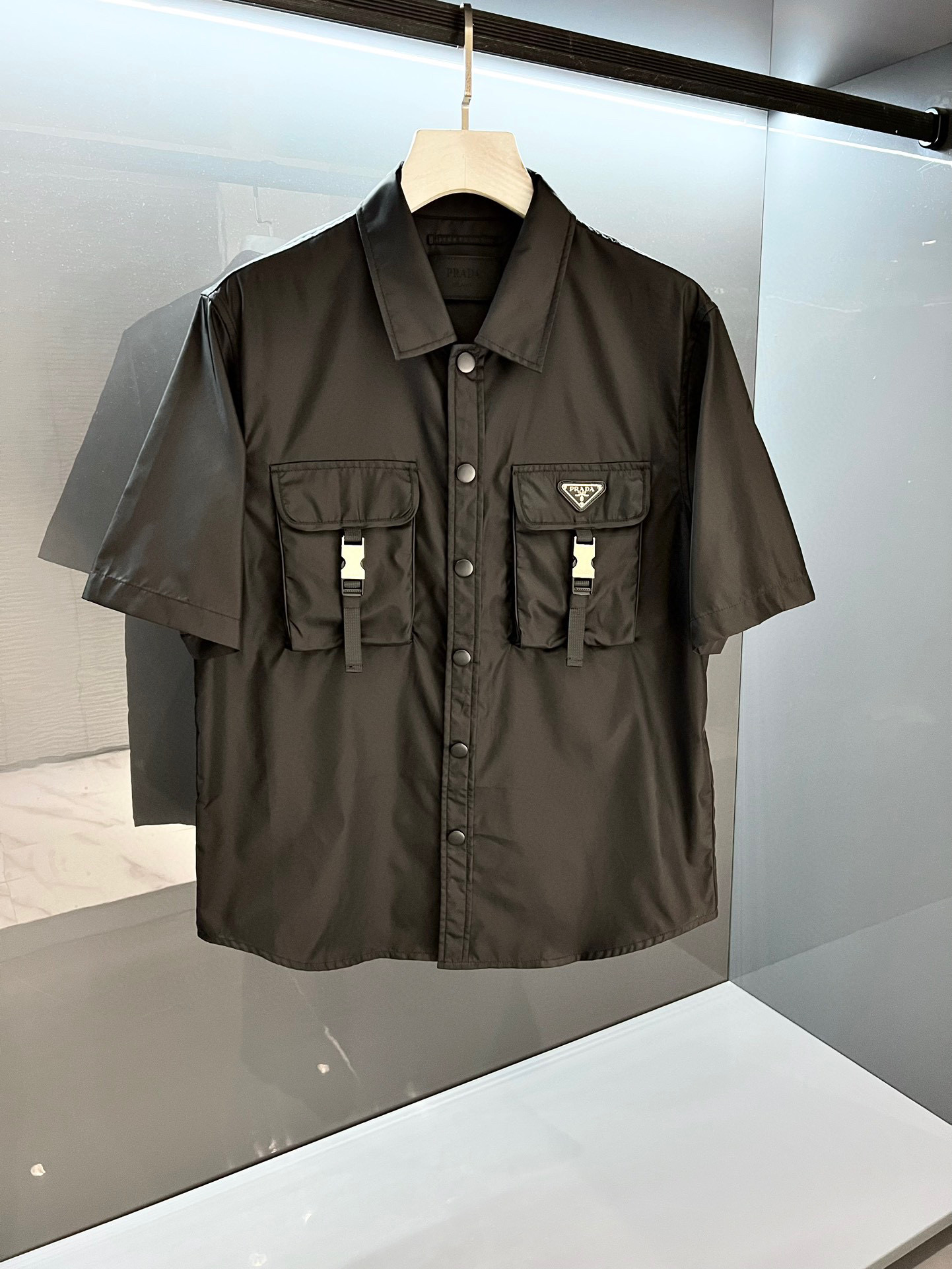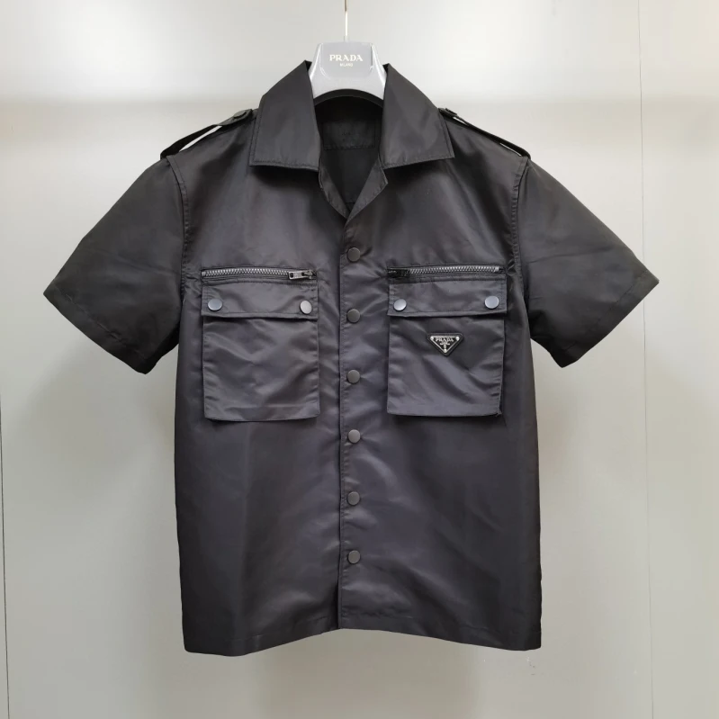 Prada NIGO Man Nylon metal logo lapel short sleeved T-shirt jacket shirt #nigo94478