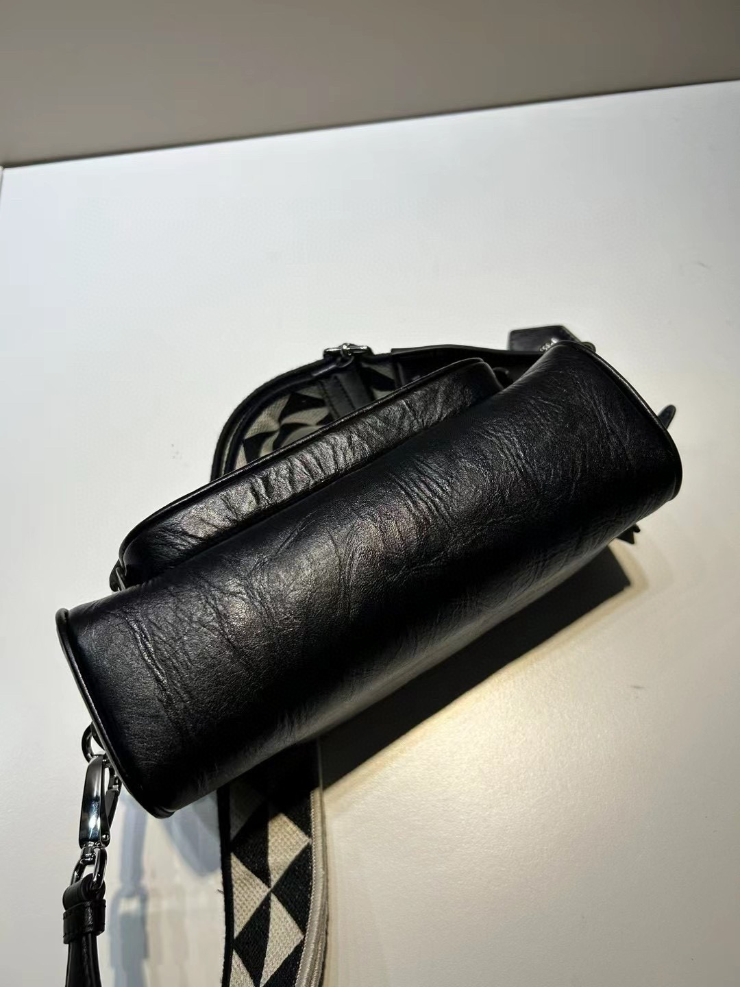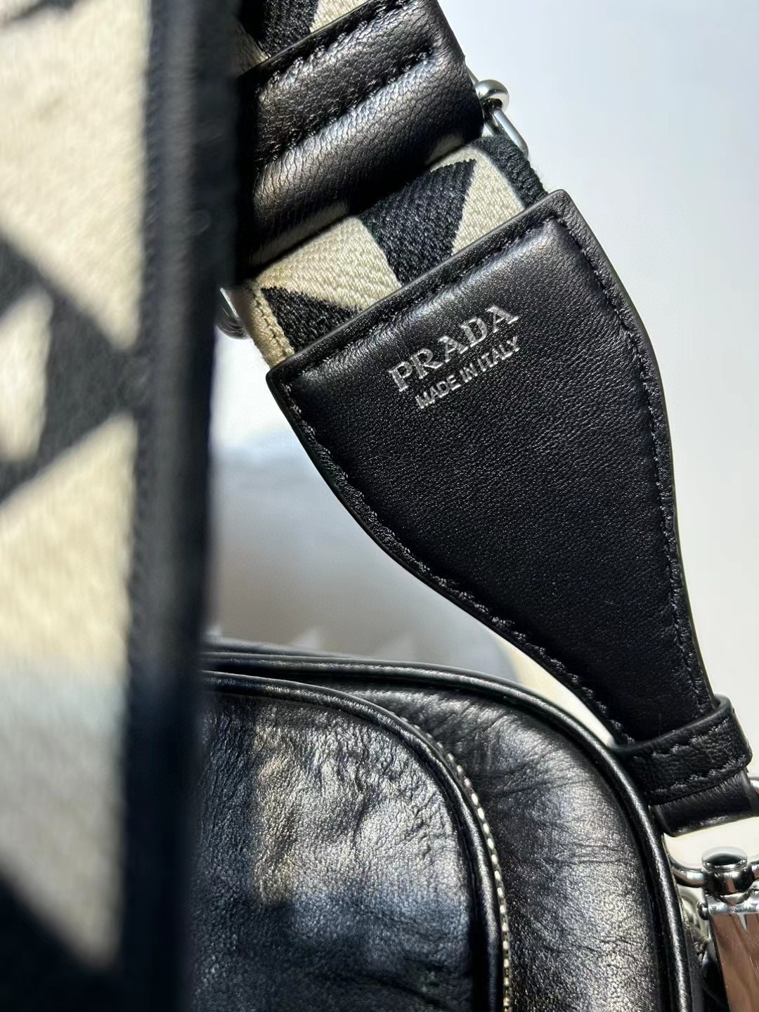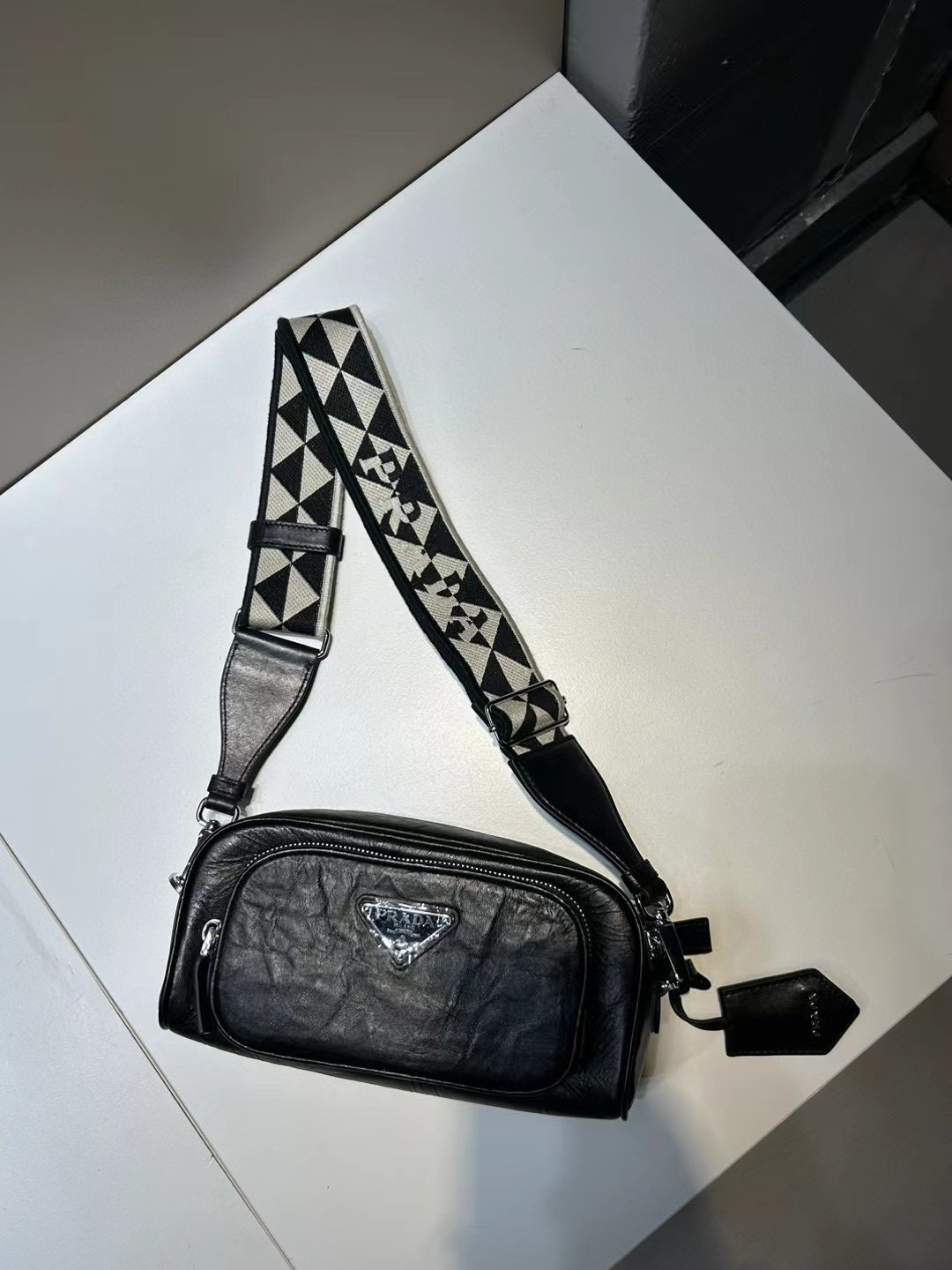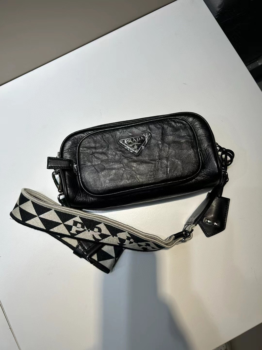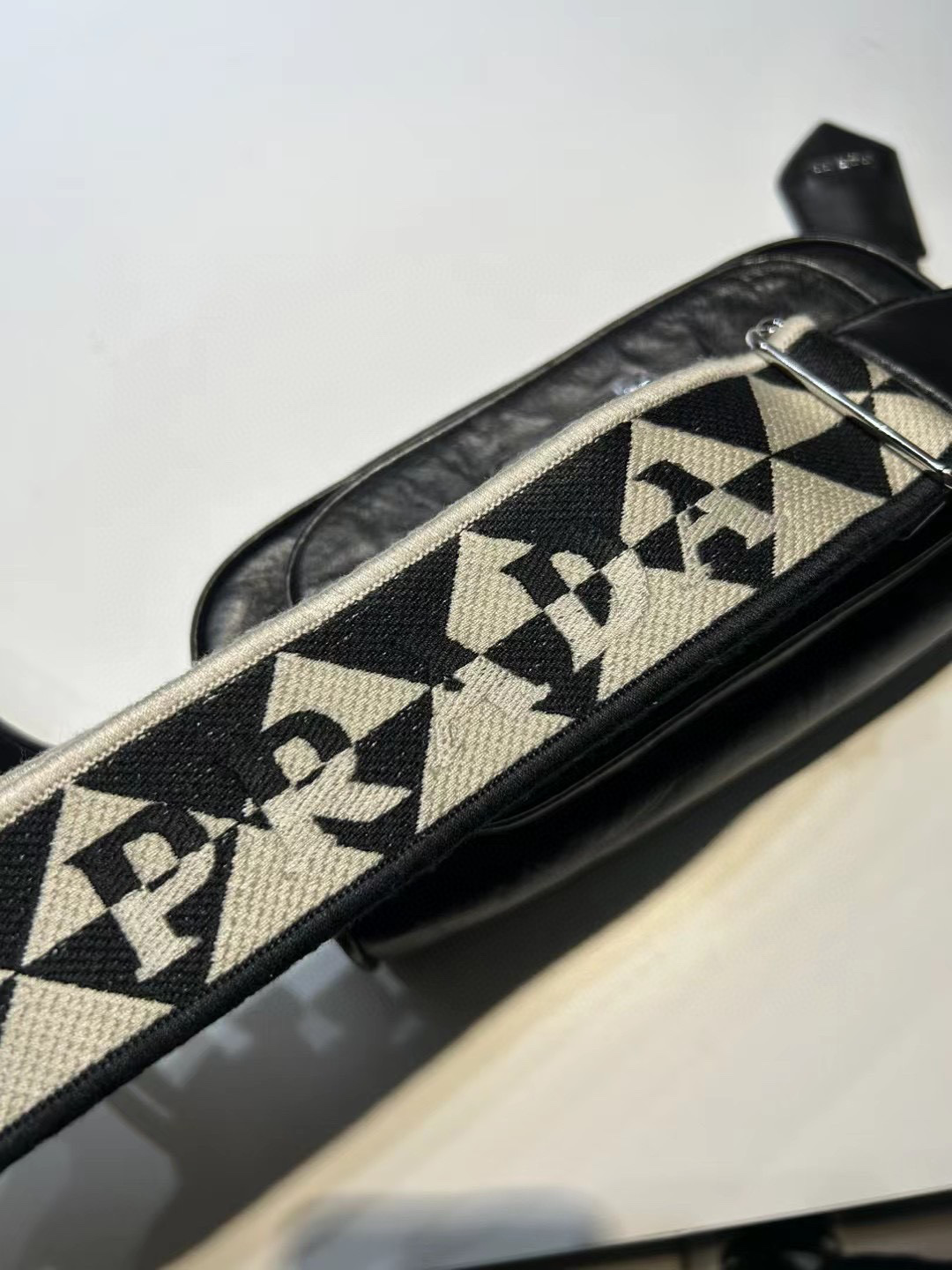 Prada NIGO Black Leather Long Shoulder Strap Crossbody Bag #nigo57423